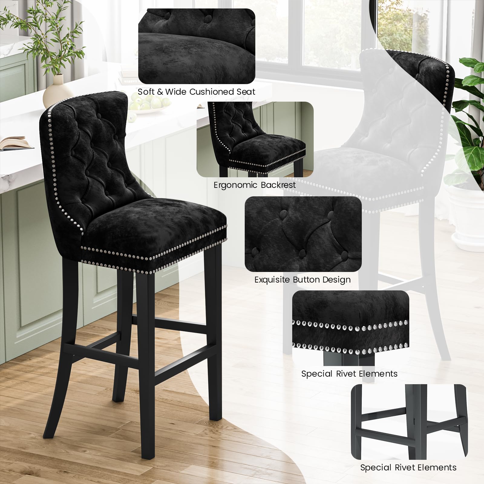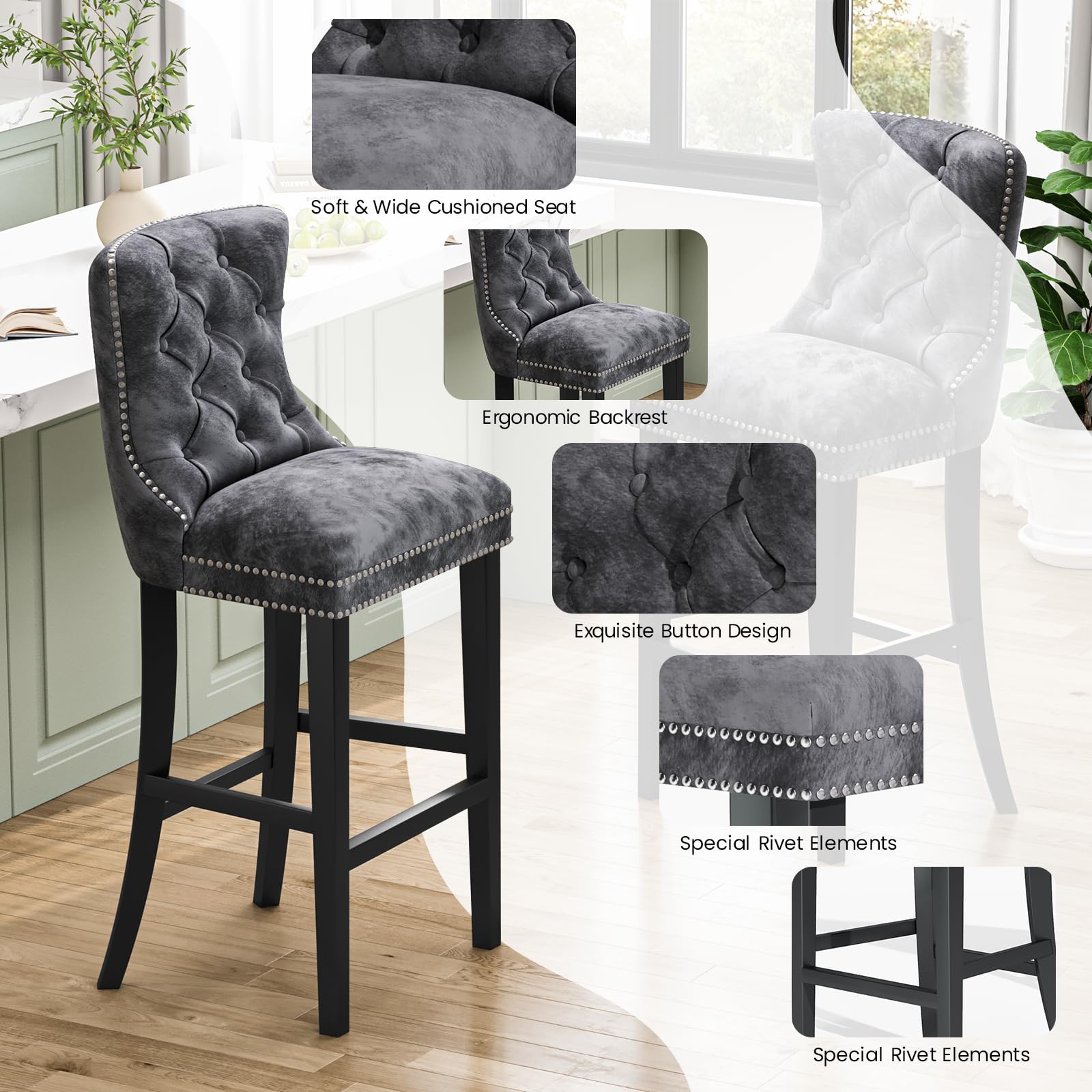 AWQM Velvet Tufted Counter Height Bar Stool Set of 4
