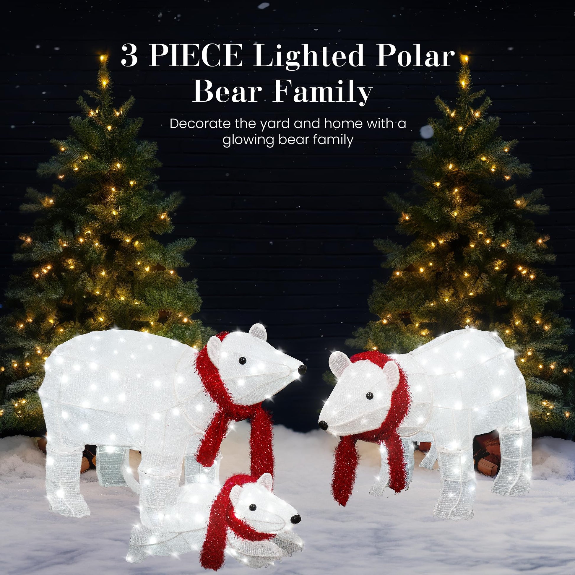 - ⛄【3 PIECE SET 】- This Lighted Polar Bear Family yard art set includes a father, mother, and baby bear. The unique shape and sparkling incandescent lights make it perfect for indoor/outdoor decoration.
