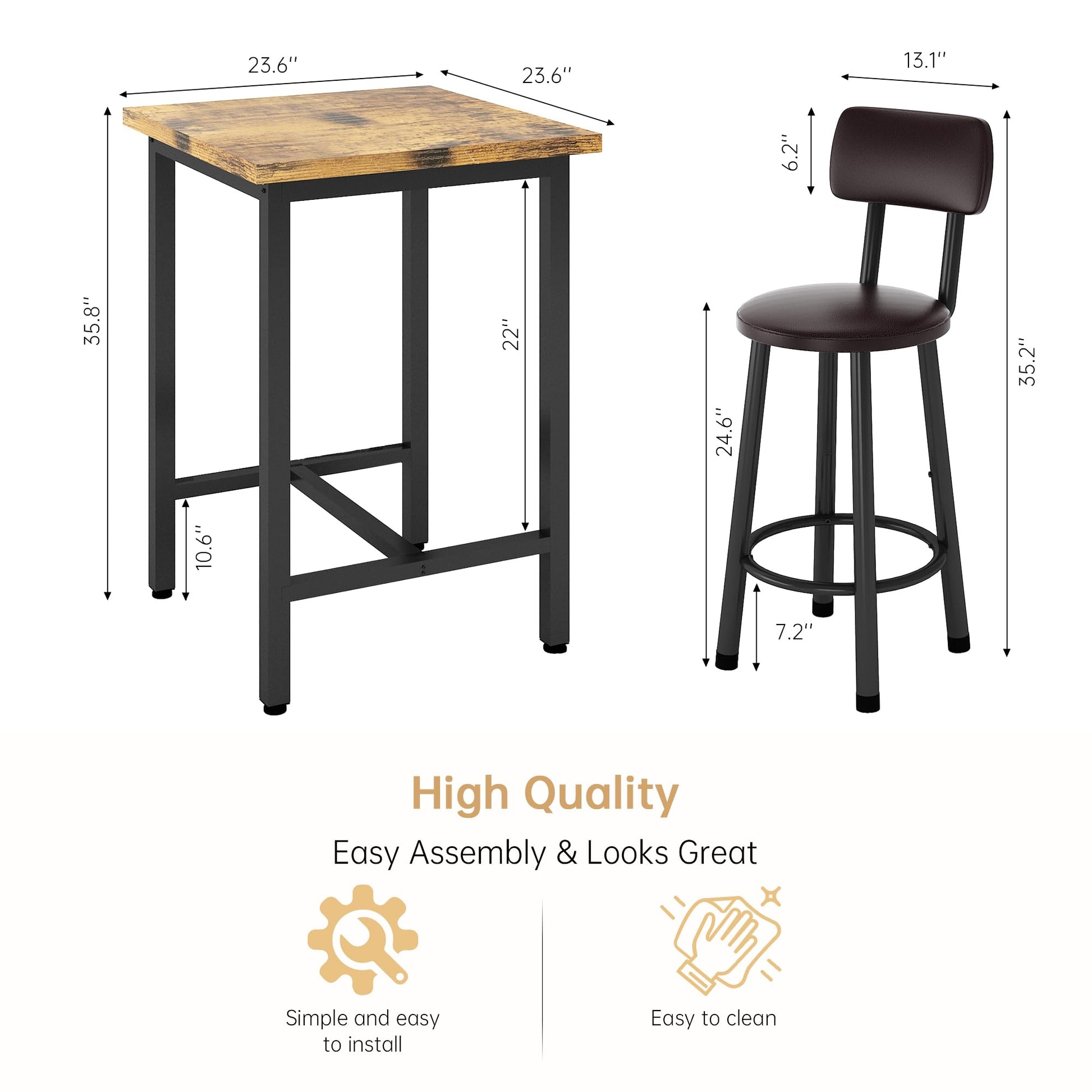 - Super Sturdy & Stable Construction - 3 Piece Pub Dining Set: This 24” Pub Table Set Is Made Of Premium Mdf And Sturdy Metal Frame, Which Is Corrosion-Resistant And Durable For A Long Lifespan. The Bar Table Made Of Thick Board And Thick Metal Which Ensures Stability And Durability. The Legs Are Super Stable On The Floor, With No Wobbling Issue At All. The Weight Capacity Of The Stool Is Up To 250Lbs