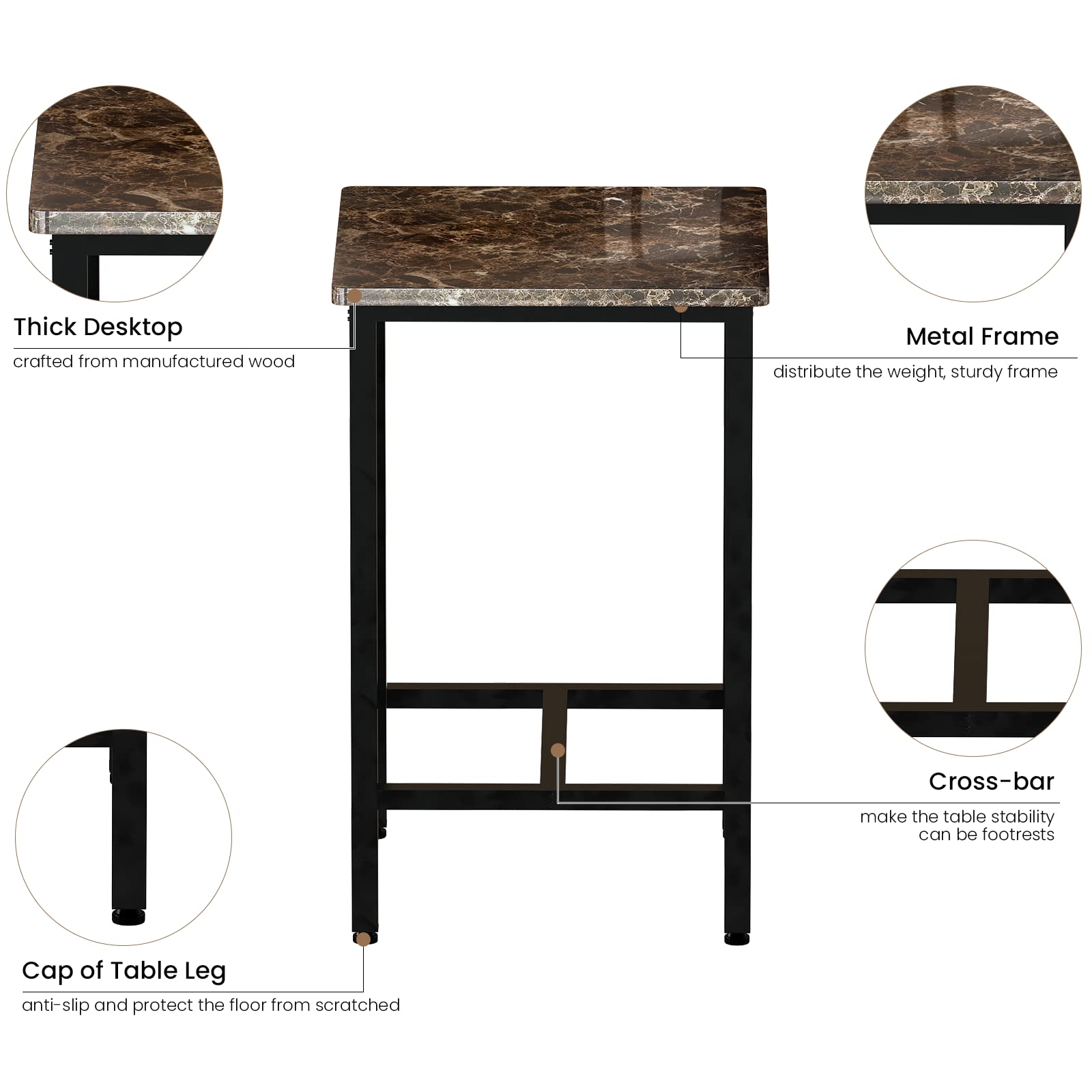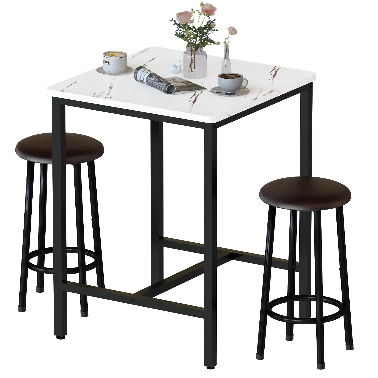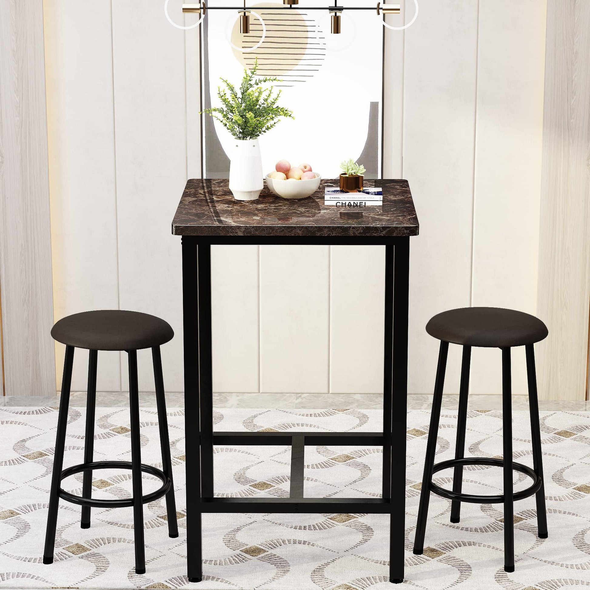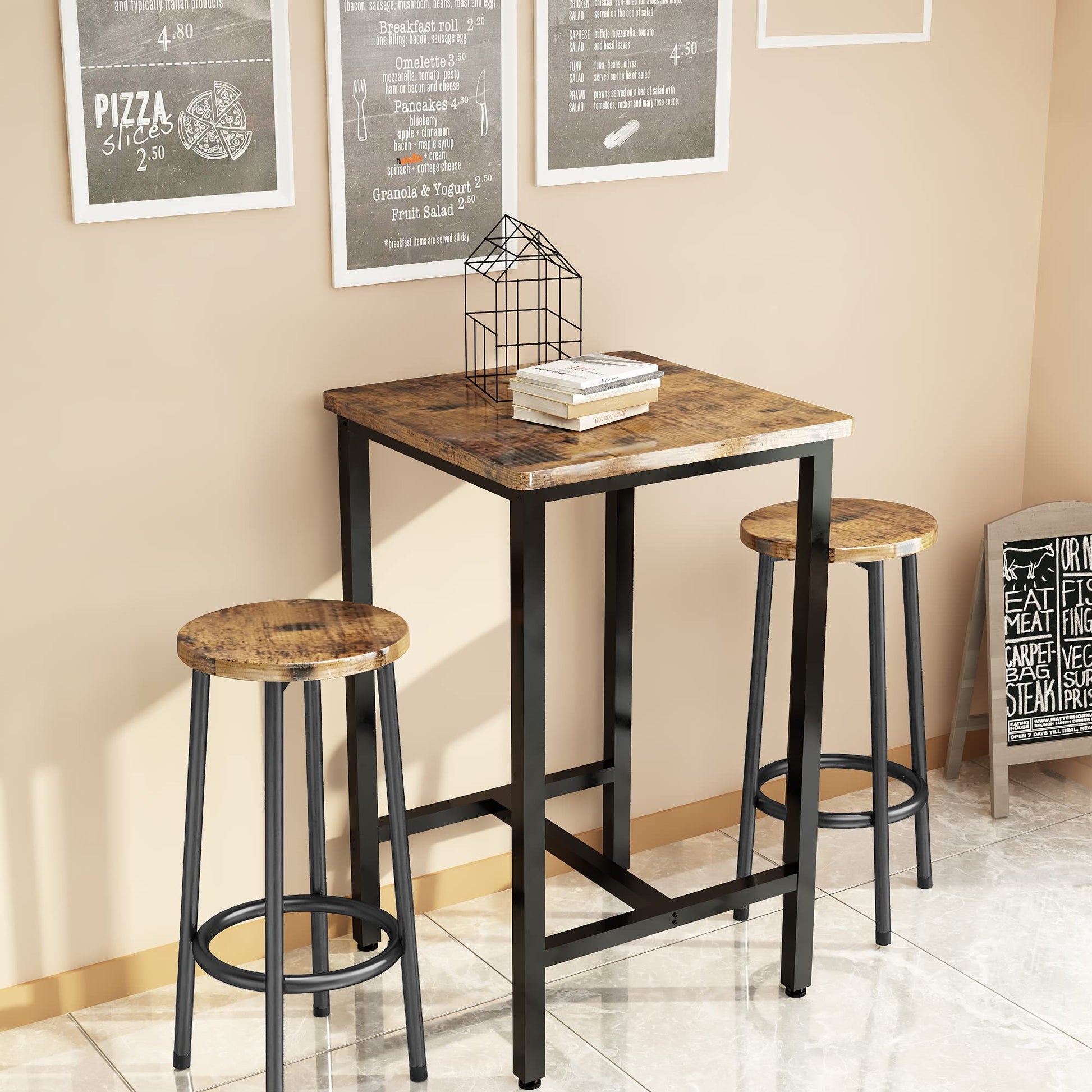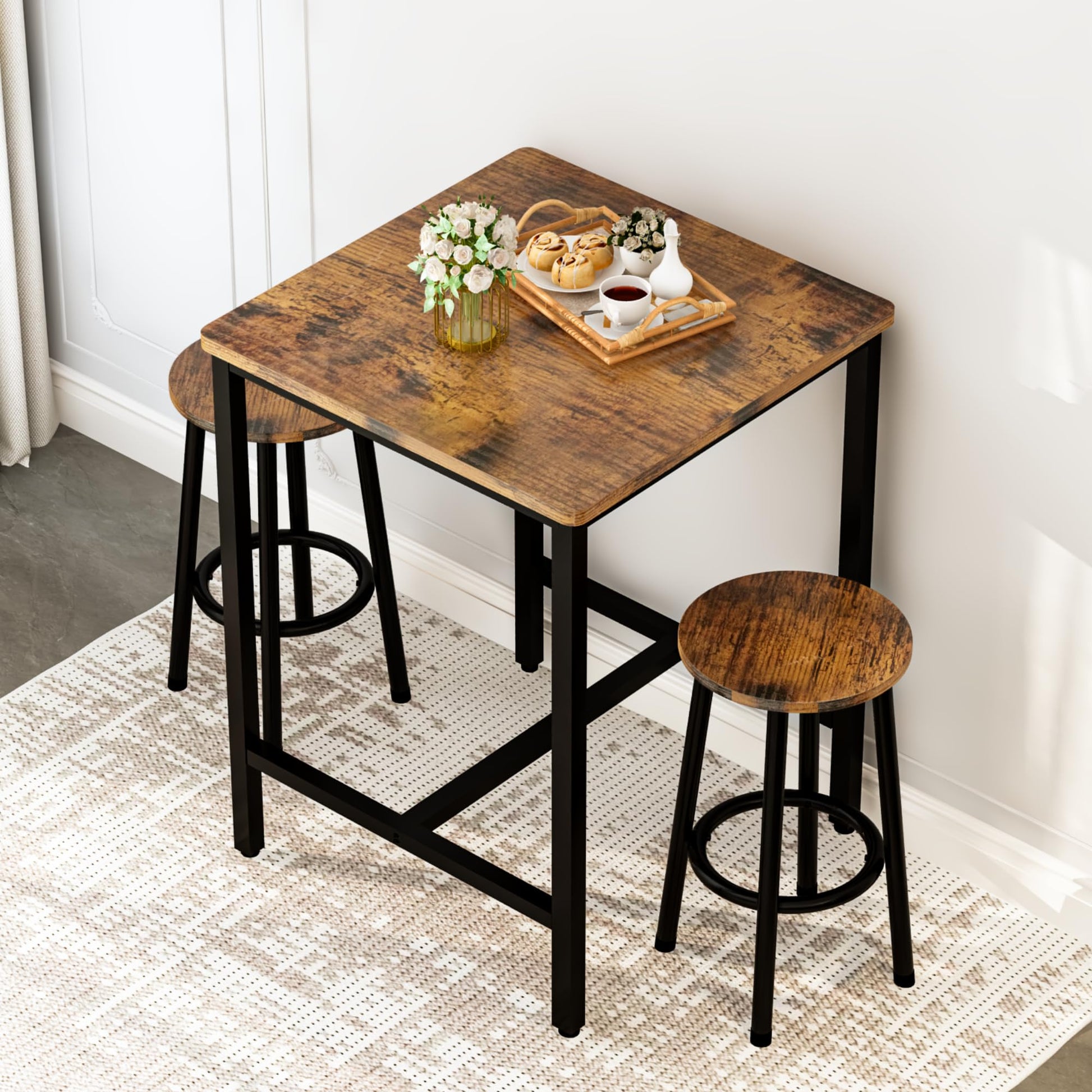 AWQM 3 Piece Bistro Table Set for 2, Kitchen Square Breakfast Table Set, Bar Table
