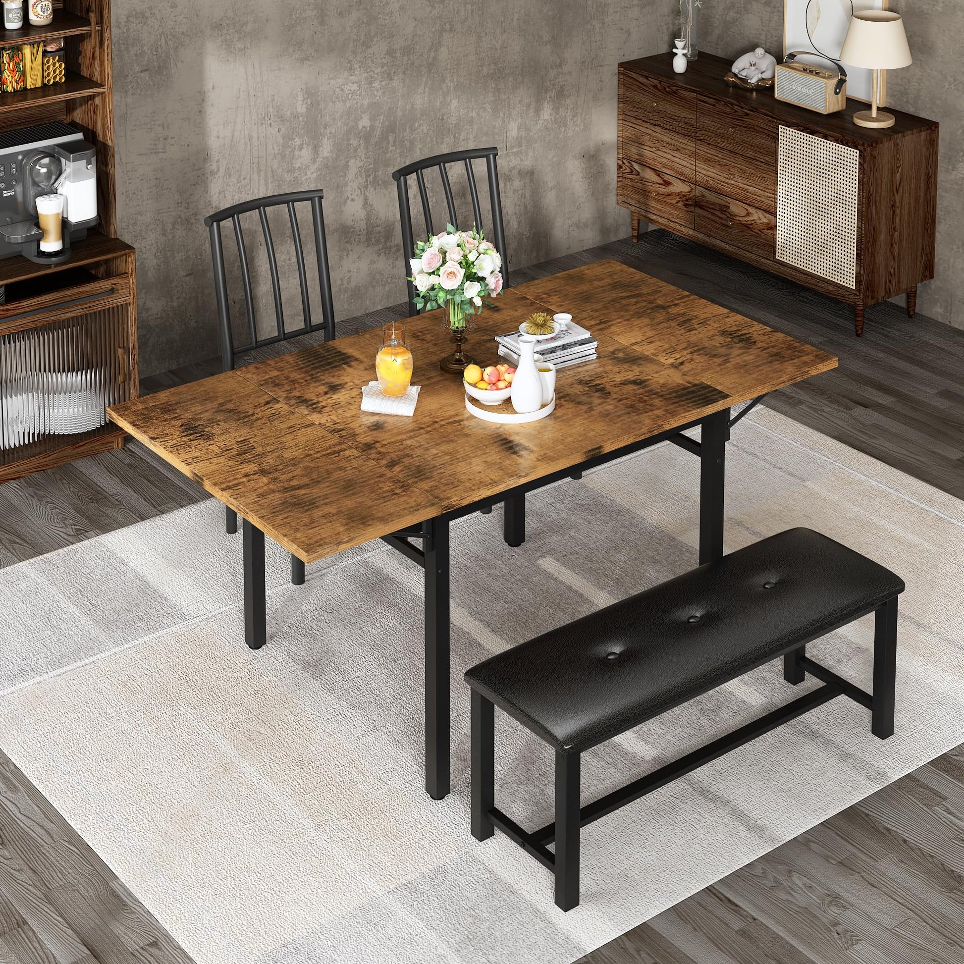 After the meal is finished, the chairs and benches can be easily moved under the table, this kitchen table setting can help you save space to a great extent.