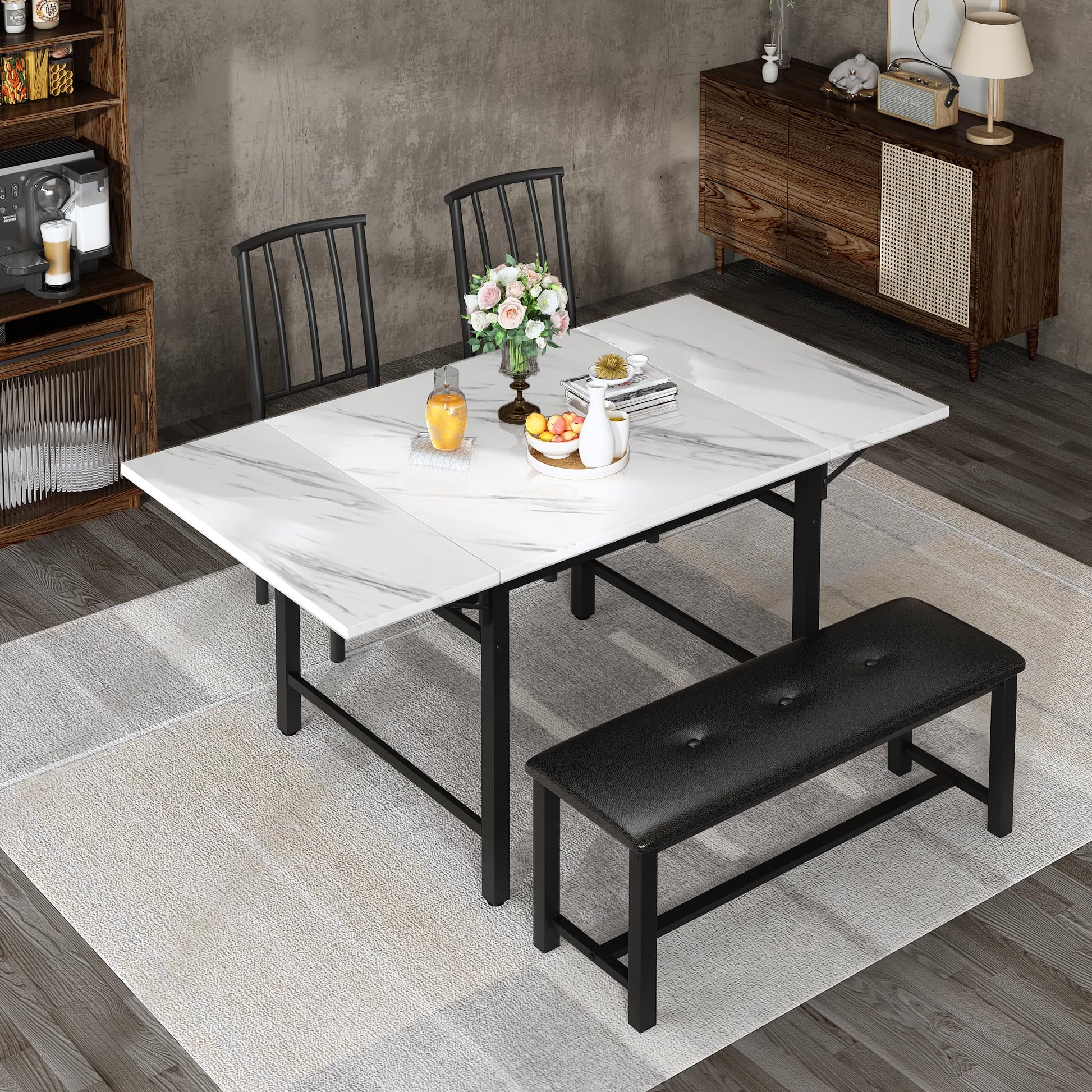 AWQM 4-Piece Faux Marble Folding Leaf Dining Table w/Storage Shelf