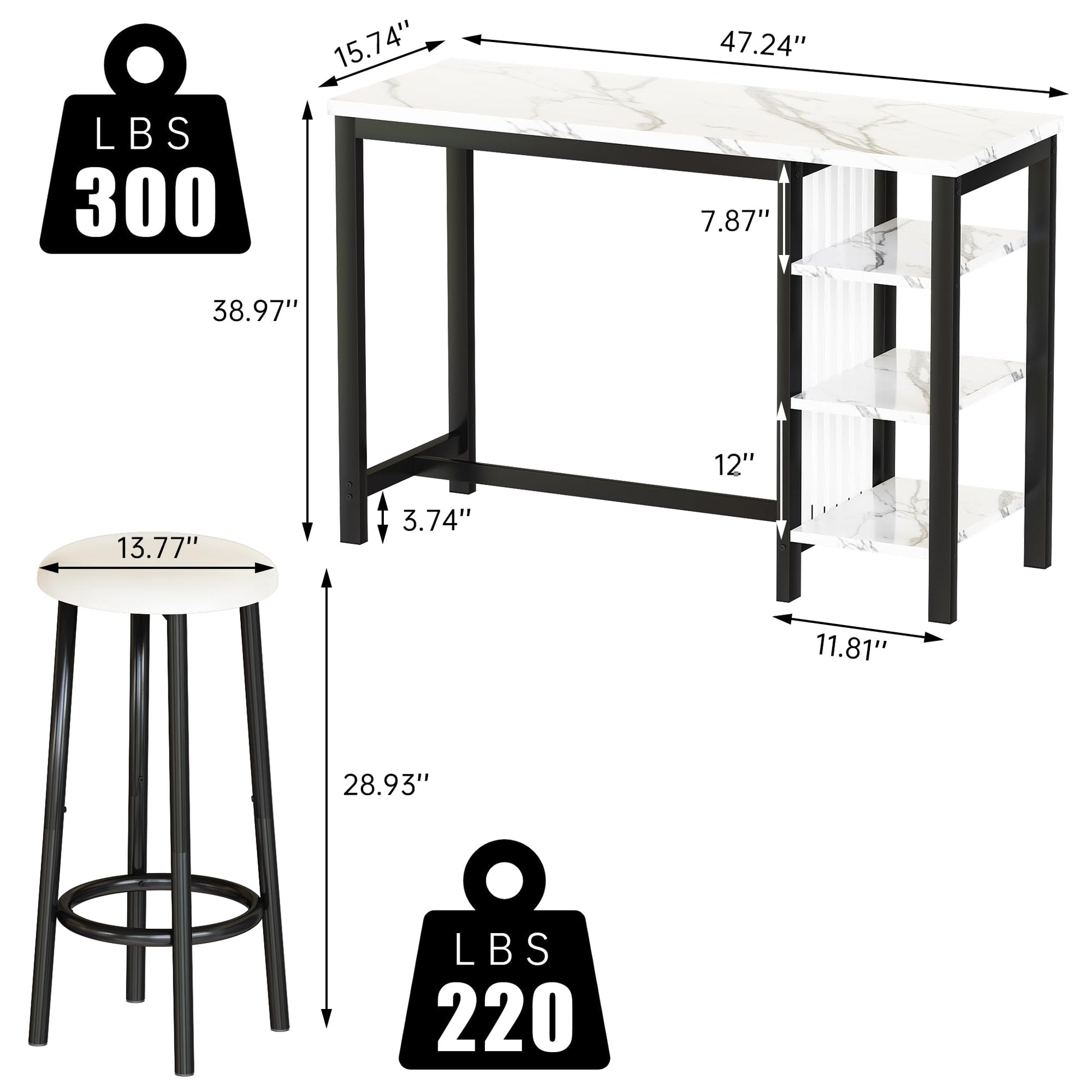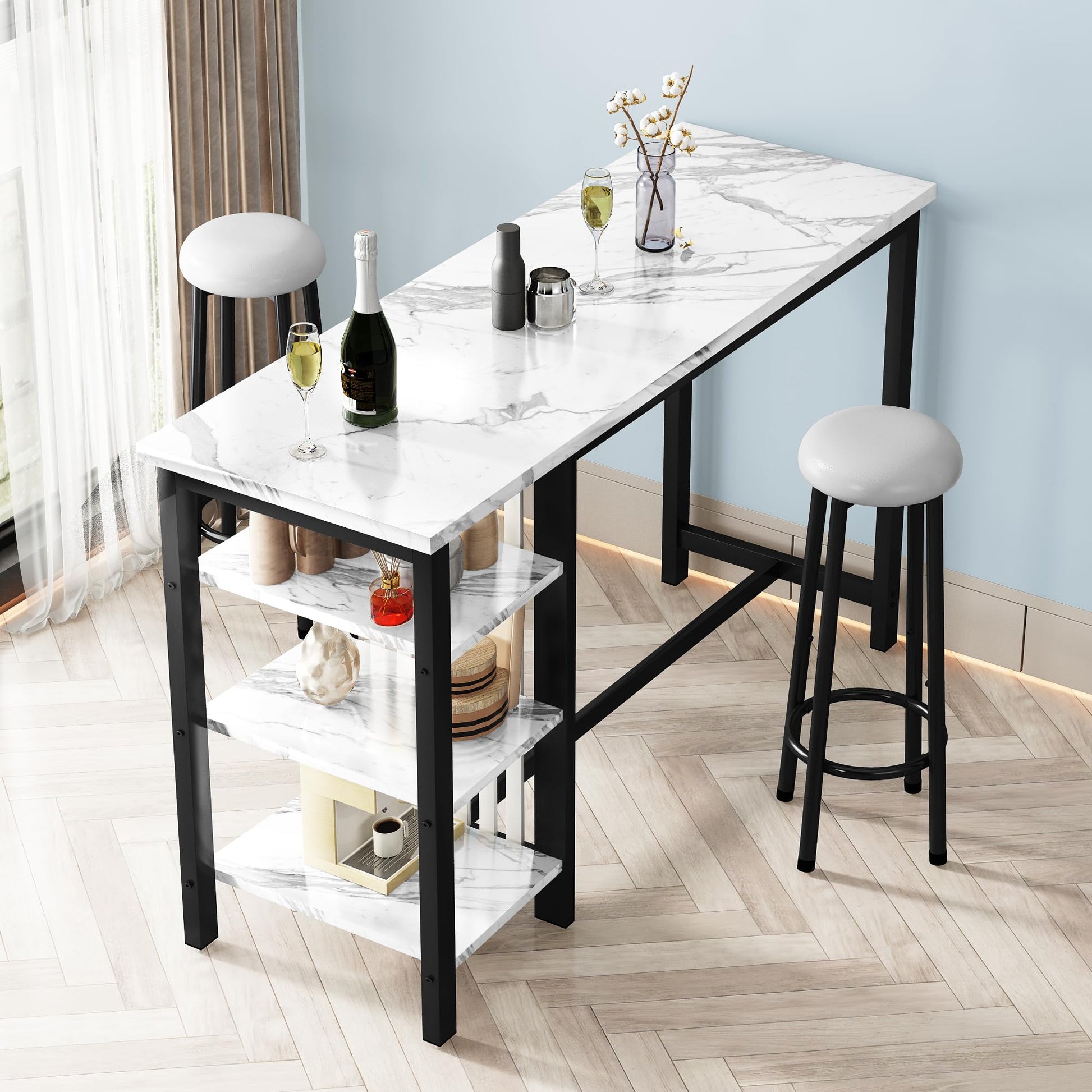 AWQM Marble Top Kitchen Countertop High Dining Table for 2