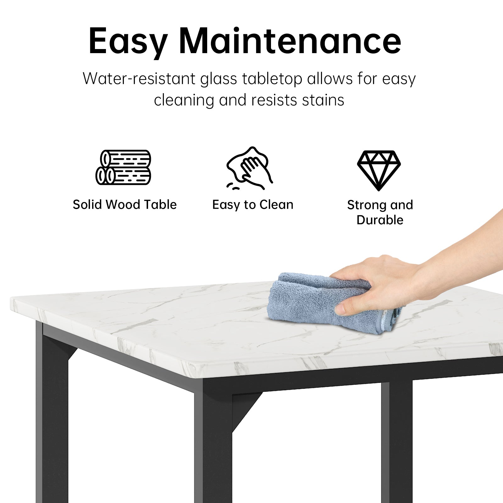This table set is very stylish and works great for my sister��s new place. The white finish and the marble combined give it a great style without being over-the-top, so it matches the other pieces in her place very well.