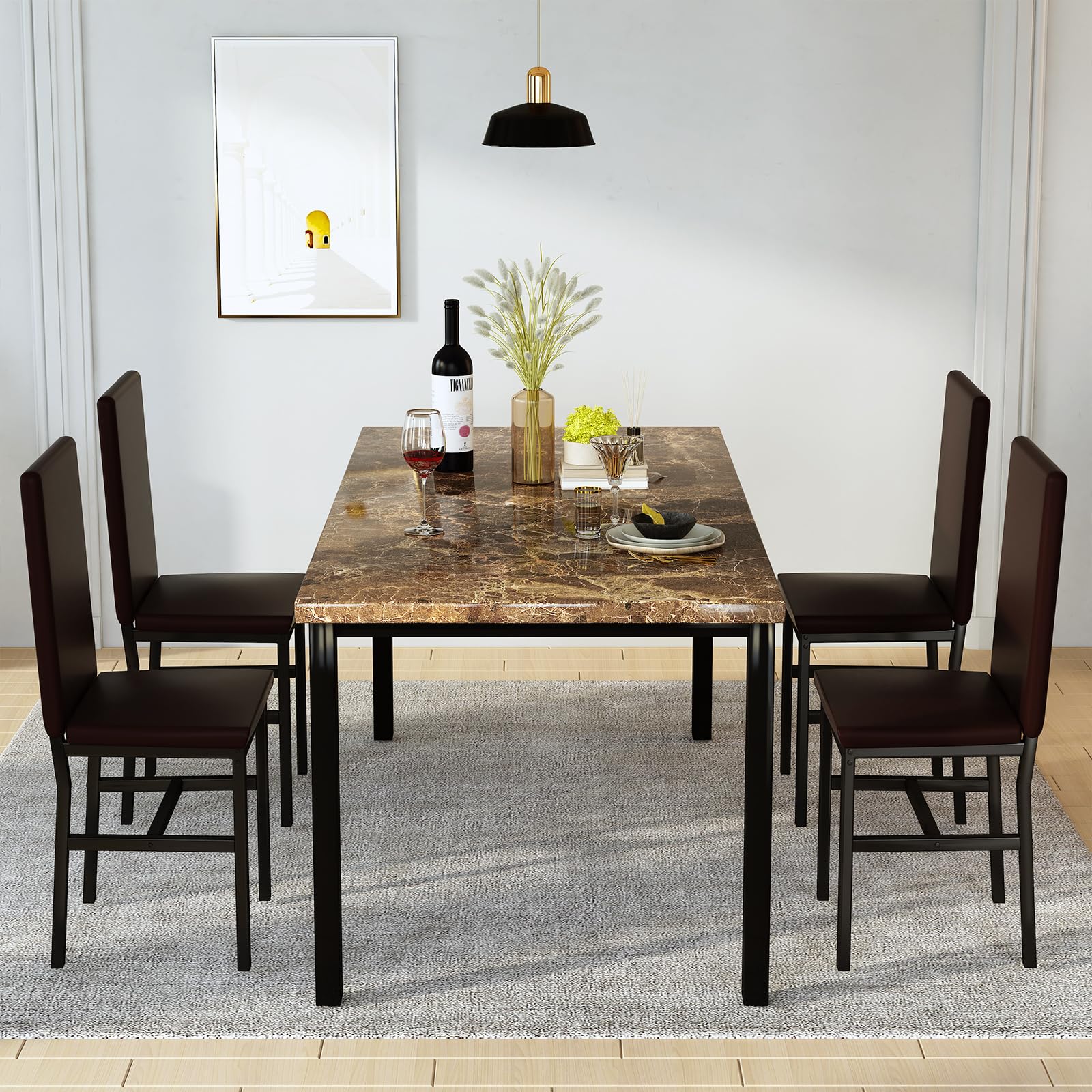 AWQM Modern Marble 4 Seater Dining Table and Chairs