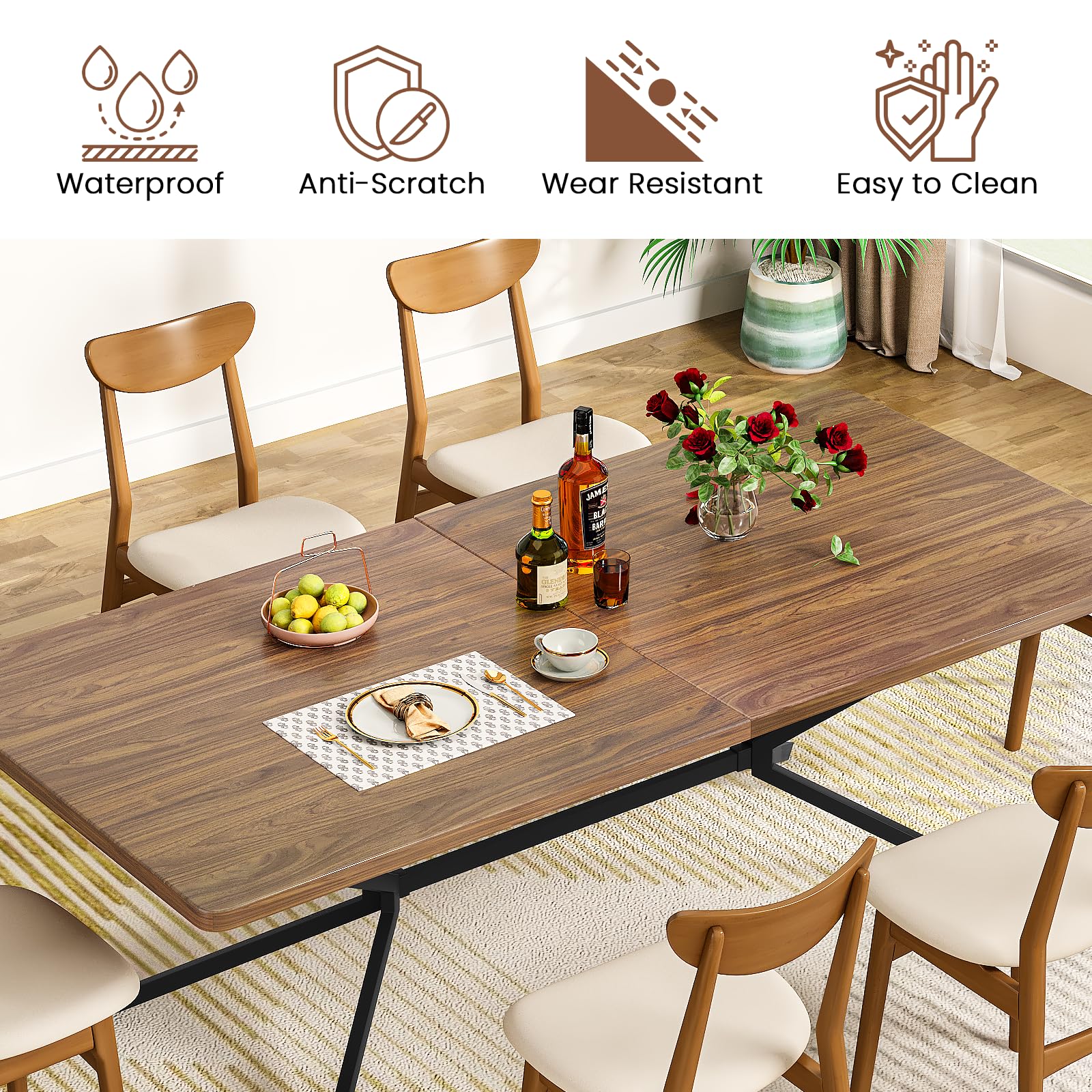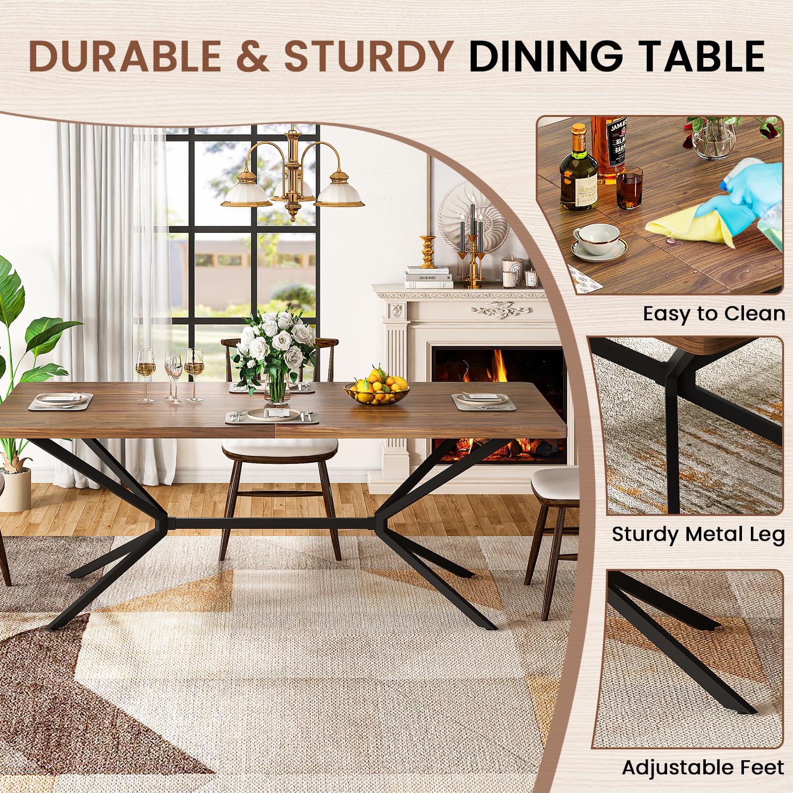 【Versatile Use】 Accommodating 6-8 people comfortably, this dining table doubles as a conference table or study desk. Ideal for dining rooms, living rooms, cafes, and restaurants, it enhances mealtime and gatherings with friends.