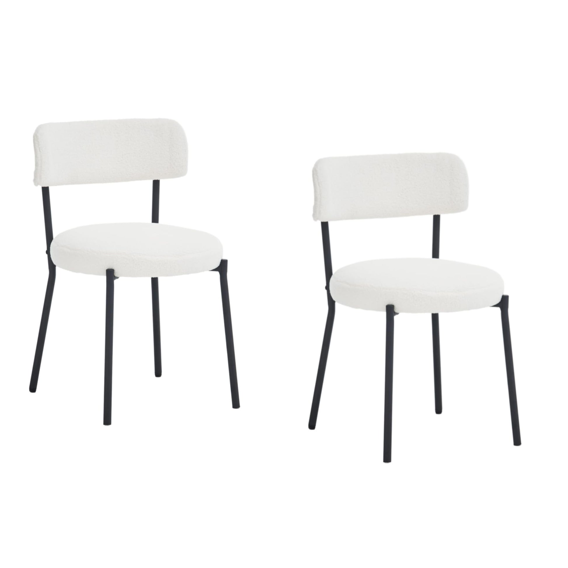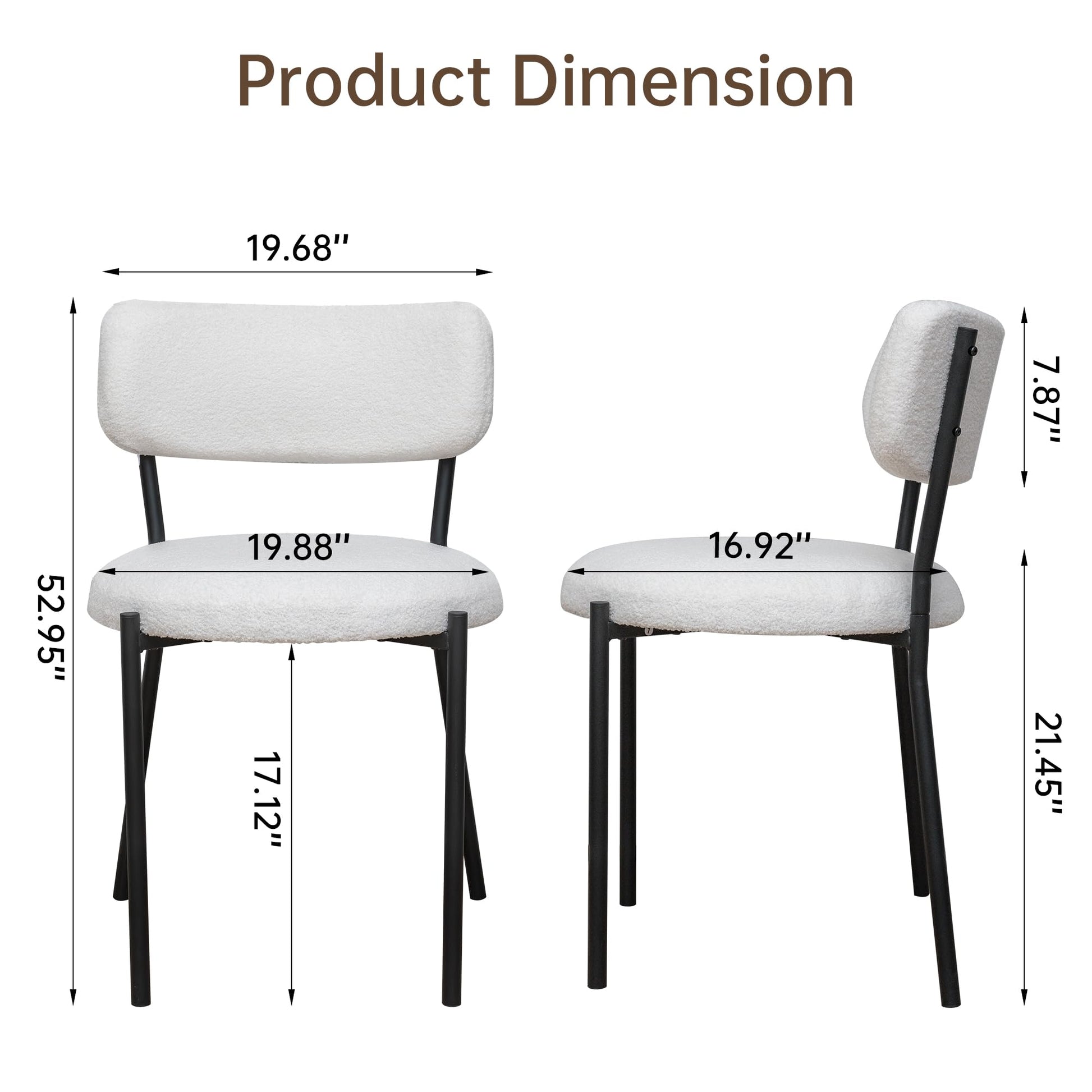 - 【Upholstered Dining Chair】Our dining chairs set is made of boucle fabric which is fluffy, warm, comfortable, high elasticity and not easy to shed. The dining chair combination with white seat cushion and black metal frame design is very perfect for your kitchen, dining room, living room, meeting room and bedroom.