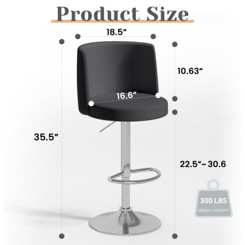 This bar stool is made of high-quality leather seat, which is easy to clean. The 360-degree swivel design provides the best dining comfort, suitable for a variety of places such as home kitchens and bars. Equipped with high-quality gas lift rod, safe and reliable, with gloves and assembly tools, easy assembly takes only 10 minutes. If you have any questions, please feel free to contact us.