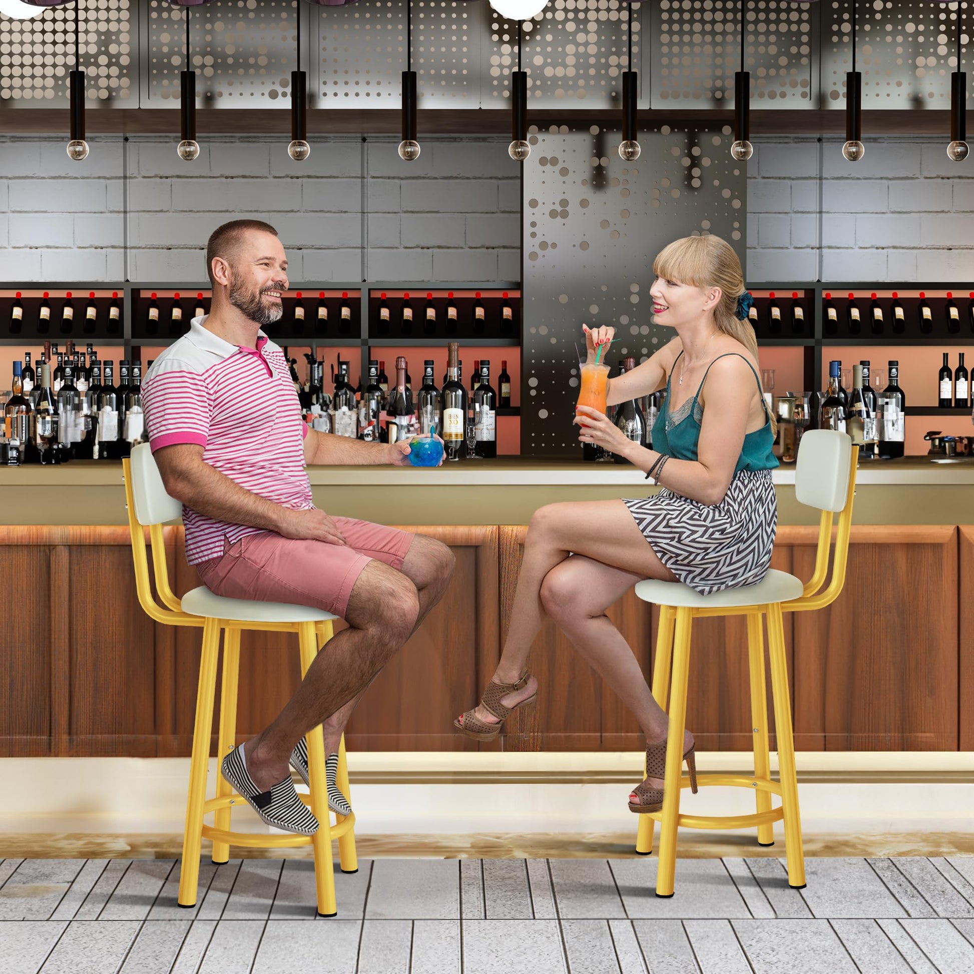 Our bar stools are made of metal frame, which is sturdy and durable. There are protective foot pads at the end of the legs to prevent floor/ground damage and scratches. These counter height bar stools are suitable for any space, whether it is your kitchen island or countertop.