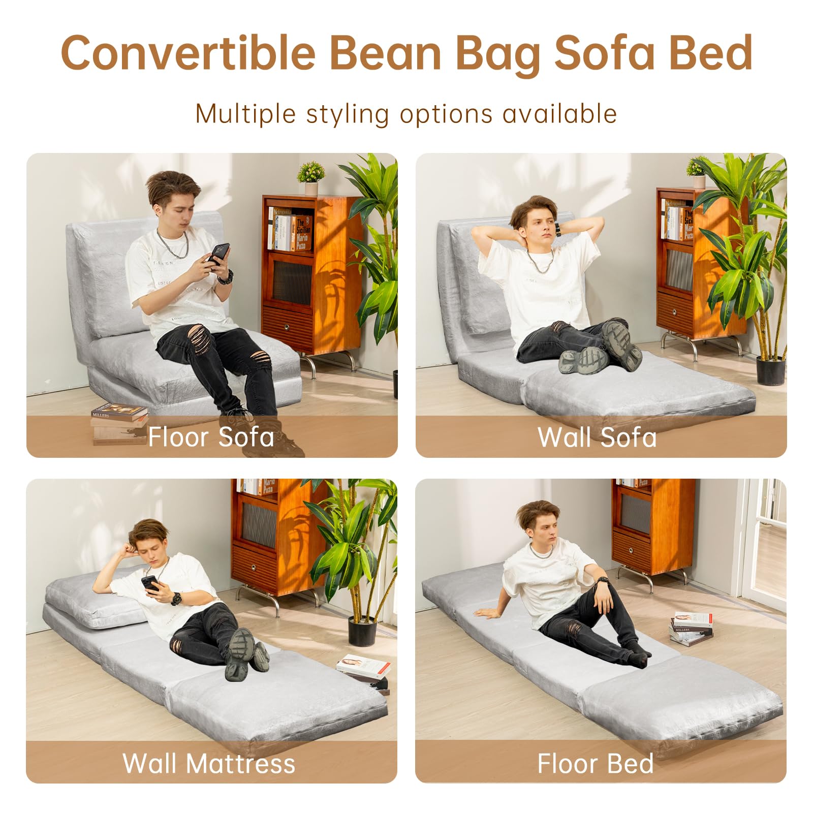 - COMFY BEAN BAG BED: The floor sofa is made of velvet materials, which is delicate, soft and skin-friendly. The double-stitching of the foldable mattress ensures super durability and strength. Its modern and simple design provides you a comfy resting space