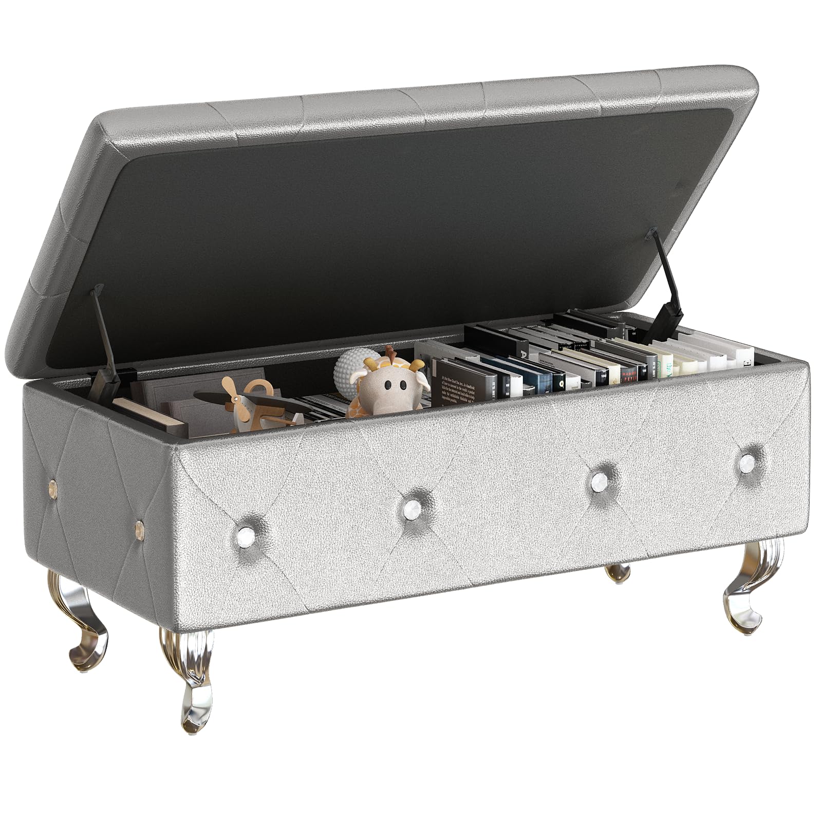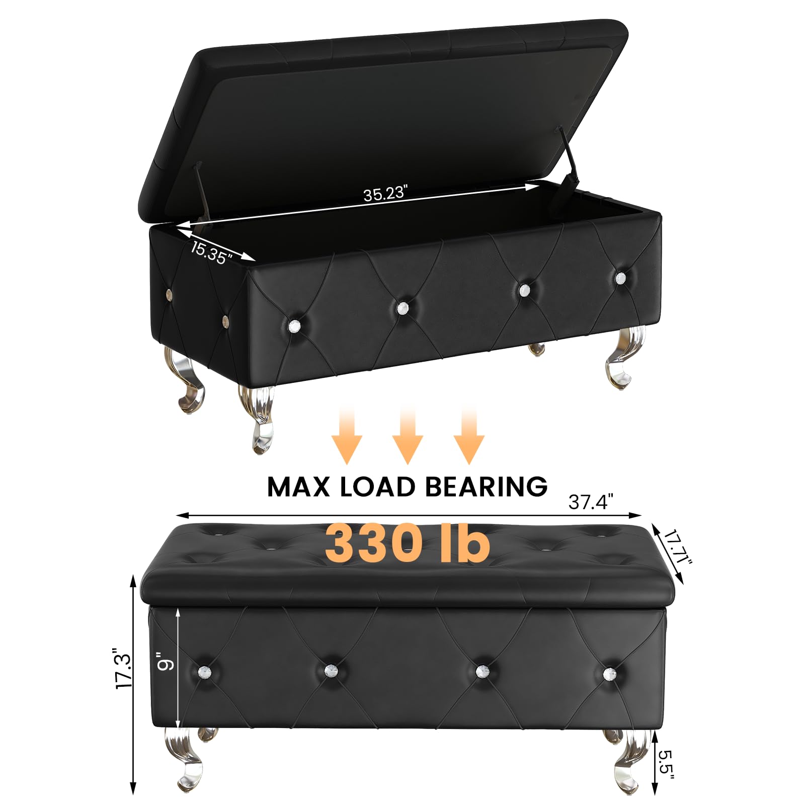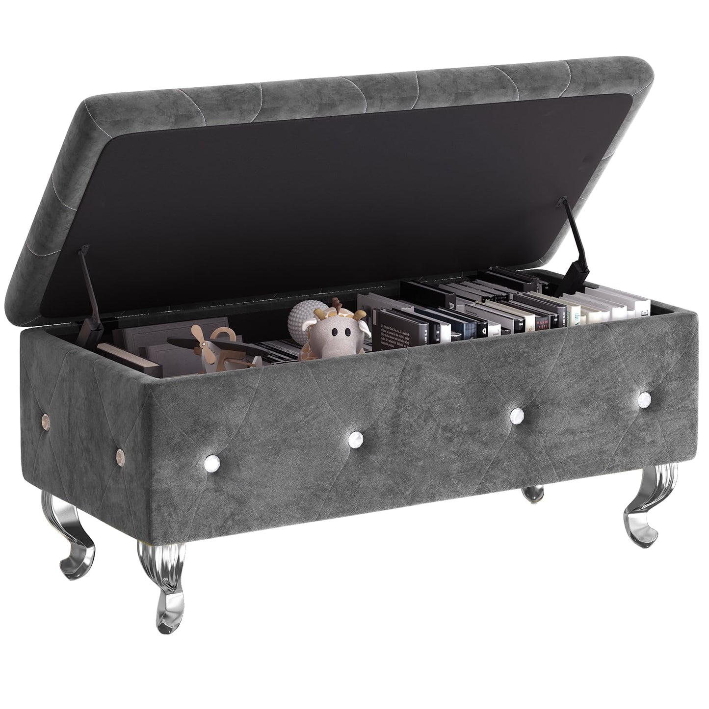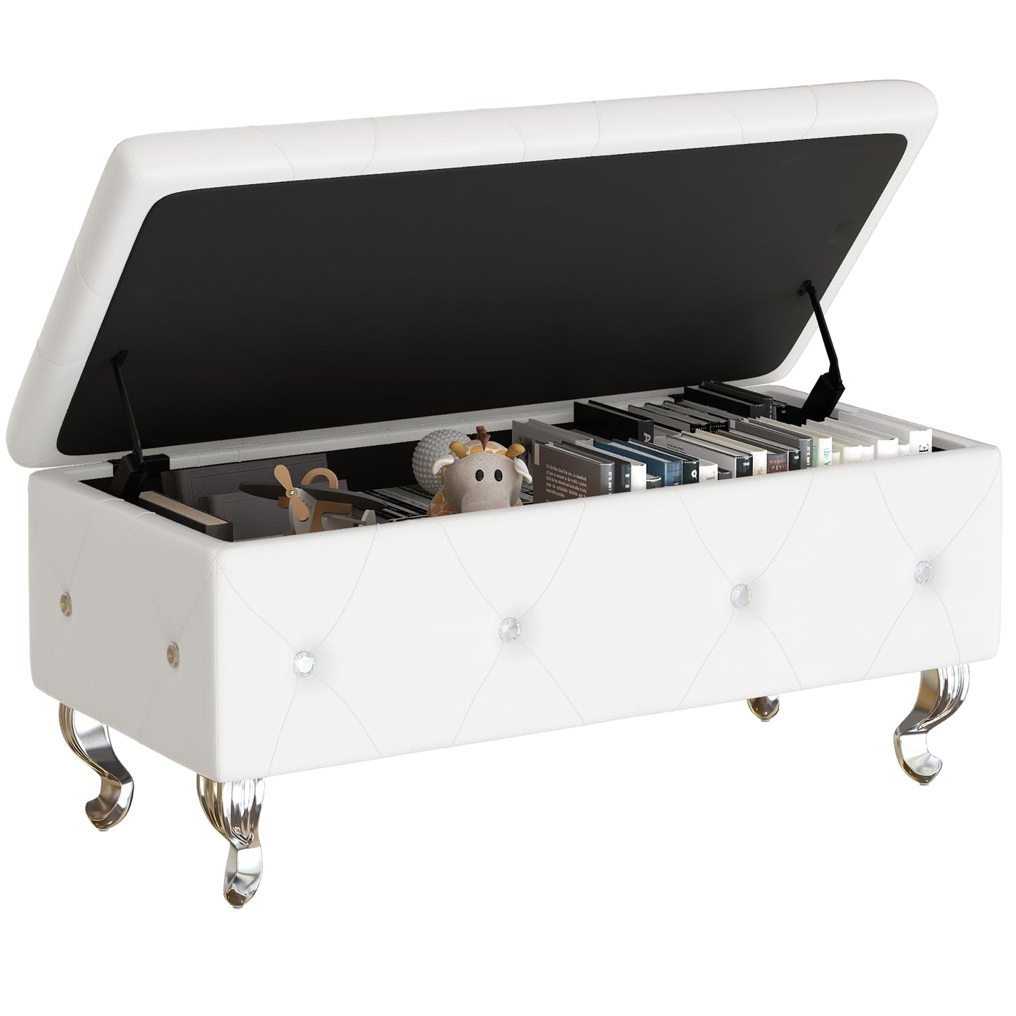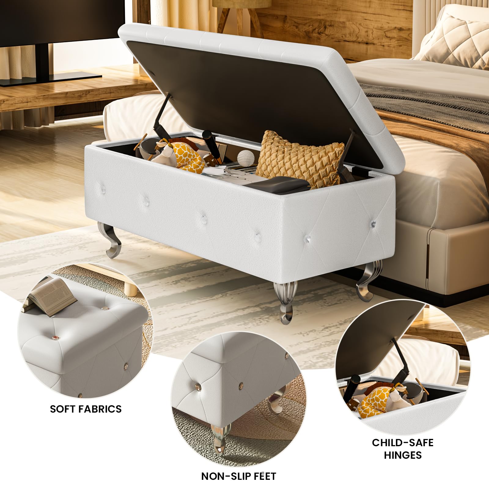 AWQM Upholstered Storage Bench, Safety Hinged Tufted Bed Bench