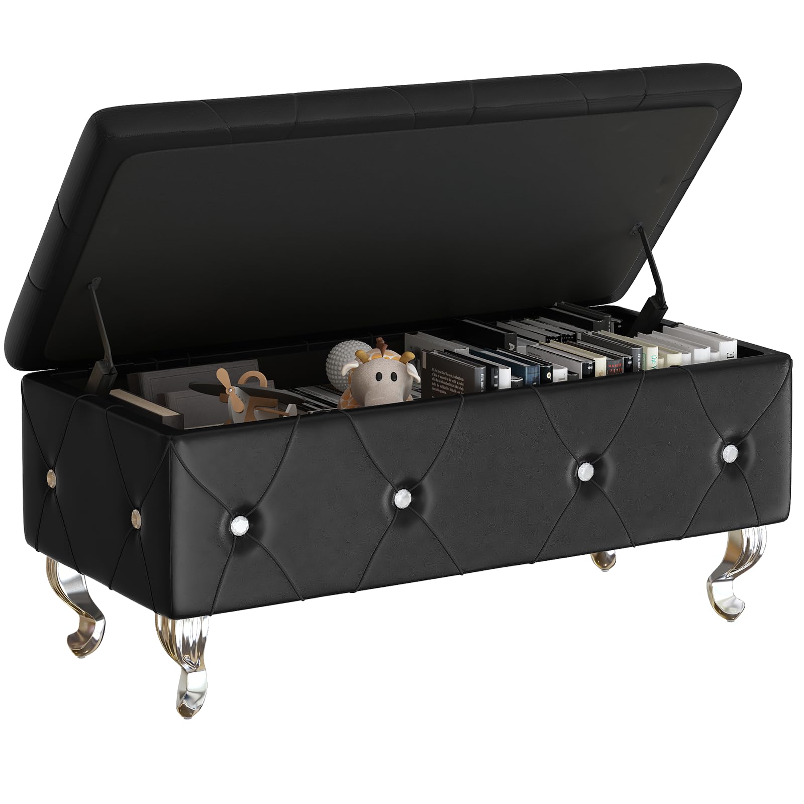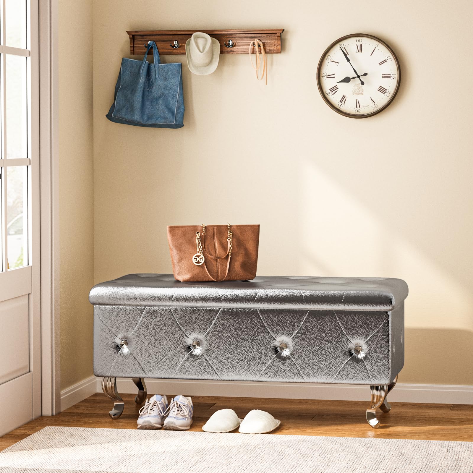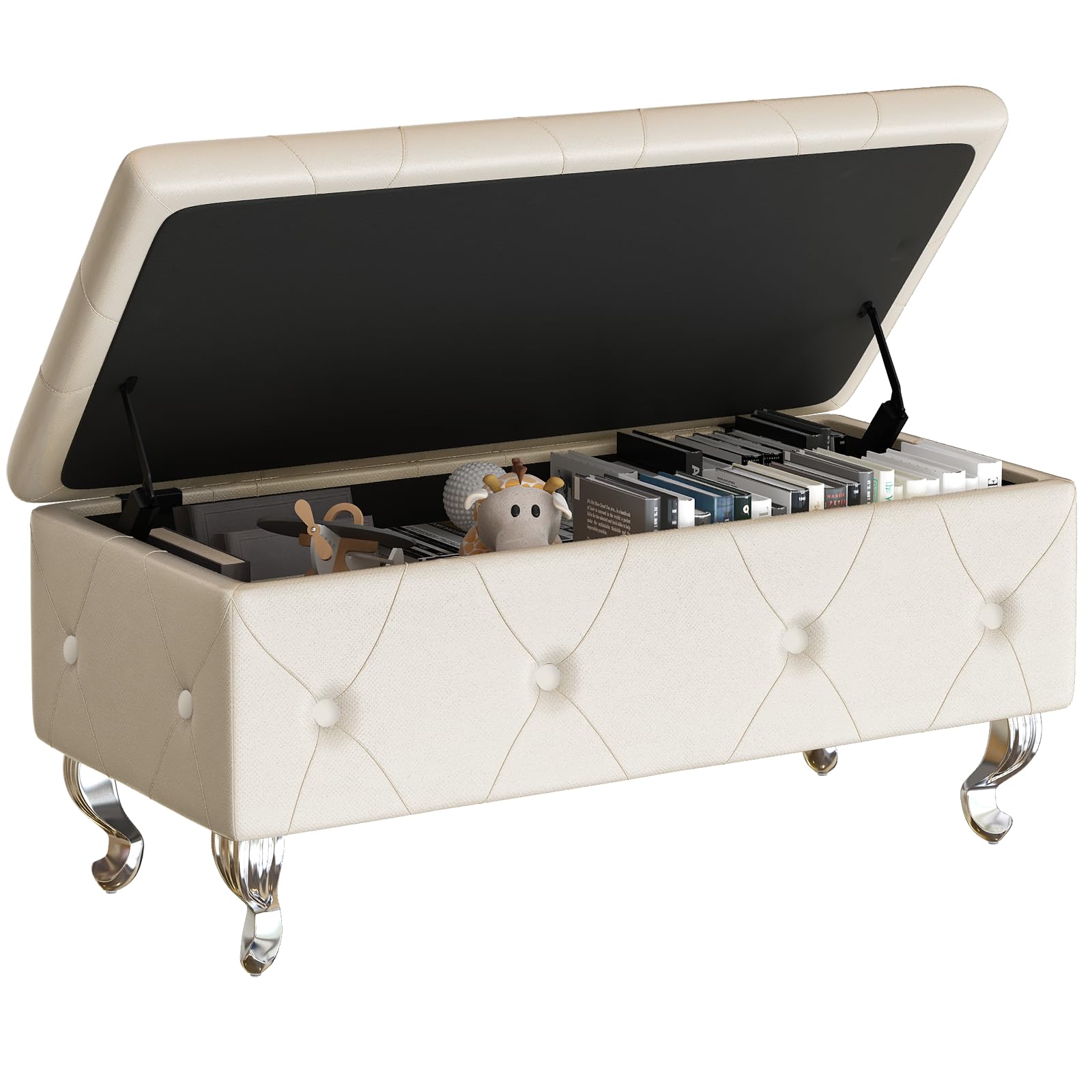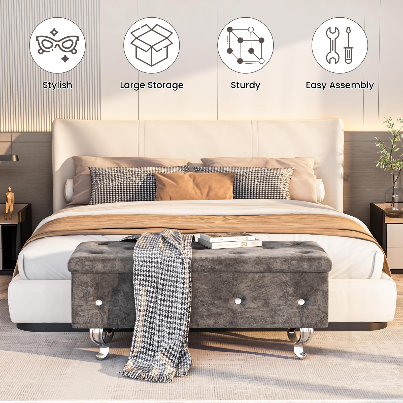 AWQM Upholstered Storage Bench, Safety Hinged Tufted Bed Bench