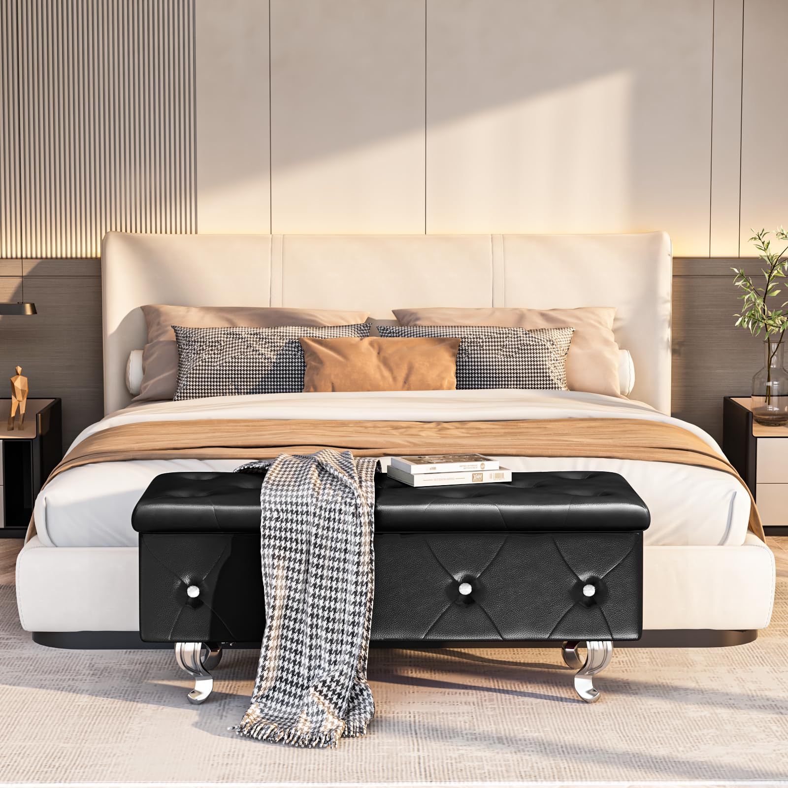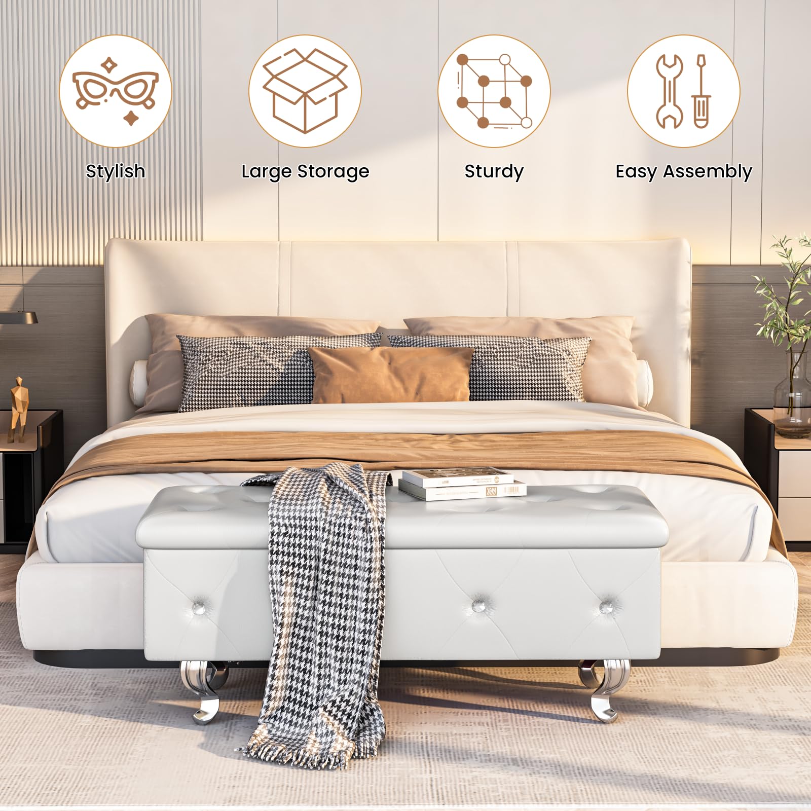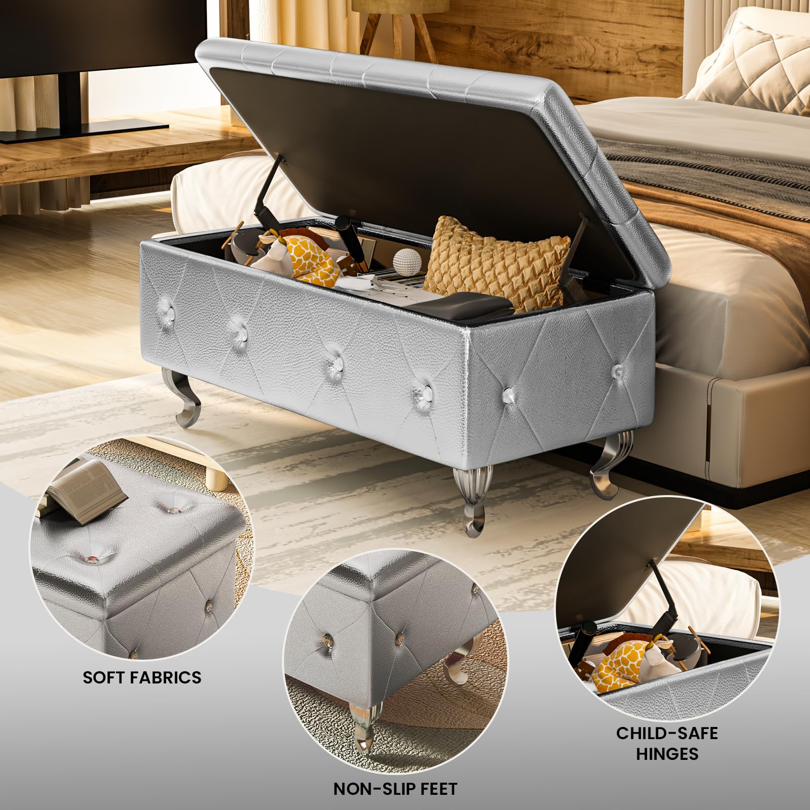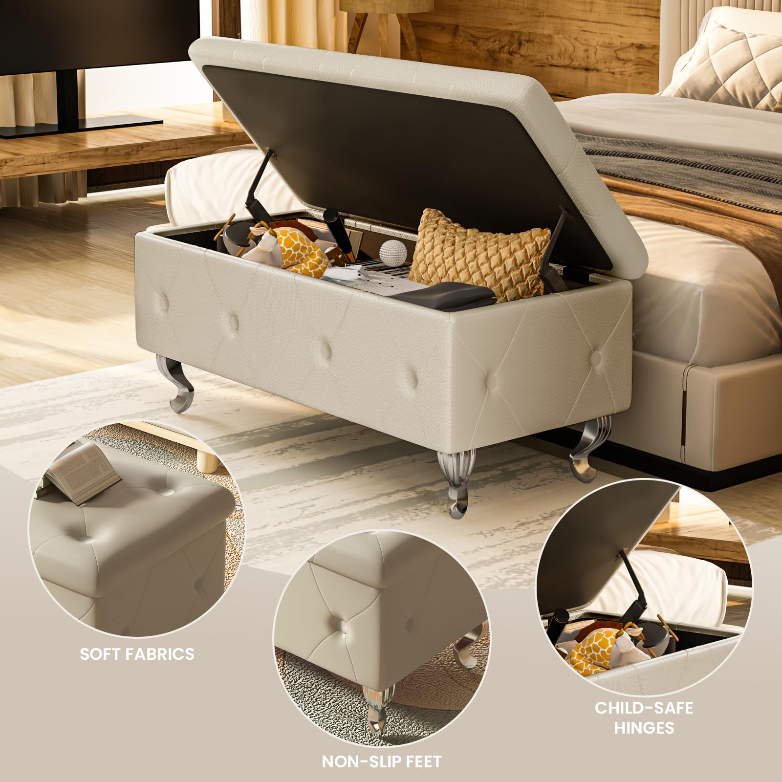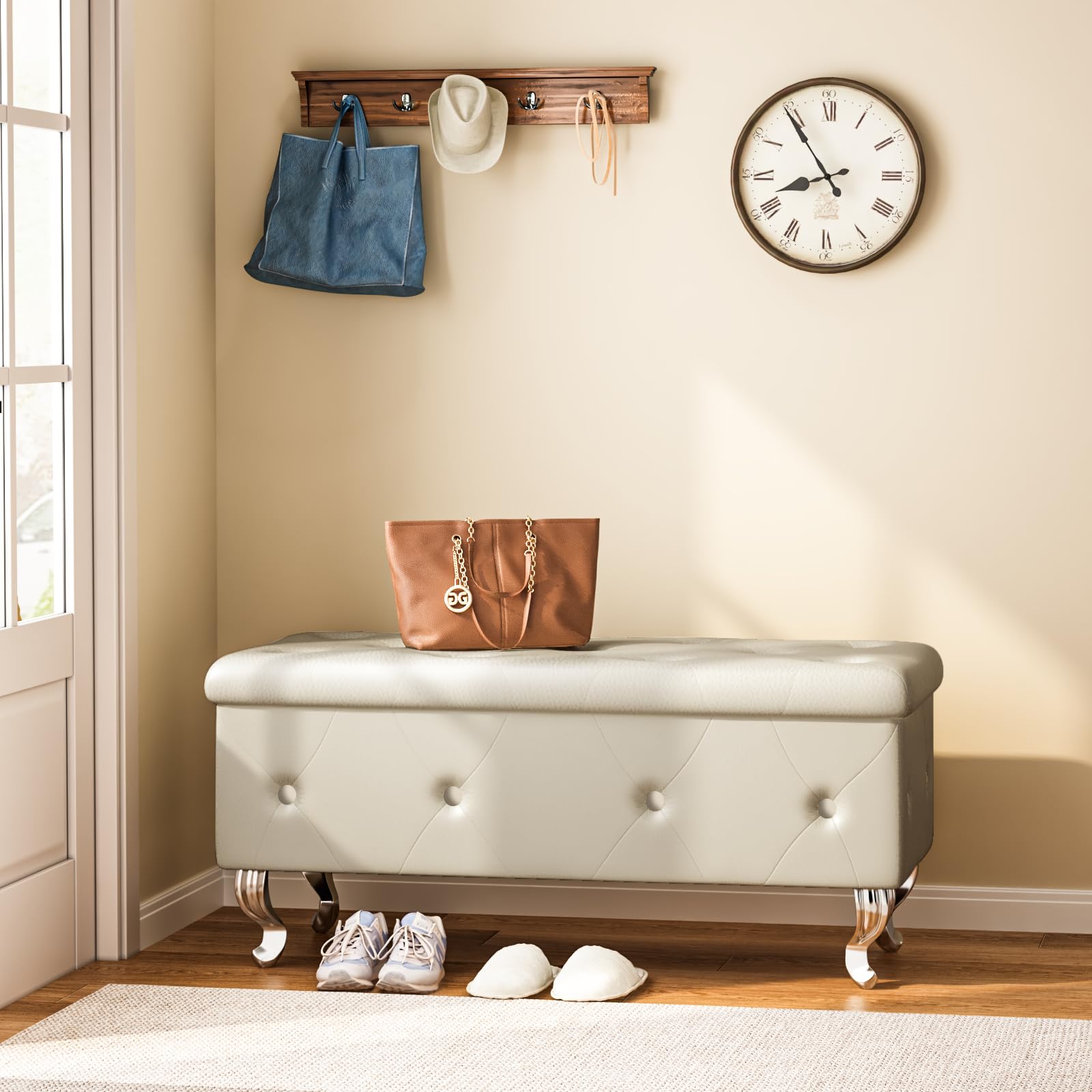 AWQM Upholstered Storage Bench, Safety Hinged Tufted Bed Bench