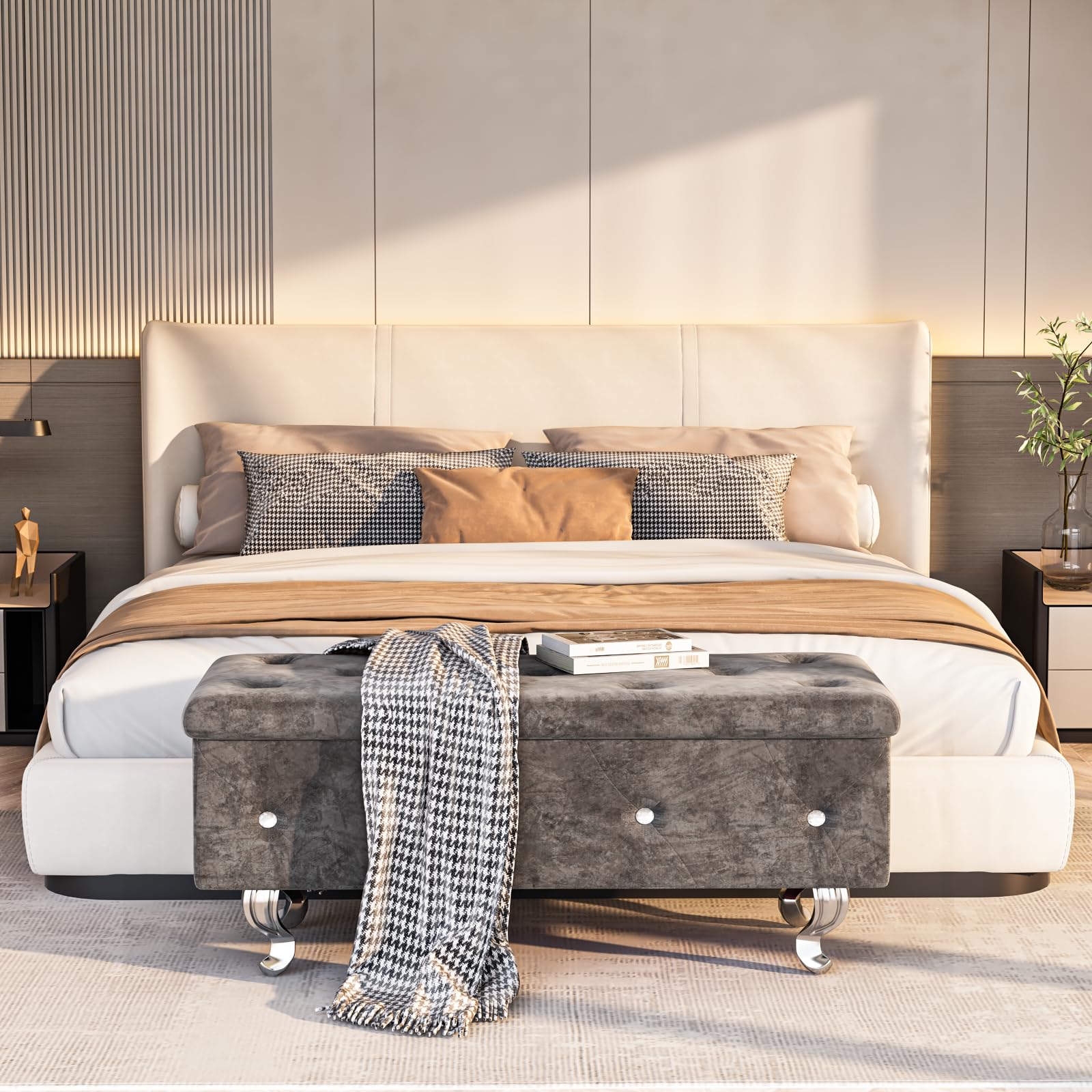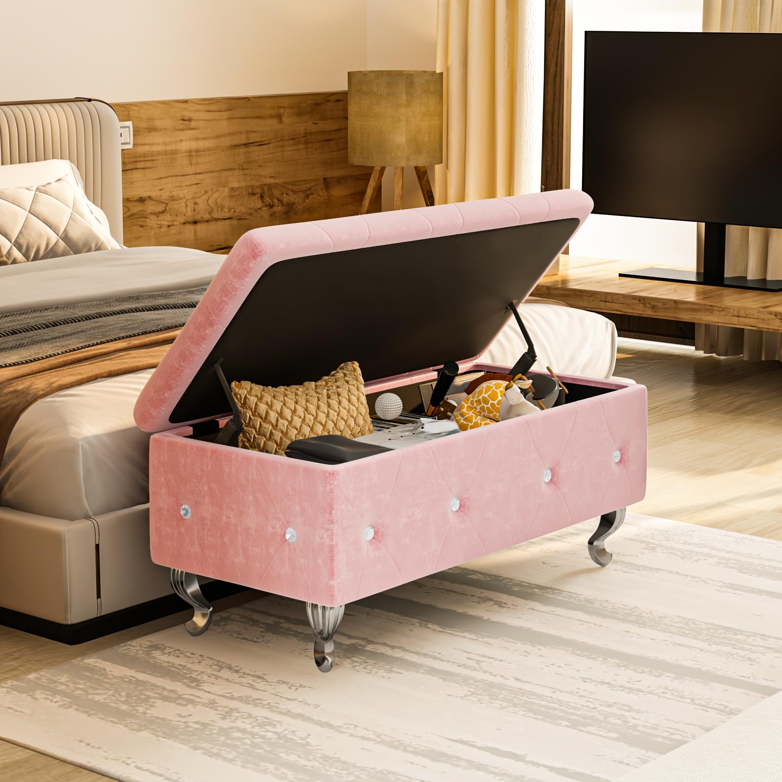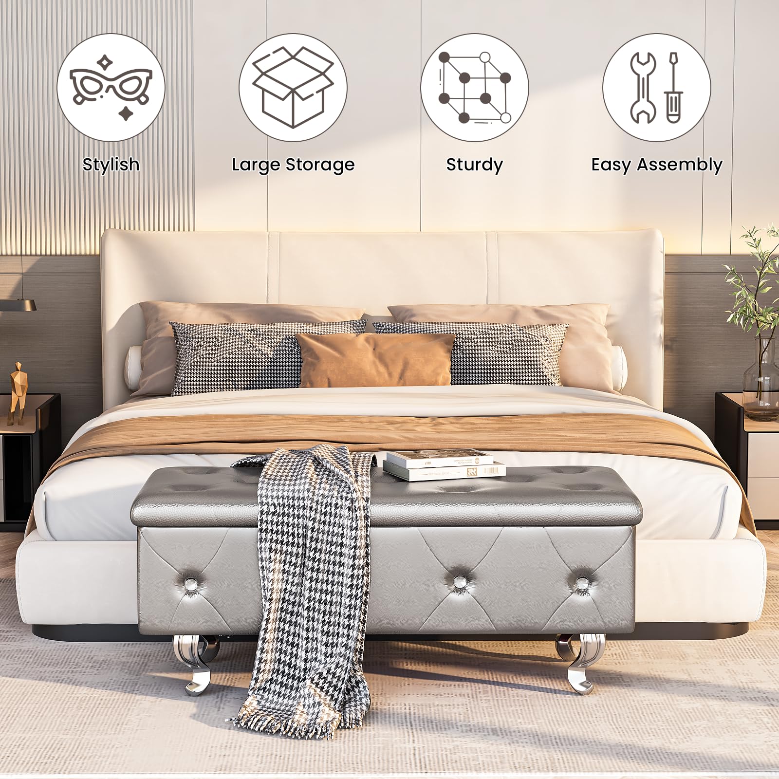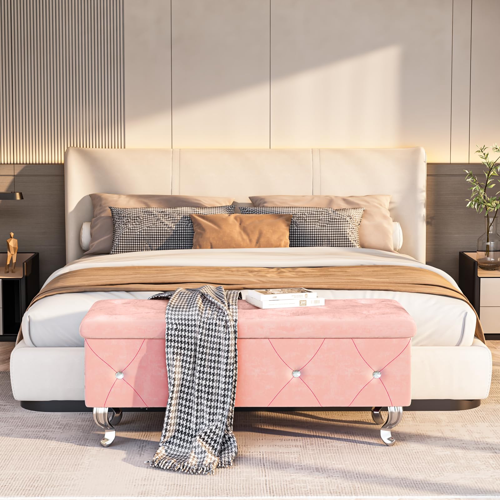 AWQM Upholstered Storage Bench, Safety Hinged Tufted Bed Bench