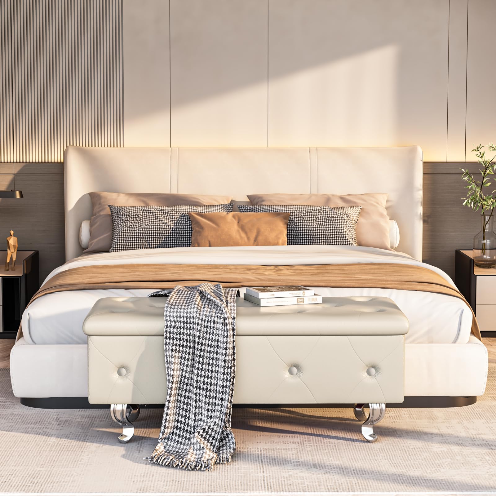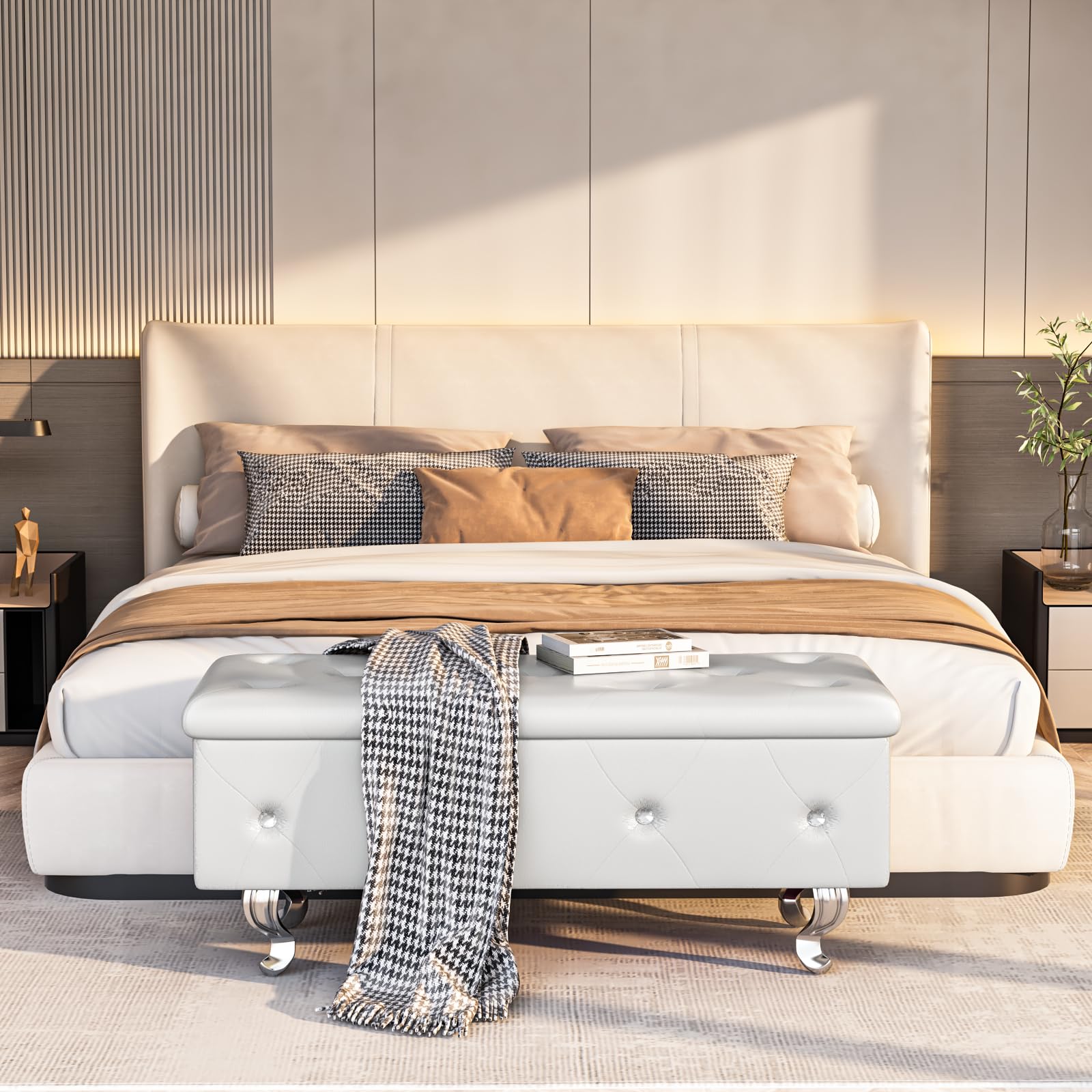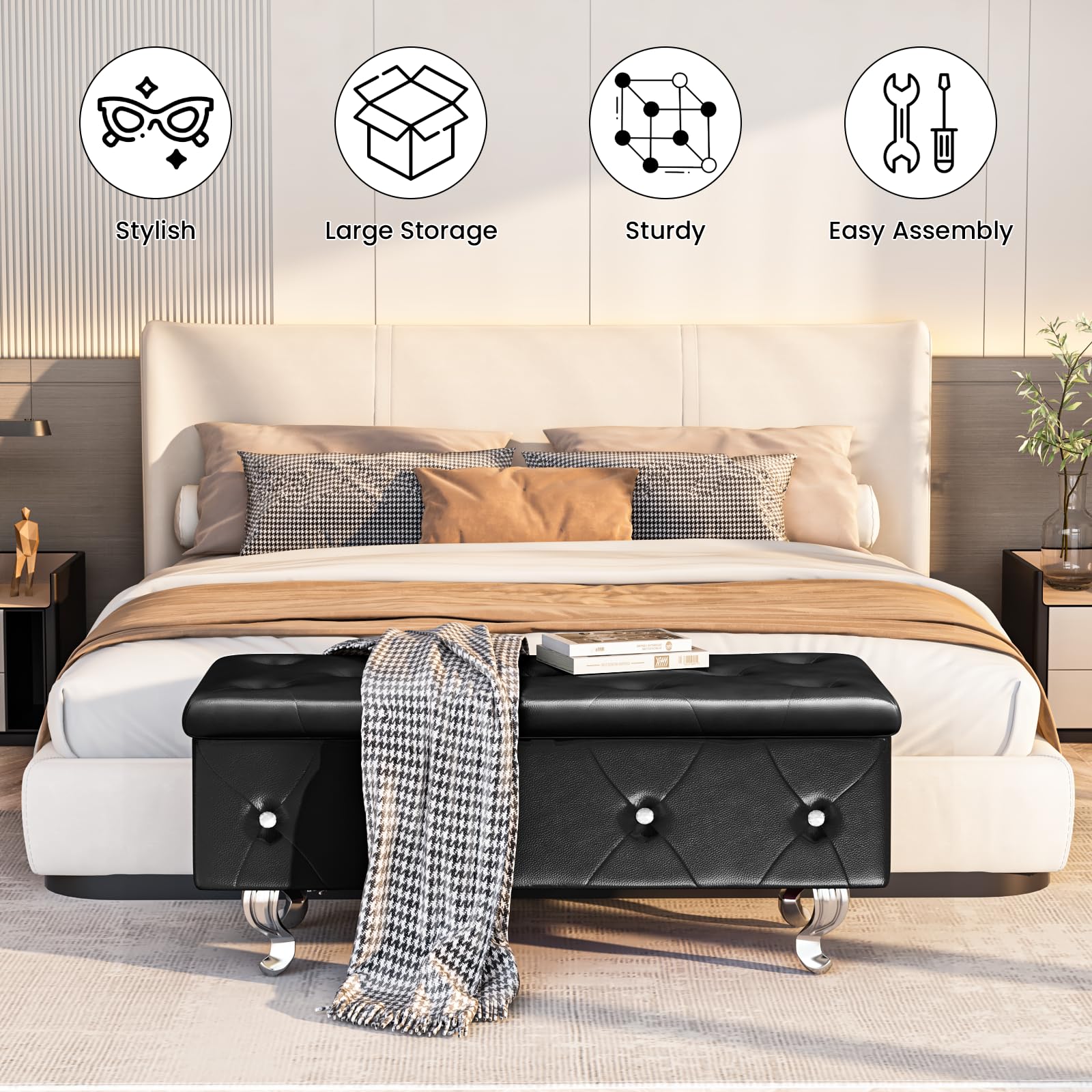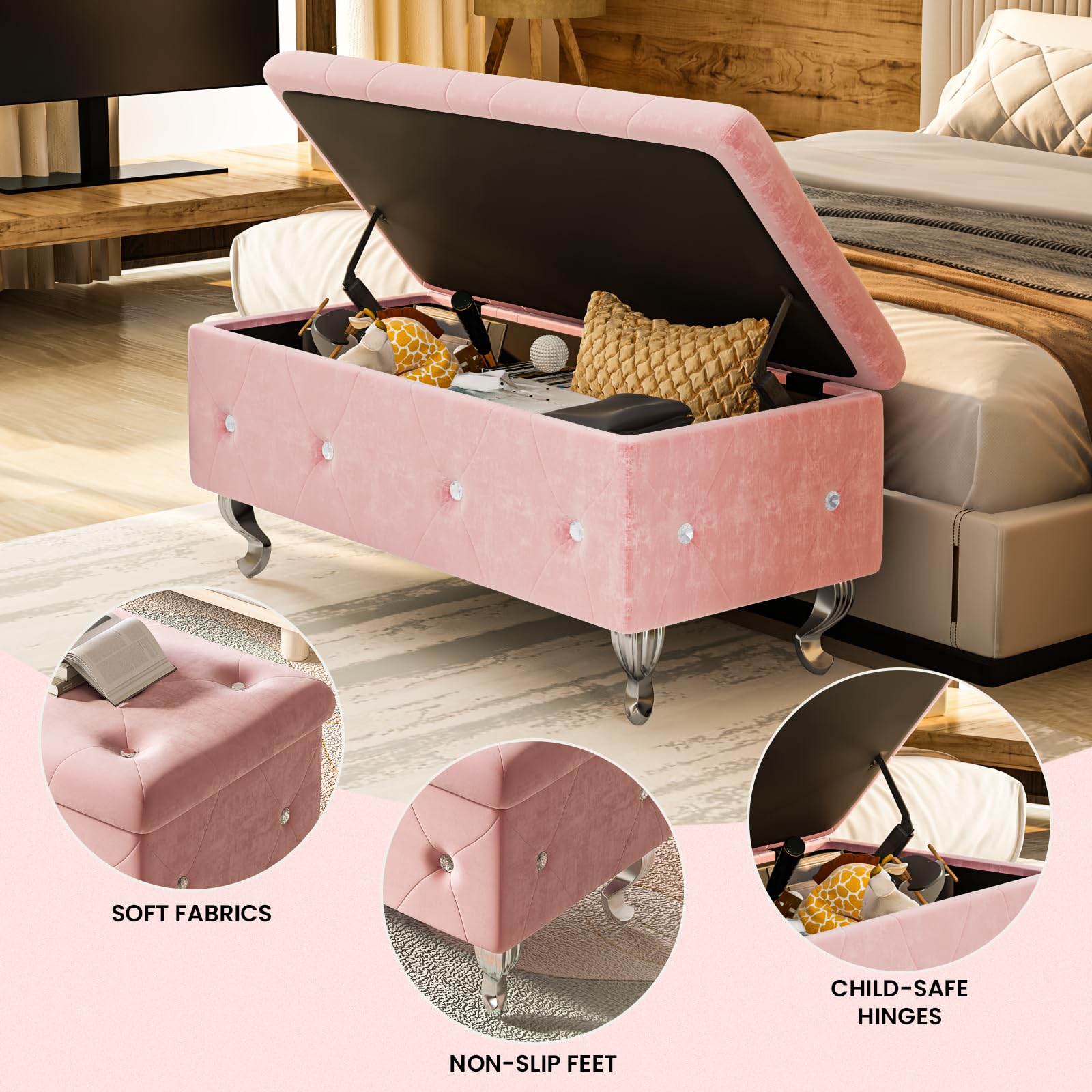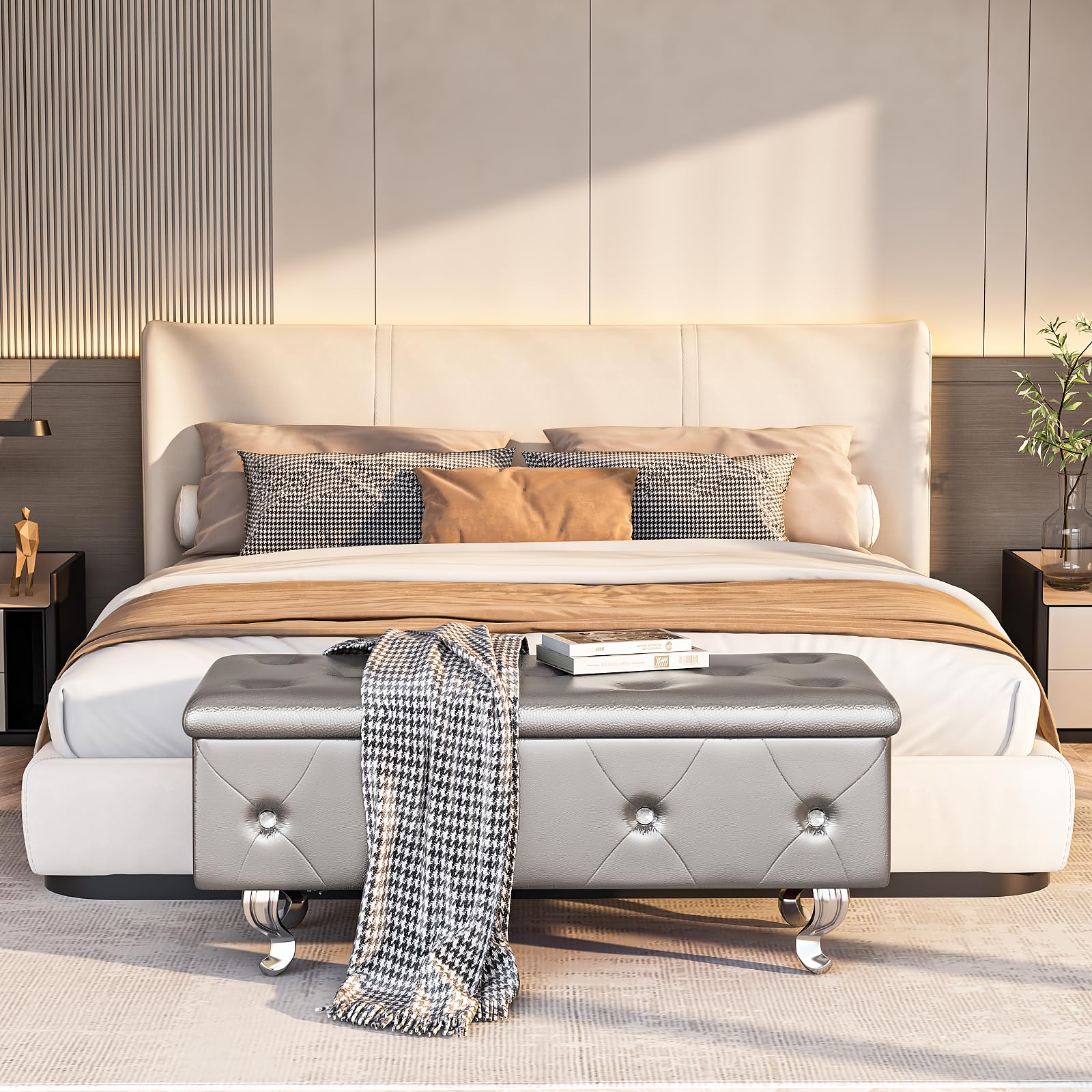 AWQM Upholstered Storage Bench, Safety Hinged Tufted Bed Bench