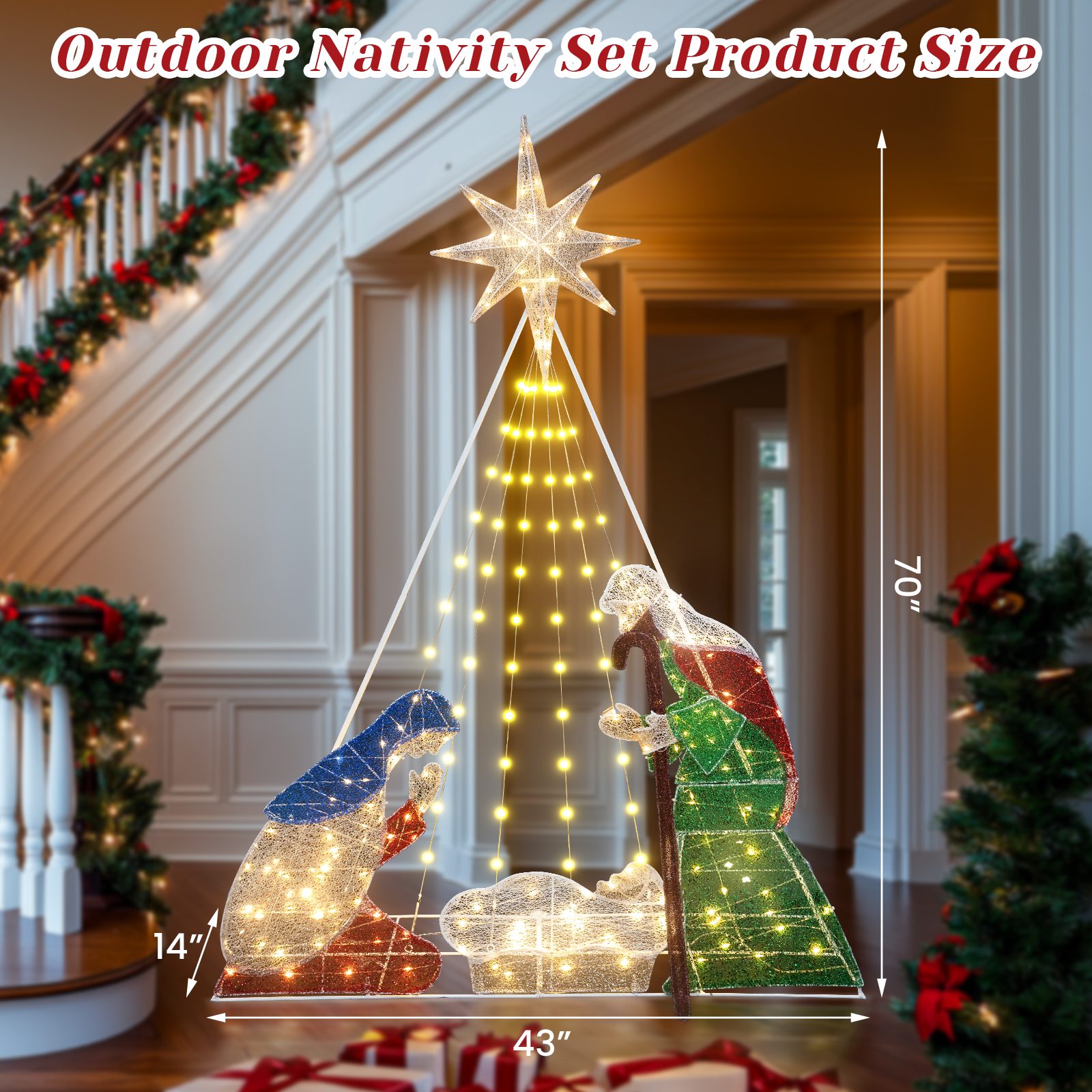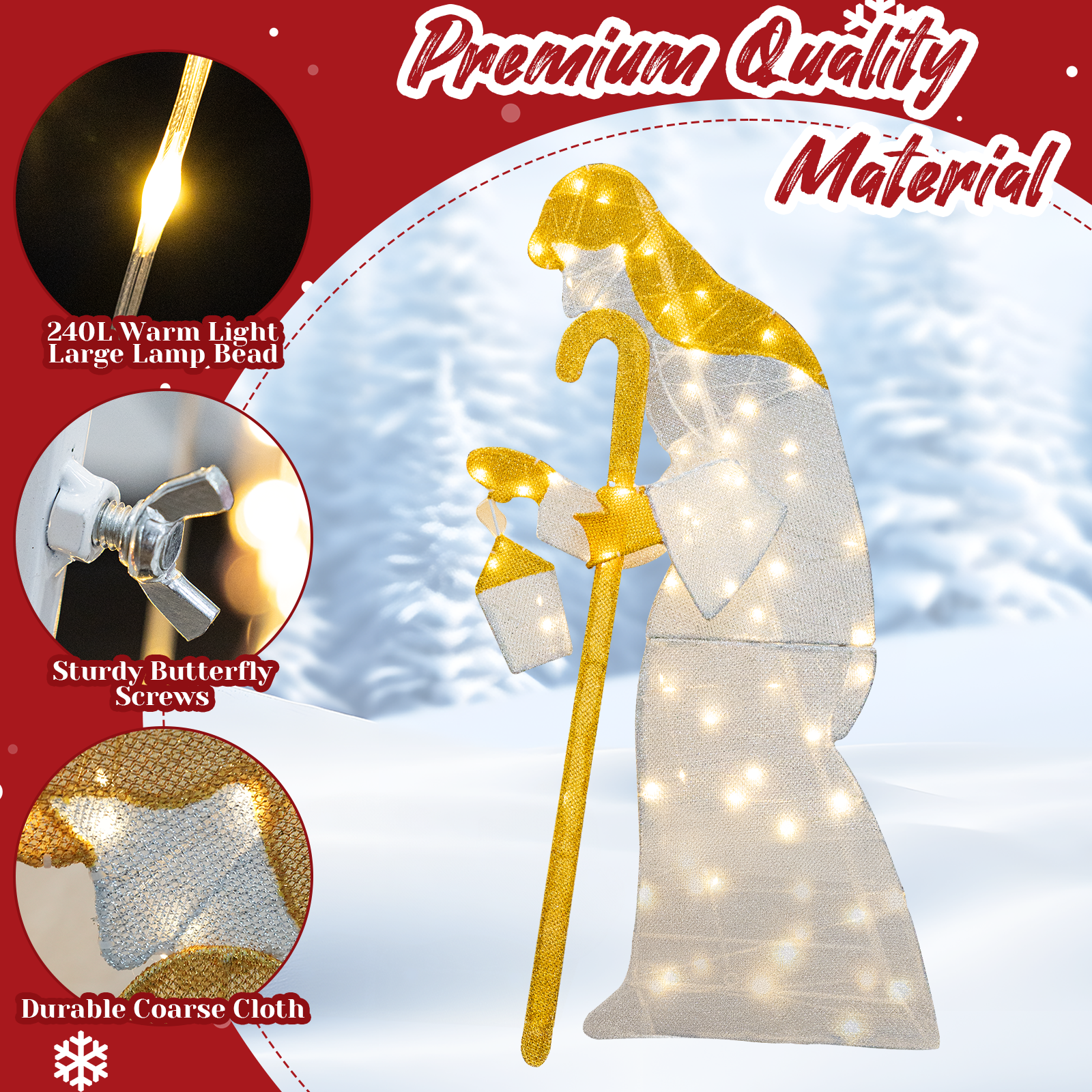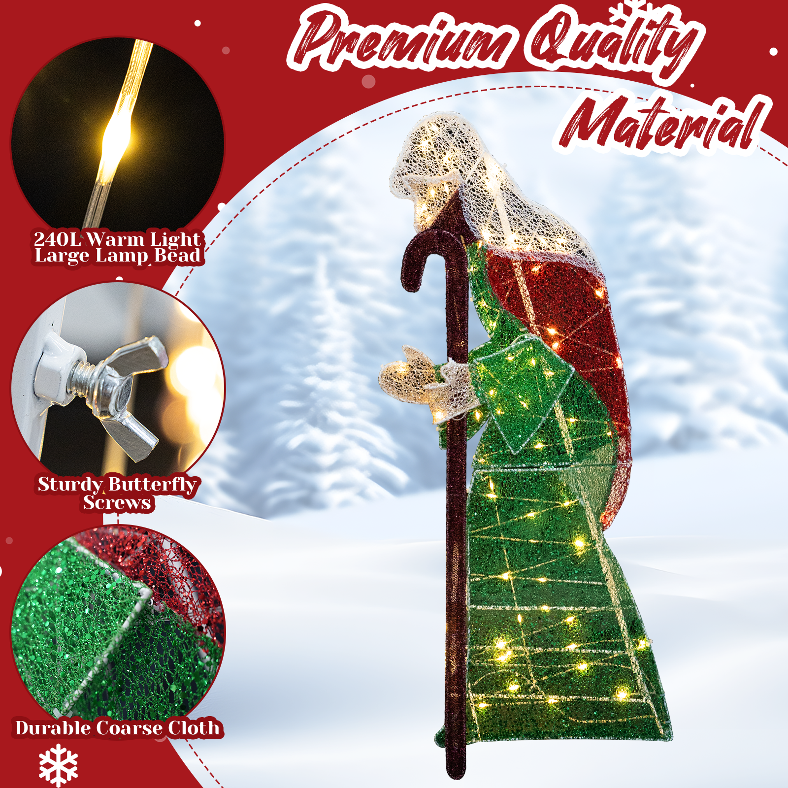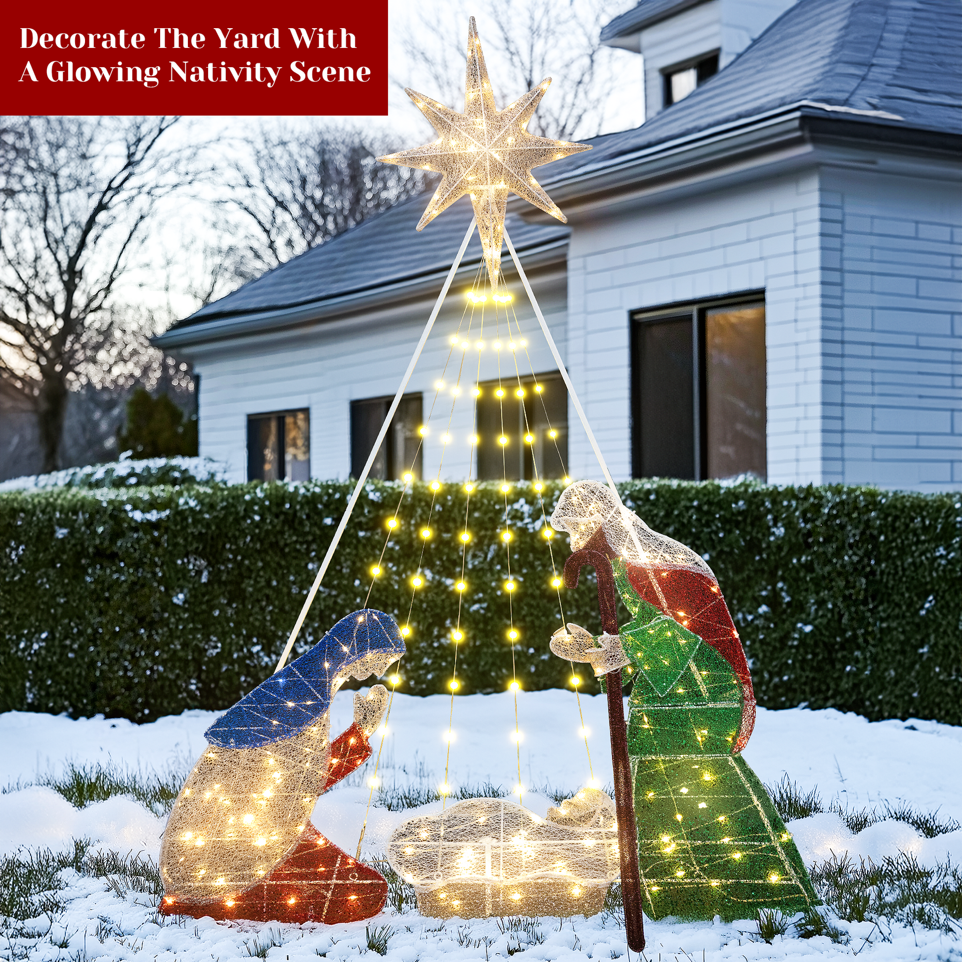 CHRISTMAS FIGURES SET: This Christmas outdoor decoration includes 3 pieces of Christmas figures: joseph, mary, baby Jesus. Exquisite design and realistic details make this Christmas manger set add charming charm to your yard.