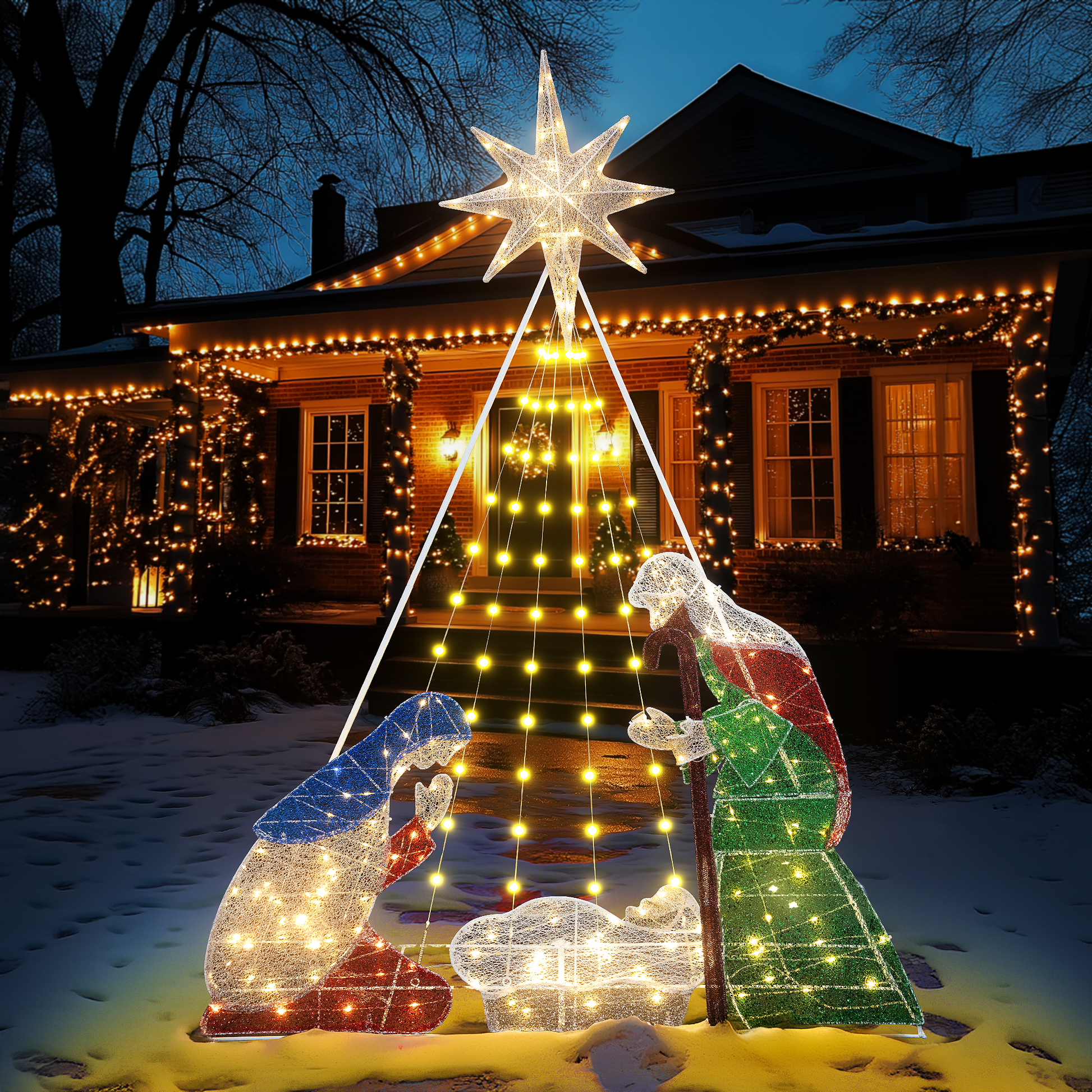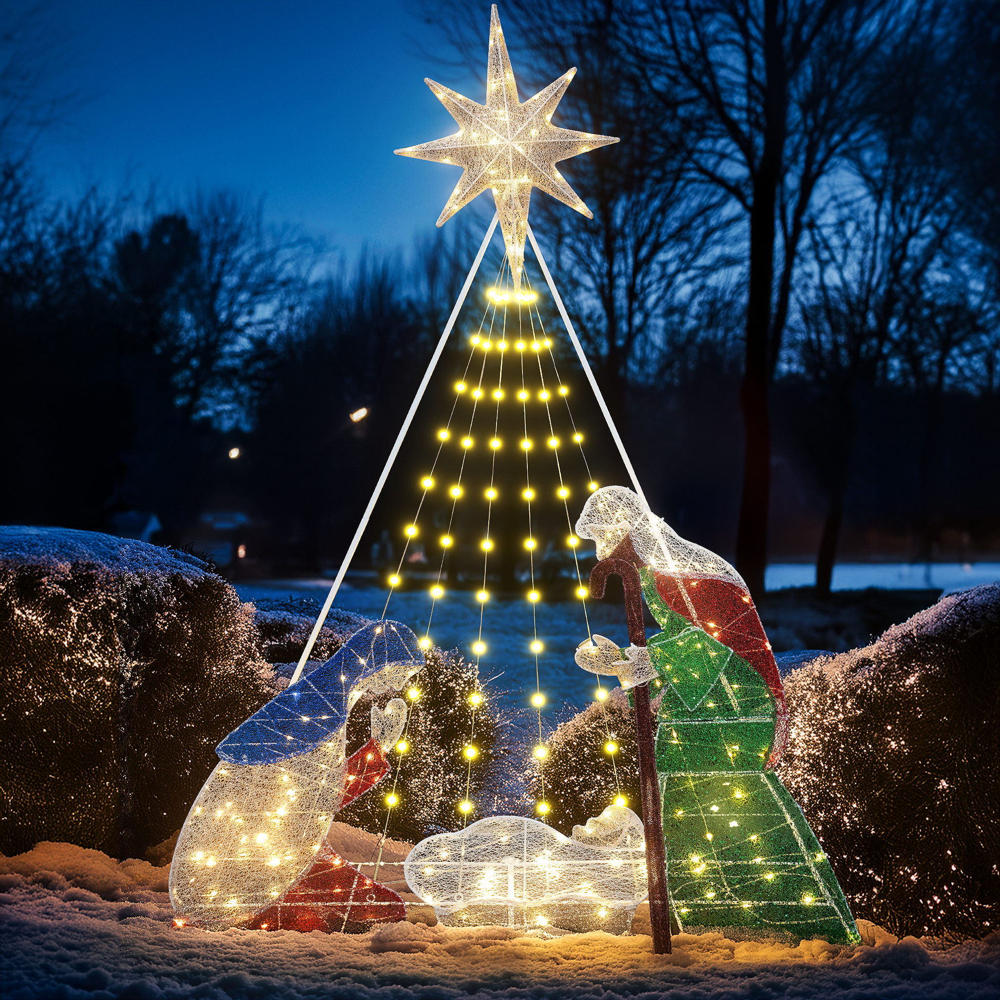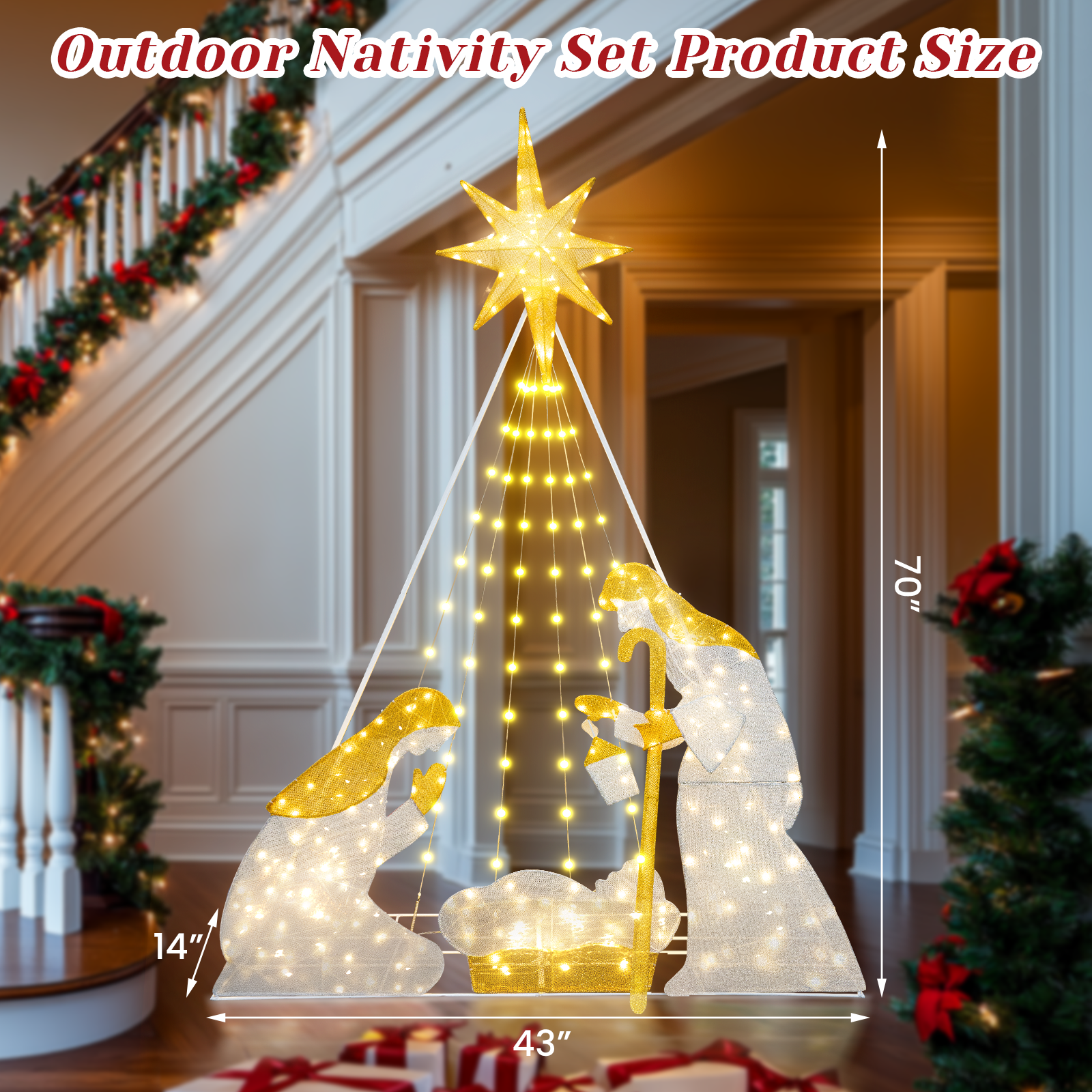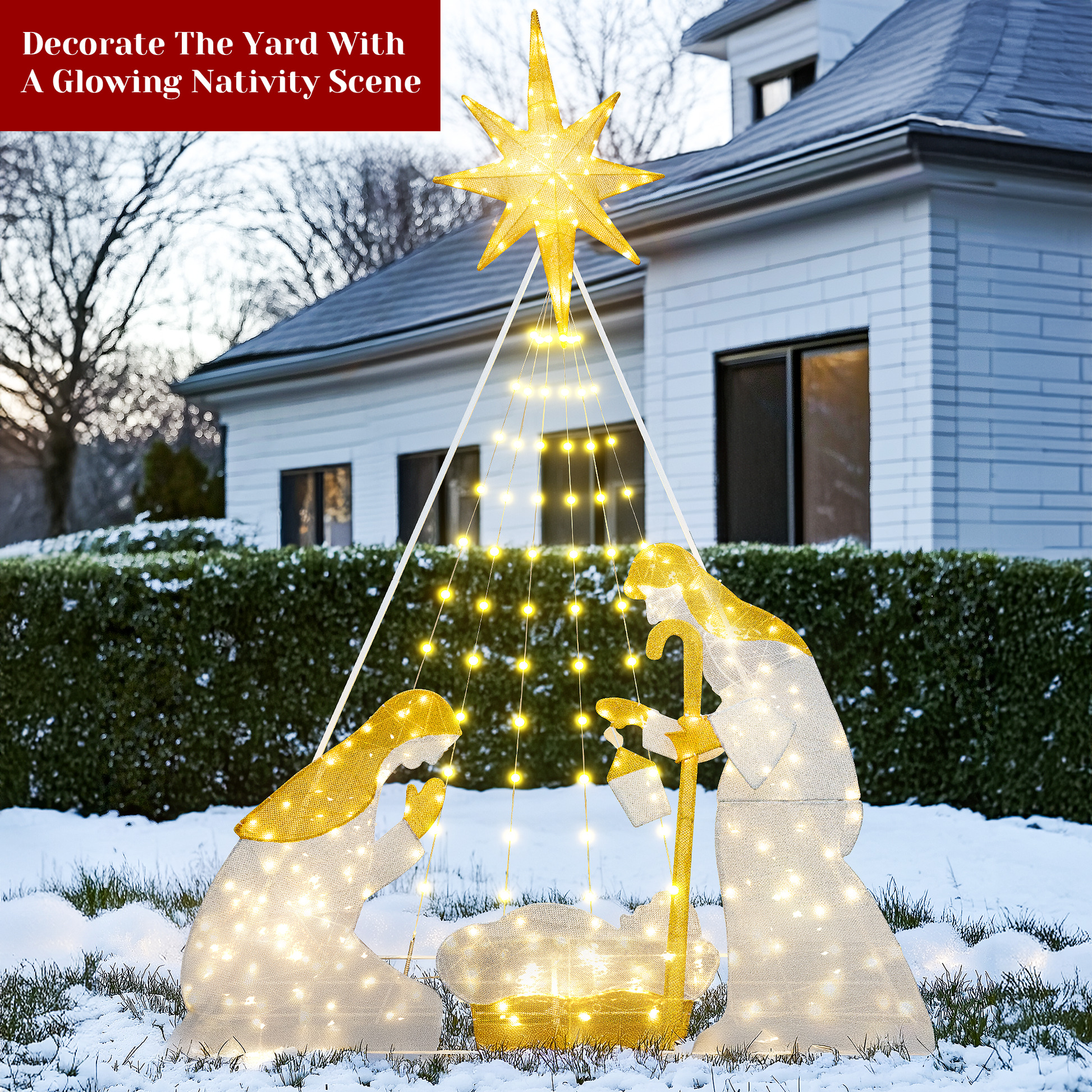 CHRISTMAS FIGURES SET: This Christmas outdoor decoration includes 3 pieces of Christmas figures: joseph, mary, baby Jesus. Exquisite design and realistic details make this Christmas manger set add charming charm to your yard.
