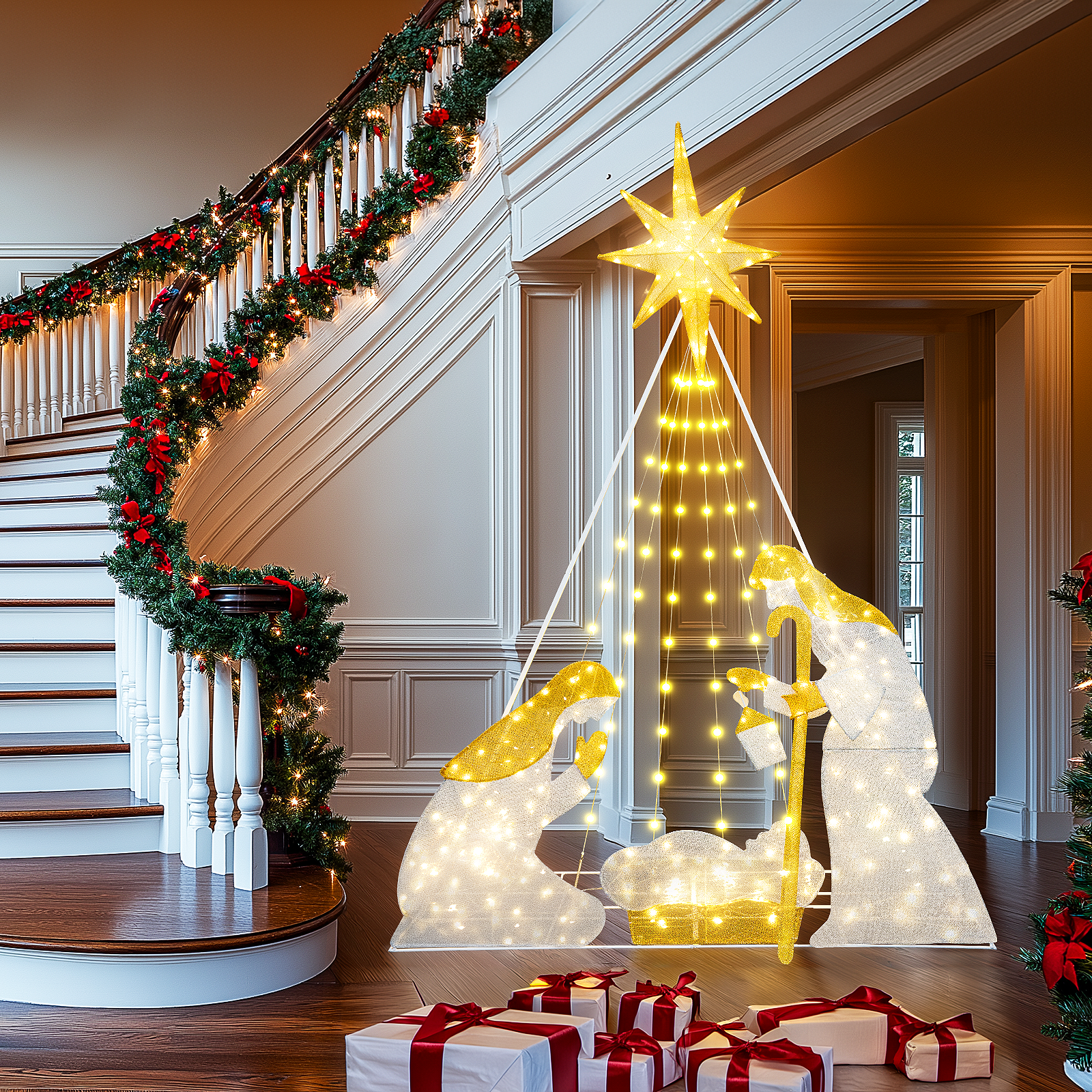 AWQM Christmas Nativity Set Stable and Sturdy Iron Frame