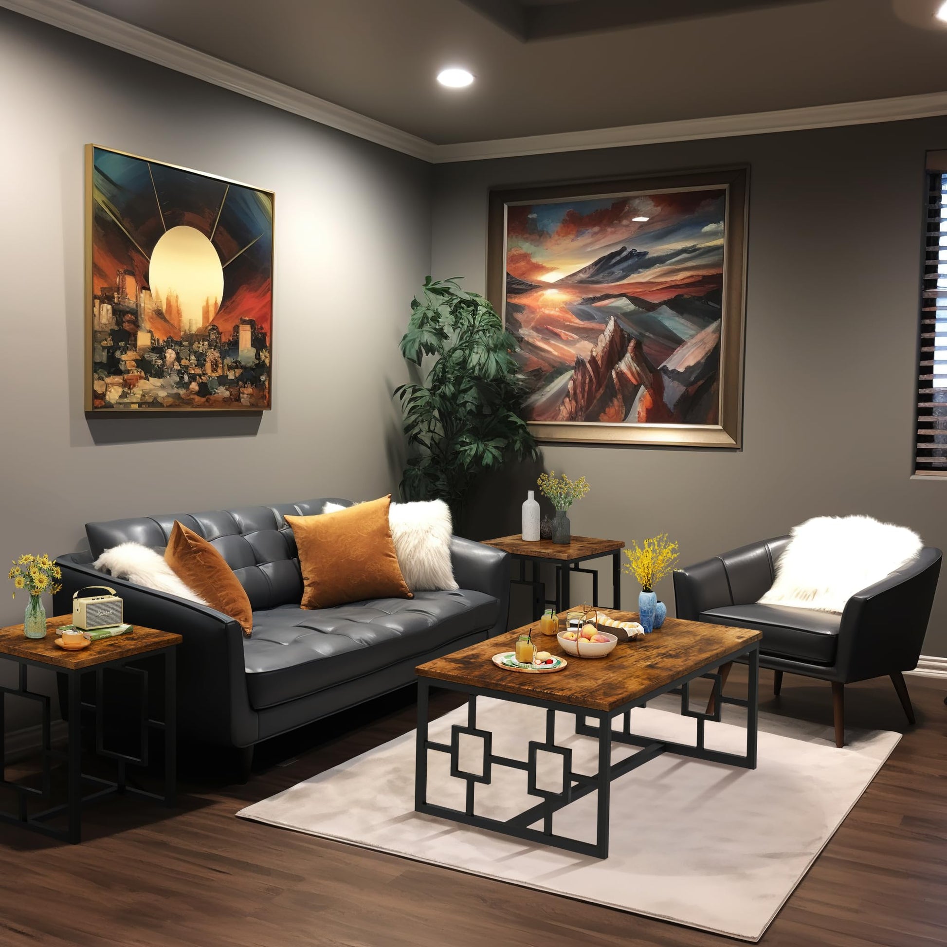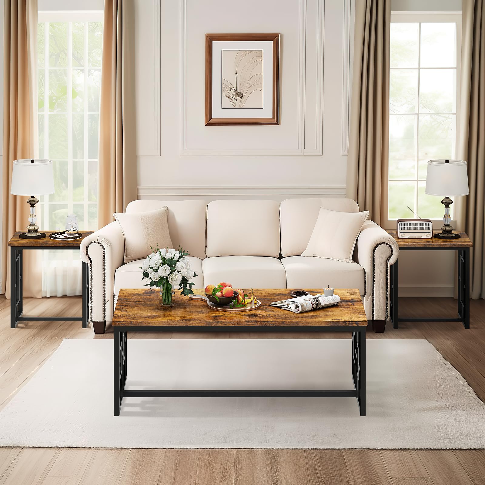- ✔Industrial Living Room Coffee Table Sets: The end table and coffee table are made of a high-quality MDF board, a solid metal frame that ensures stability and durability. This 3 piece coffee table set is durable and easy to clean and maintain.