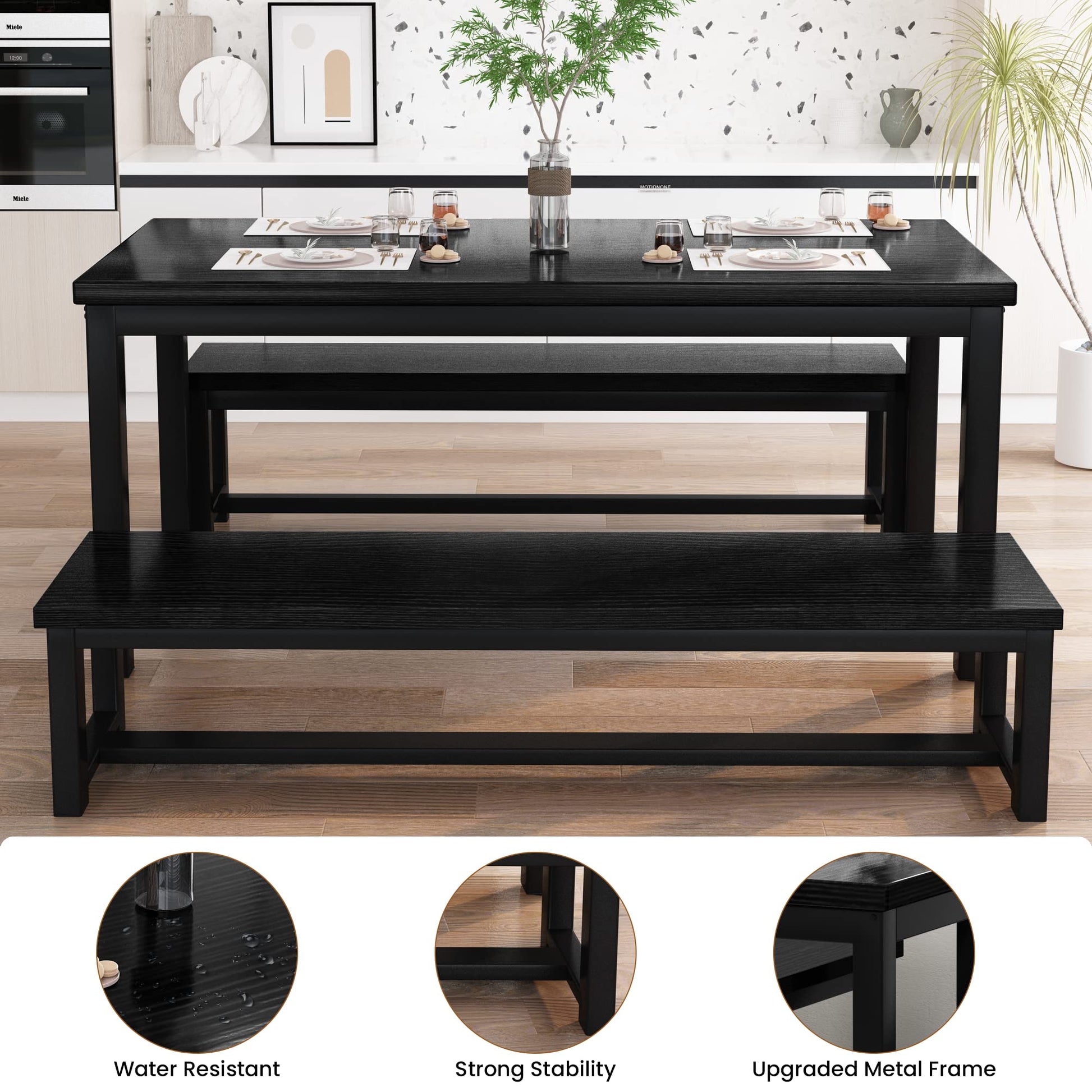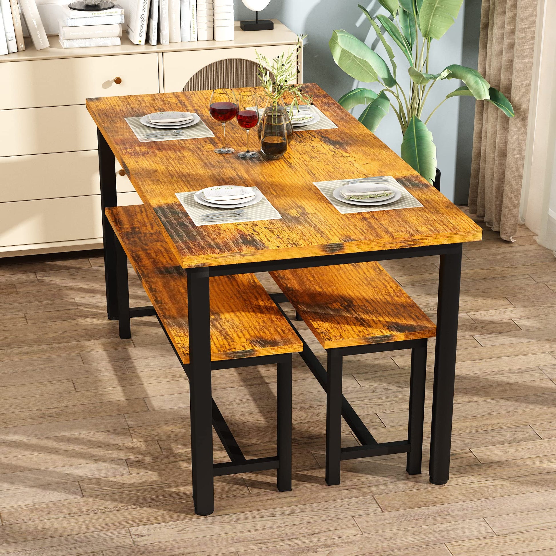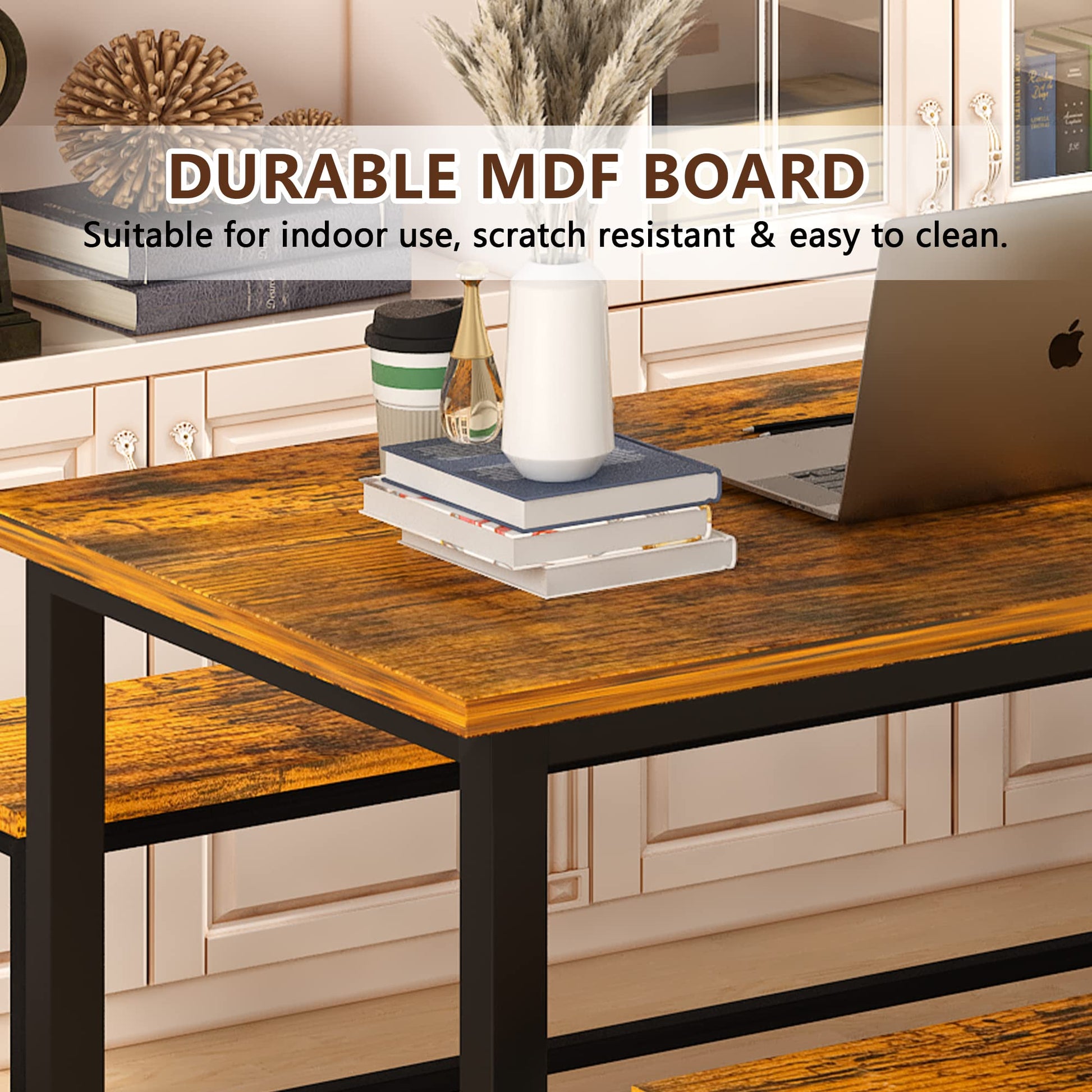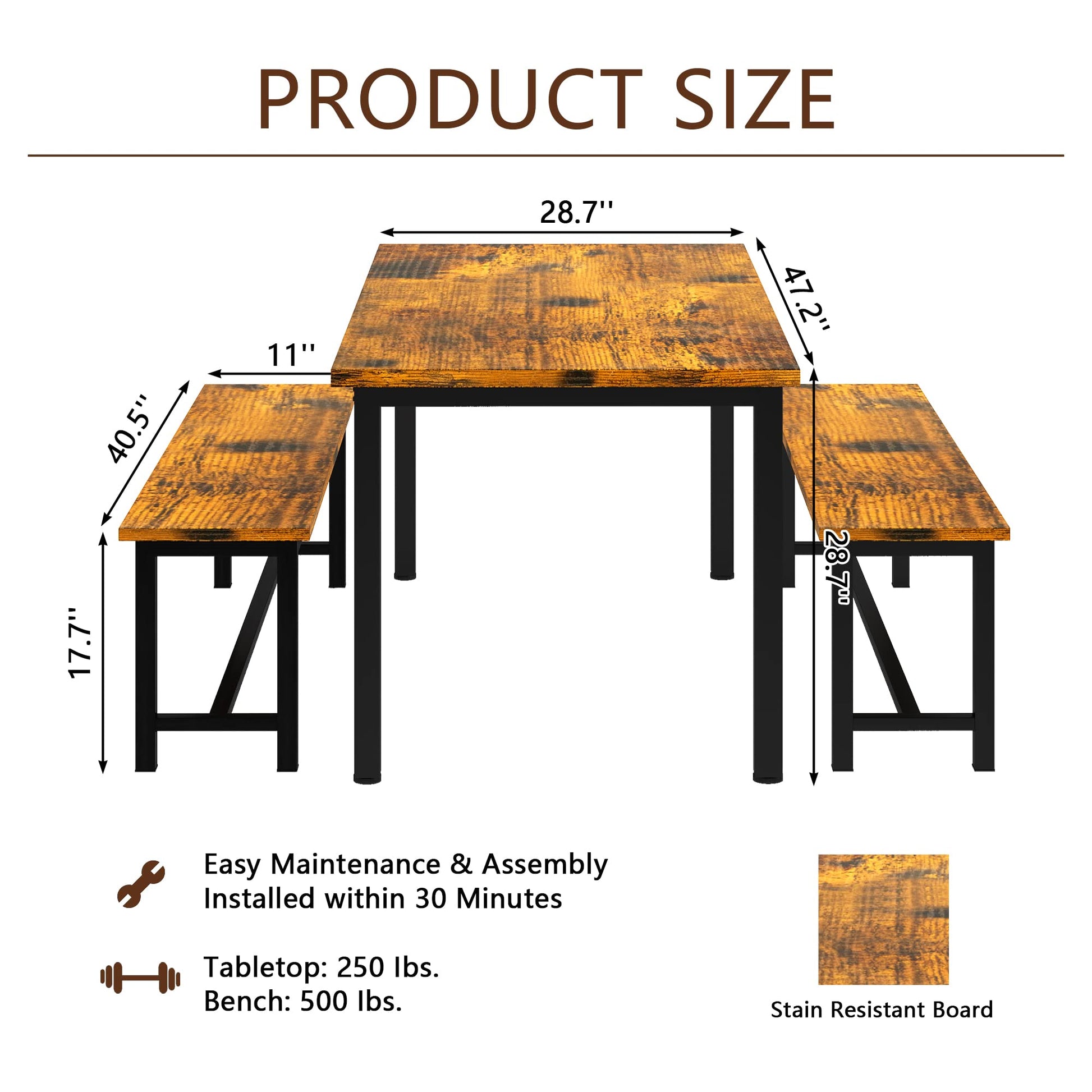 High Quality: The dining table set is made of MDF wood board and metal square tube, with rich surface texture, higher stability and sturdiness.