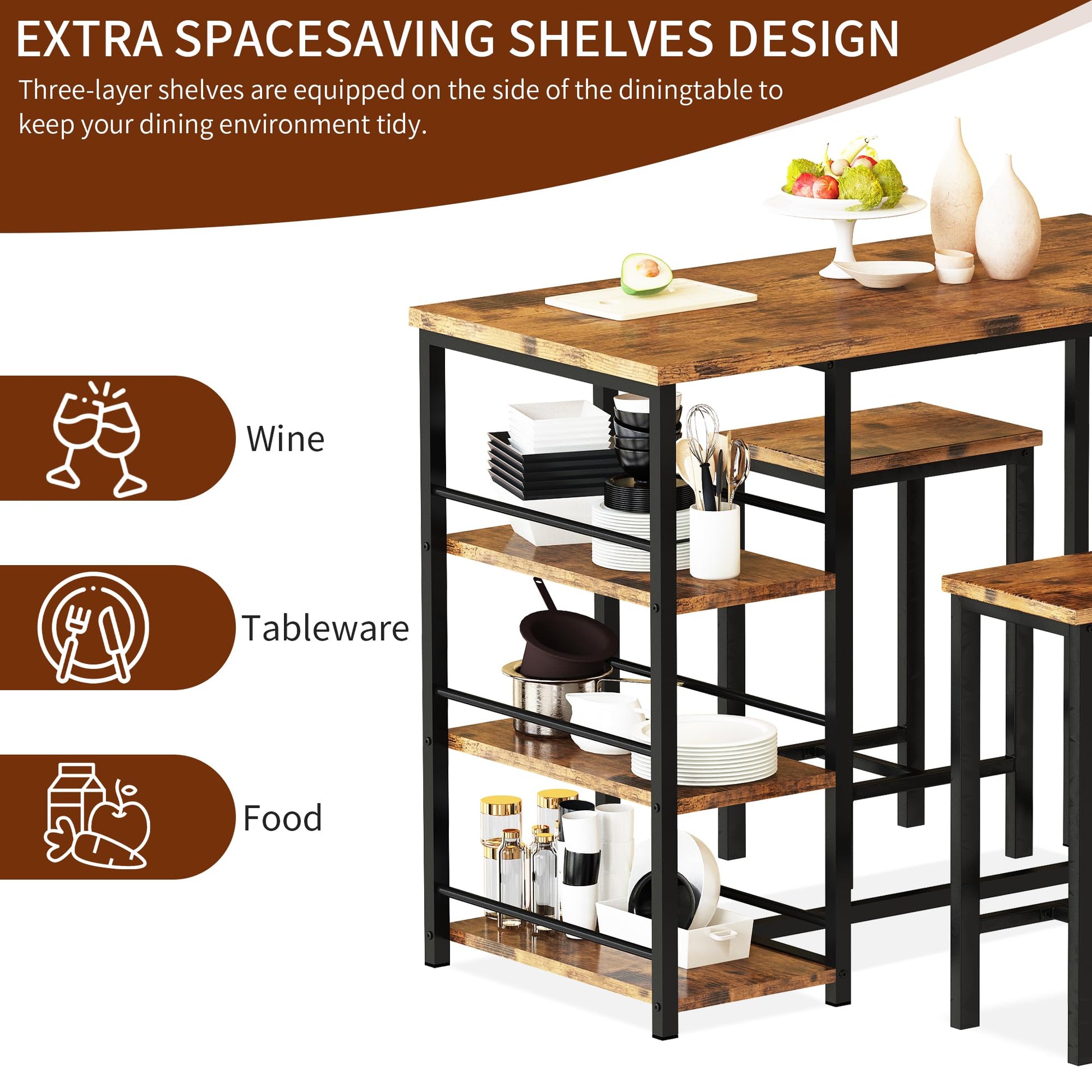 AWQM Industrial Wood 2-Person Dining Table Set with High Bar