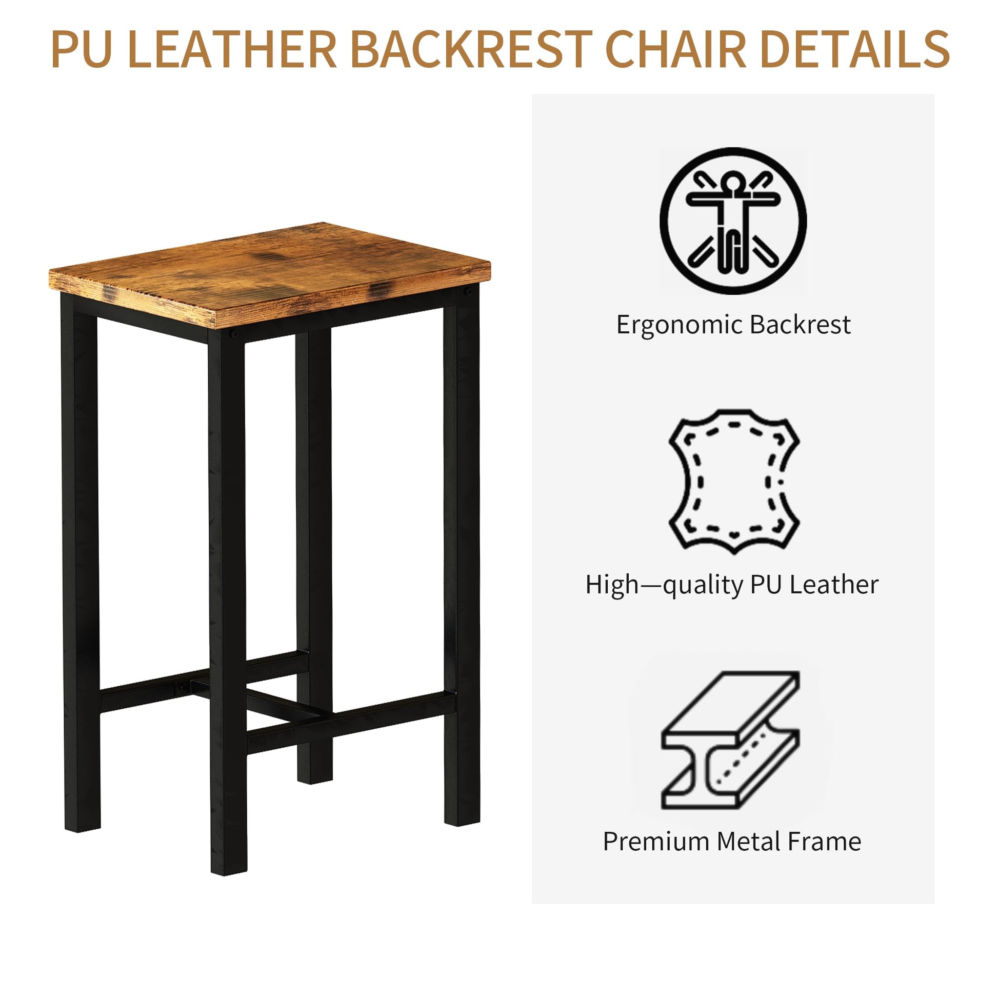 Modern Simple 2-Person Dining Table Set - Vintage brown MDF tabletop with black metal frame structure makes the bar table and chairs set modern and simple, which can be well matched with other dining furniture in your space. A stylish bar table and chairs set for your dining room or kitchen.