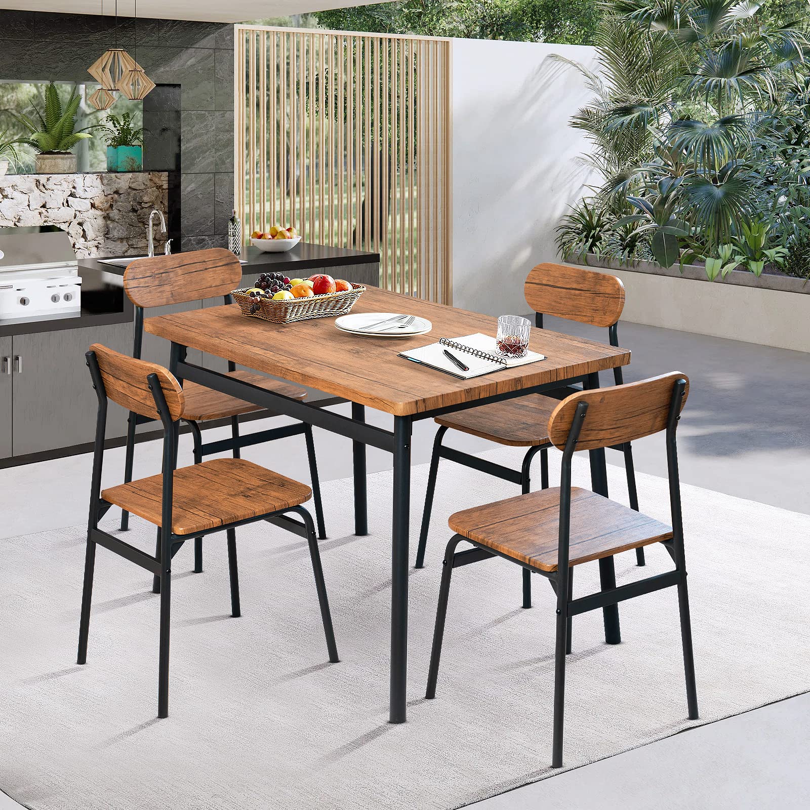 - 【Modern Industrial Dining Table Set】: 5-Piece kitchen dining table set insists of one table and 4 high-quality dining chairs. Unique Wood grain tabletop match with classic black legs create. Industrial style, The simple lines and Vintage Wooden tabletop create a stunning visual effect allows you to use it in various scenarios, Suitable for kitchen, dining room restaurant dorm apartment bistro, meeting your different needs. Perfect for family meals.