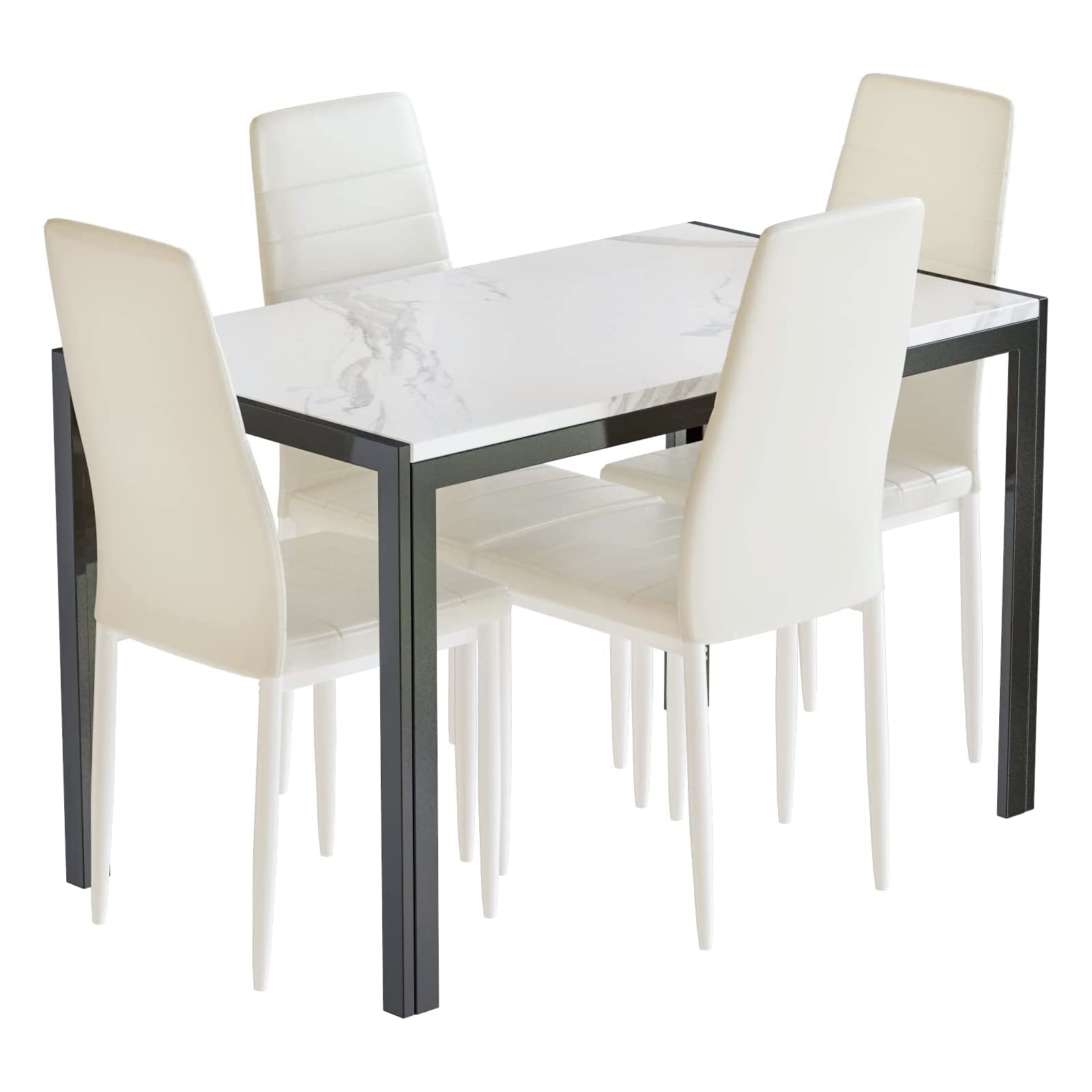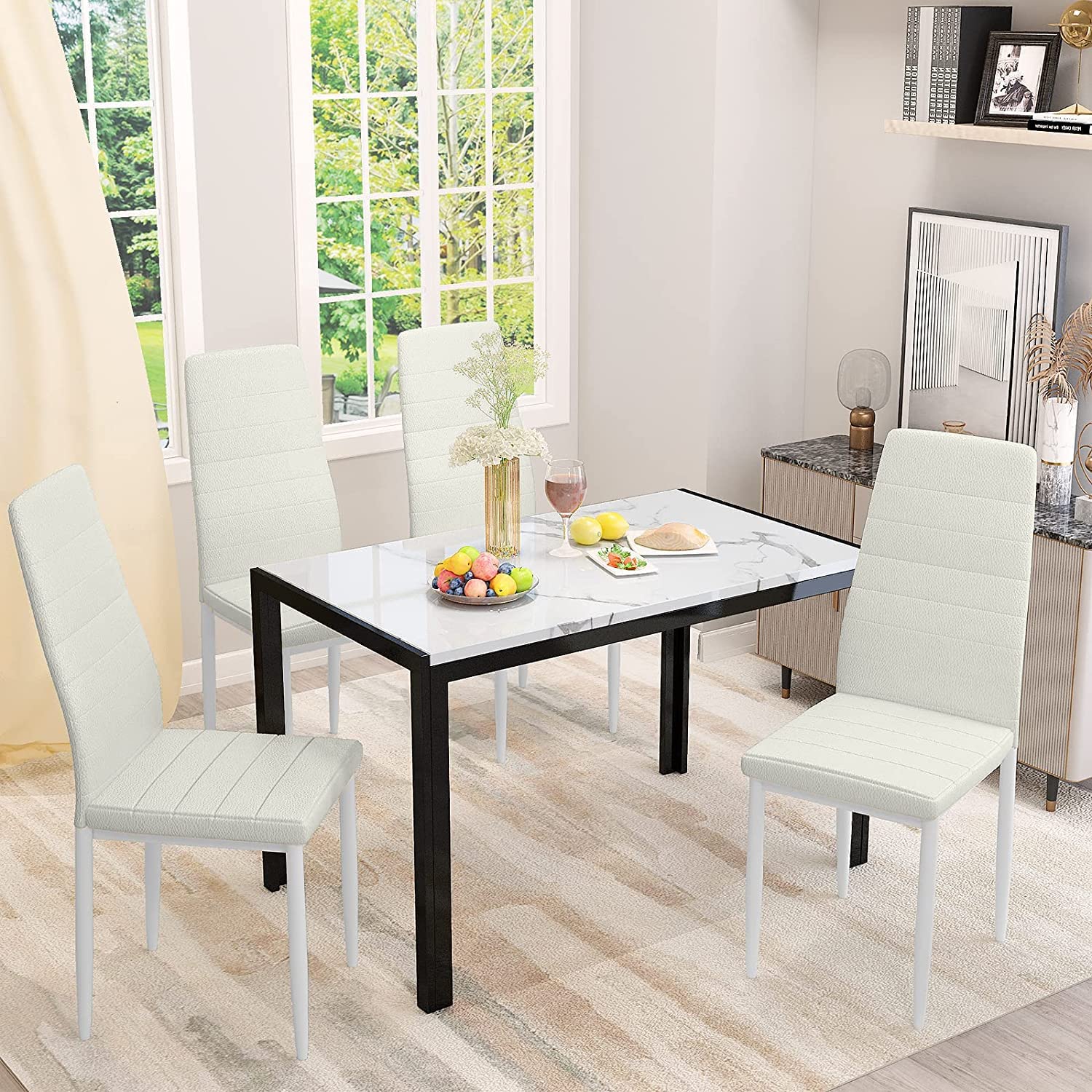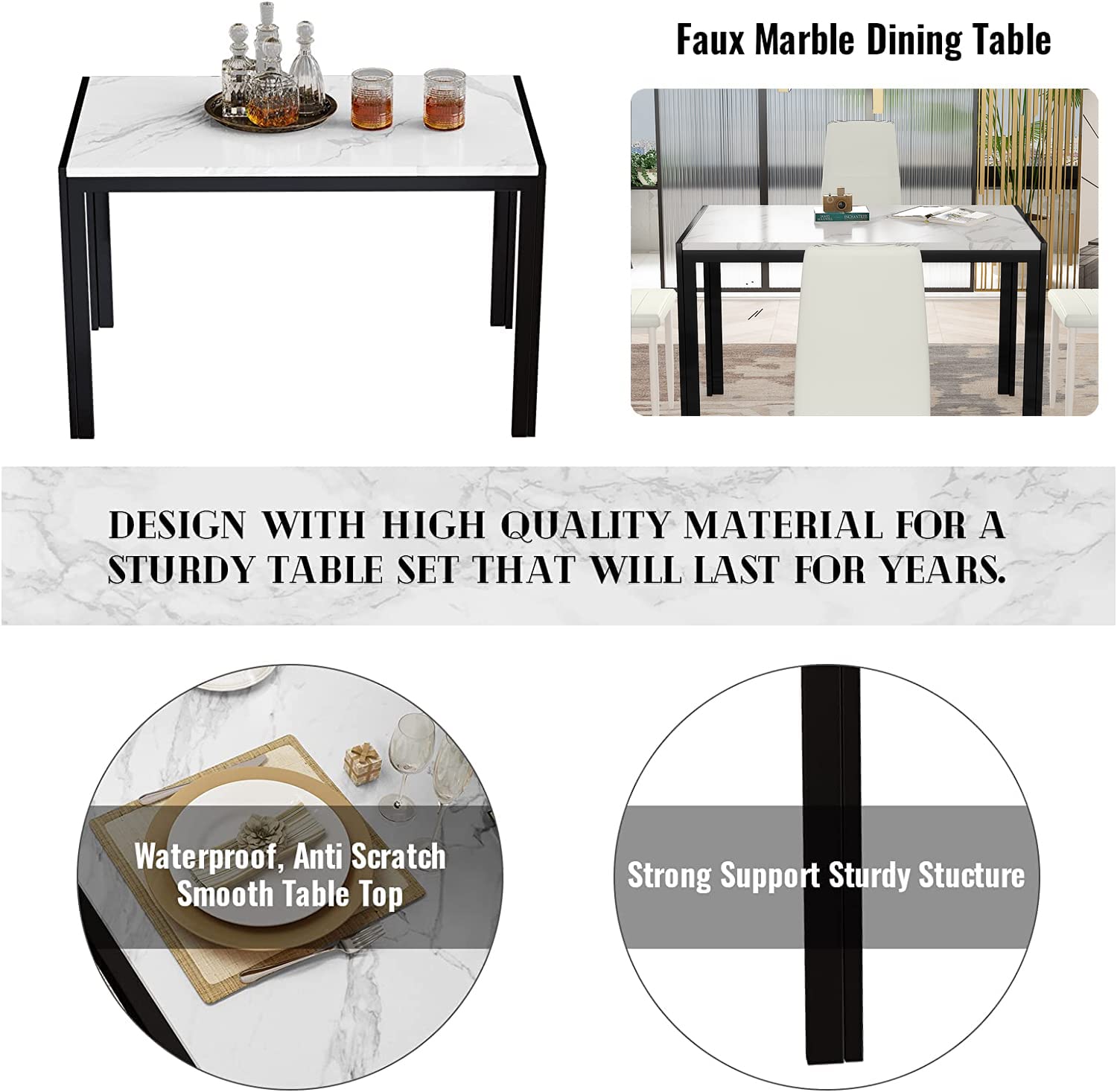 Imitation marble tabletop style, elegant touch, wear-resistant and heat-resistant. Simple and modern color design and matching, perfect for any decoration style in your home. This marble dining table can accommodate up to 4 people, and the sponge-padded PU cushion allows you to sit for a long time without feeling tired, which is perfect for family-style breakfast, lunch and dinner, drinking coffee and drinks with friends, working in a computer office, or playing with family and friends. In addition, this table is perfect for restaurants, bars and other commercial places.