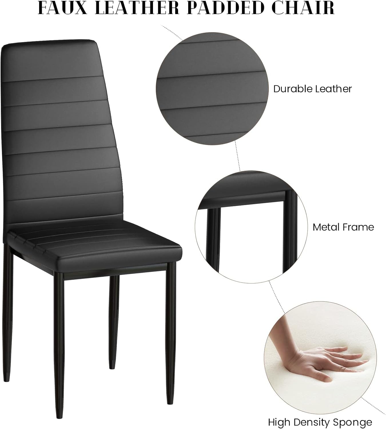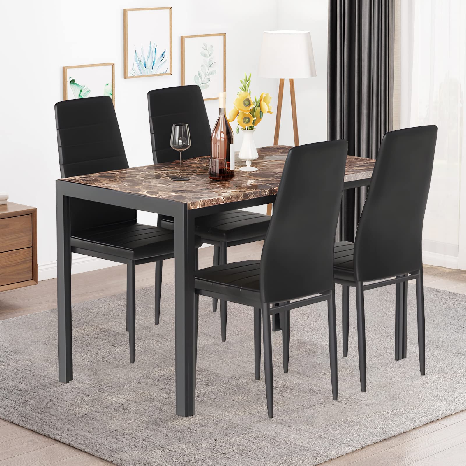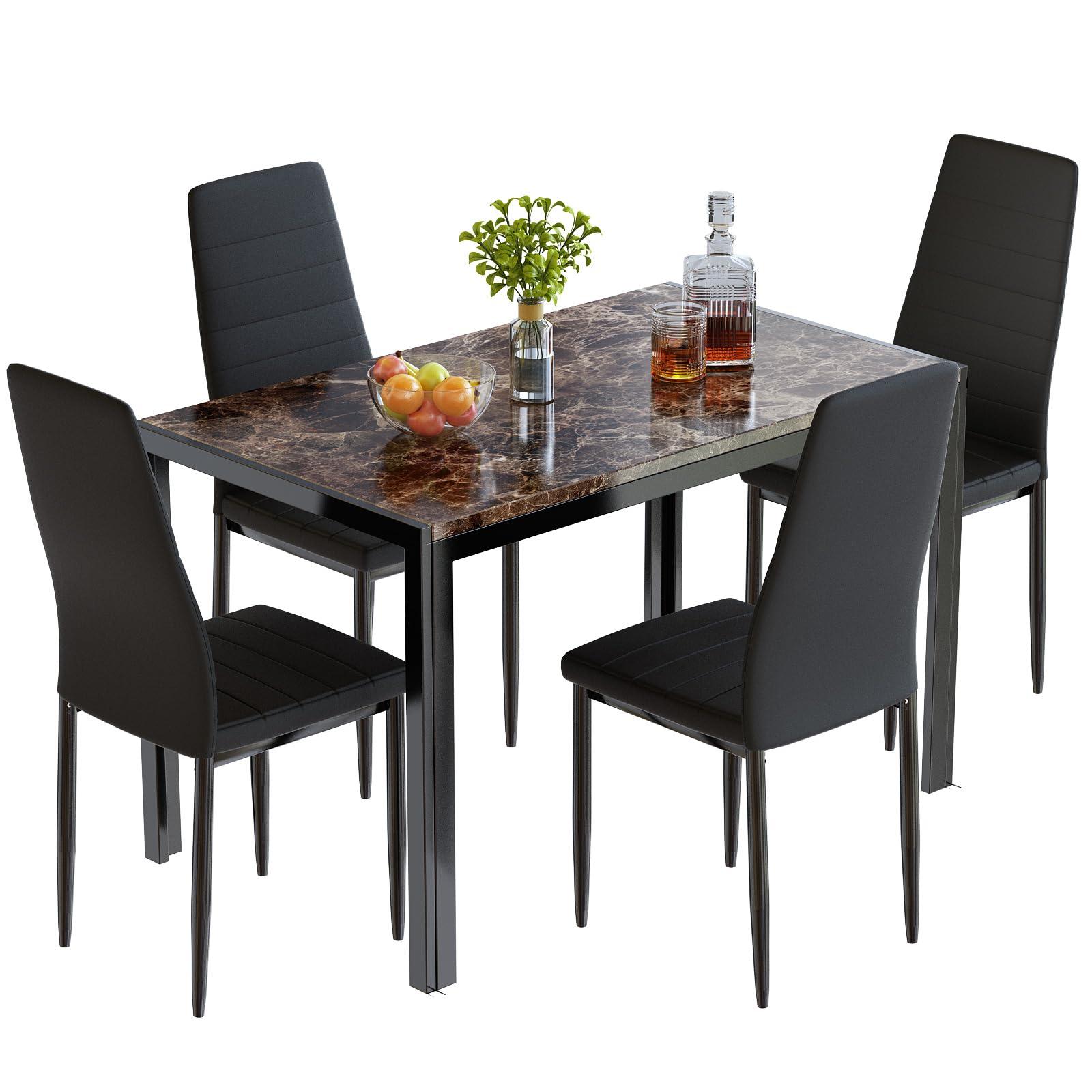 Imitation marble tabletop style, elegant touch, wear-resistant and heat-resistant. Simple and modern color design and matching, perfect for any decoration style in your home. This marble dining table can accommodate up to 4 people, and the sponge-padded PU cushion allows you to sit for a long time without feeling tired, which is perfect for family-style breakfast, lunch and dinner, drinking coffee and drinks with friends, working in a computer office, or playing with family and friends. In addition, this table is perfect for restaurants, bars and other commercial places.