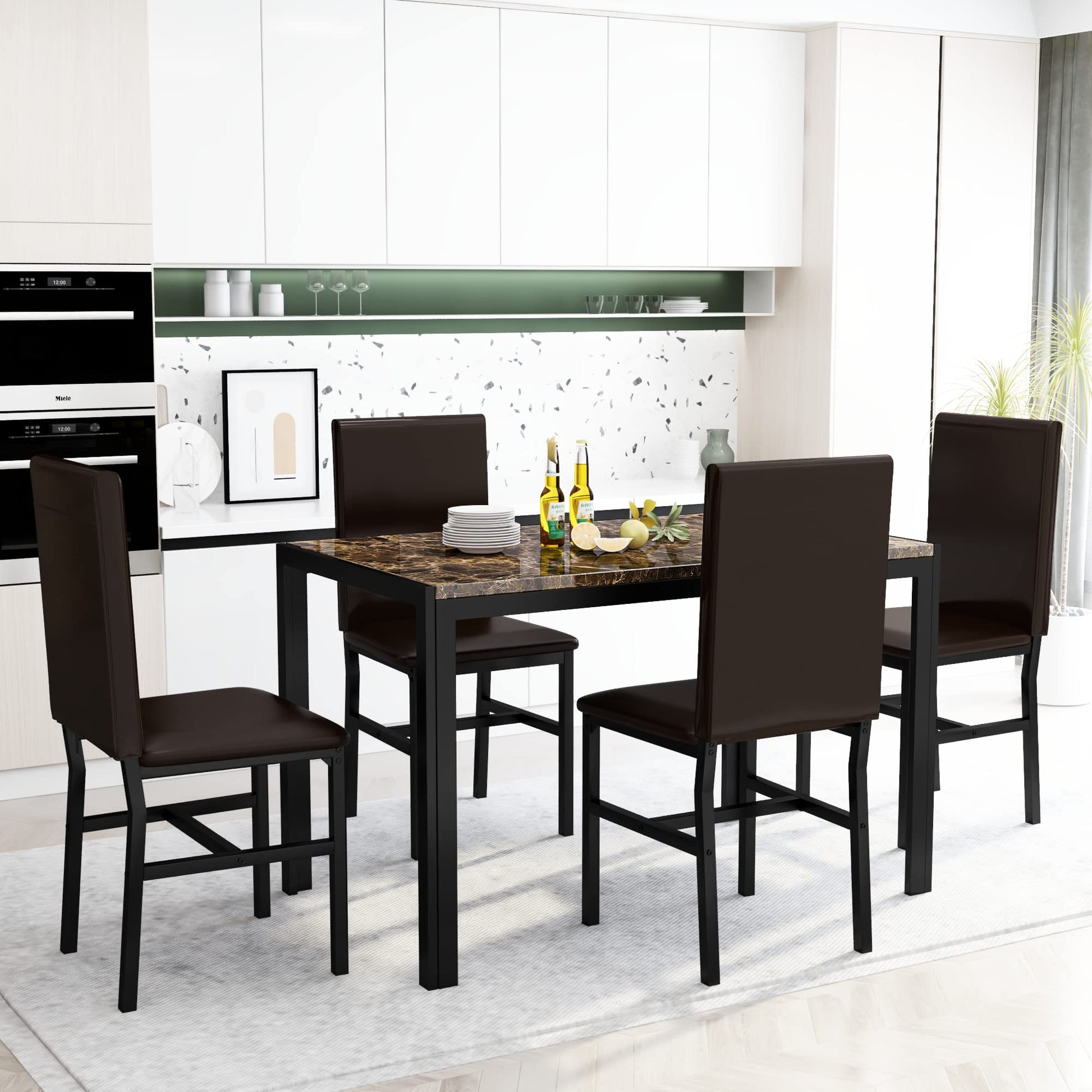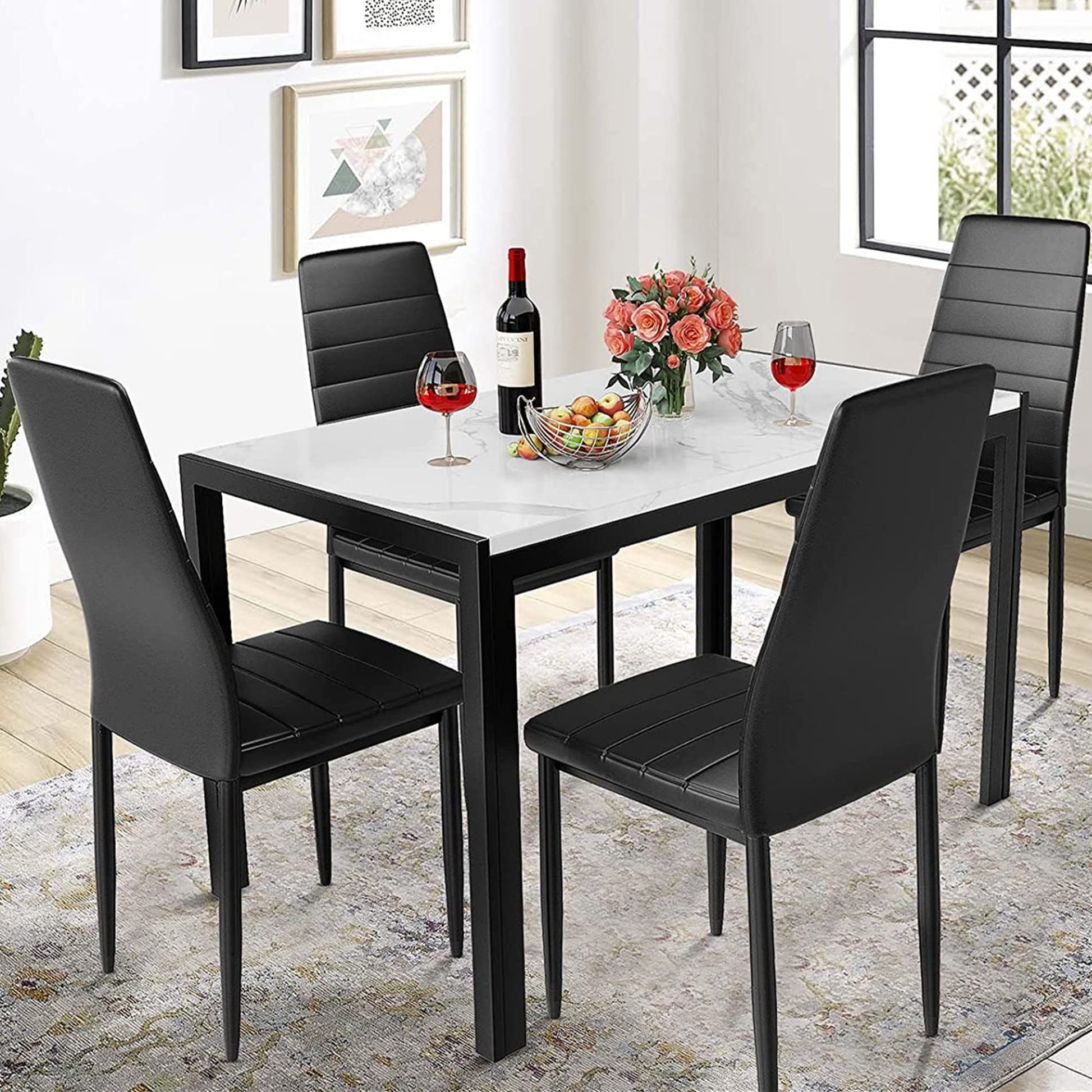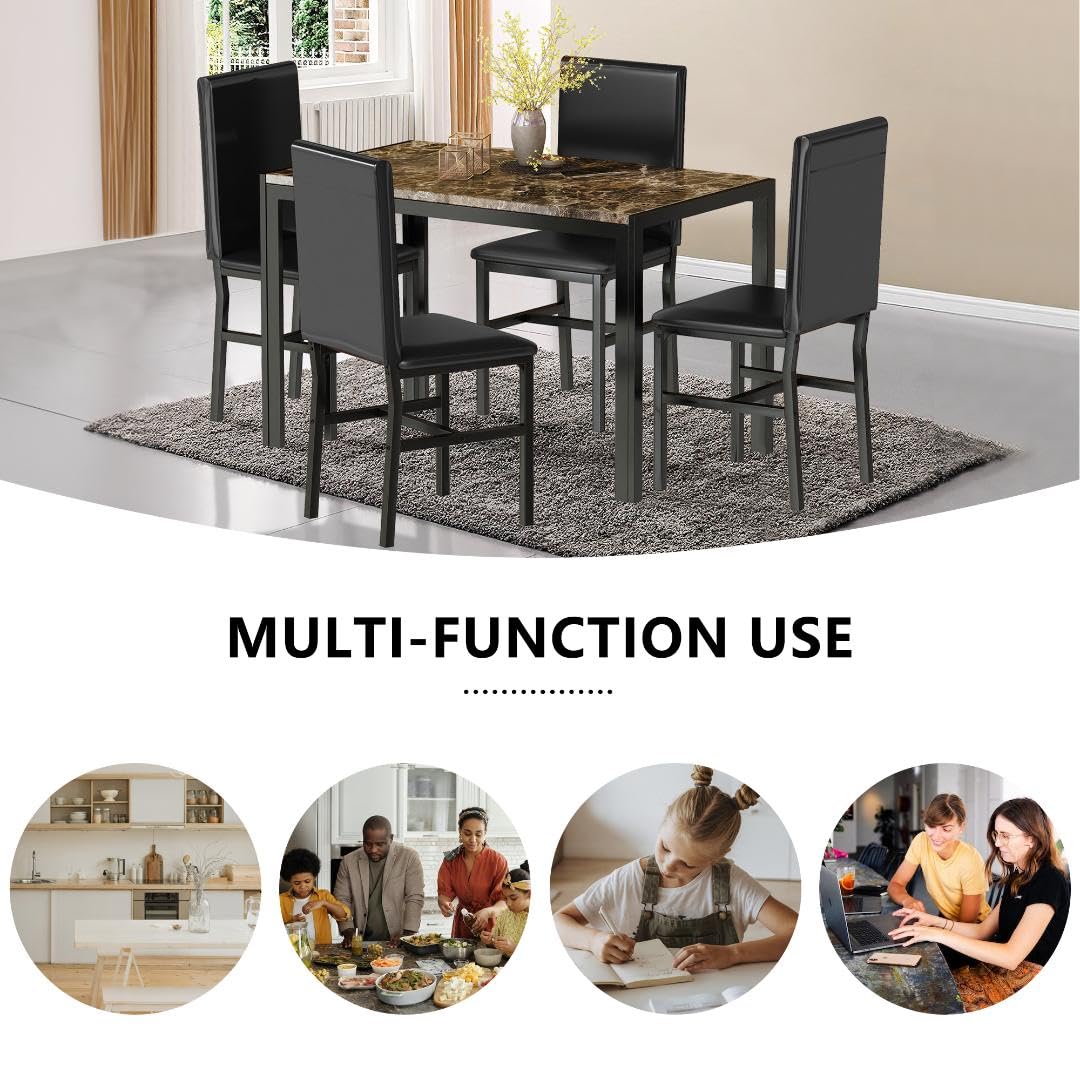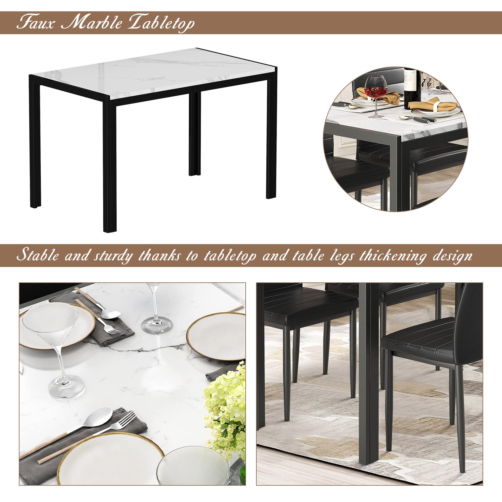 AWQM Marble Dining Table and Chairs for 4, 5-Piece Dining Set