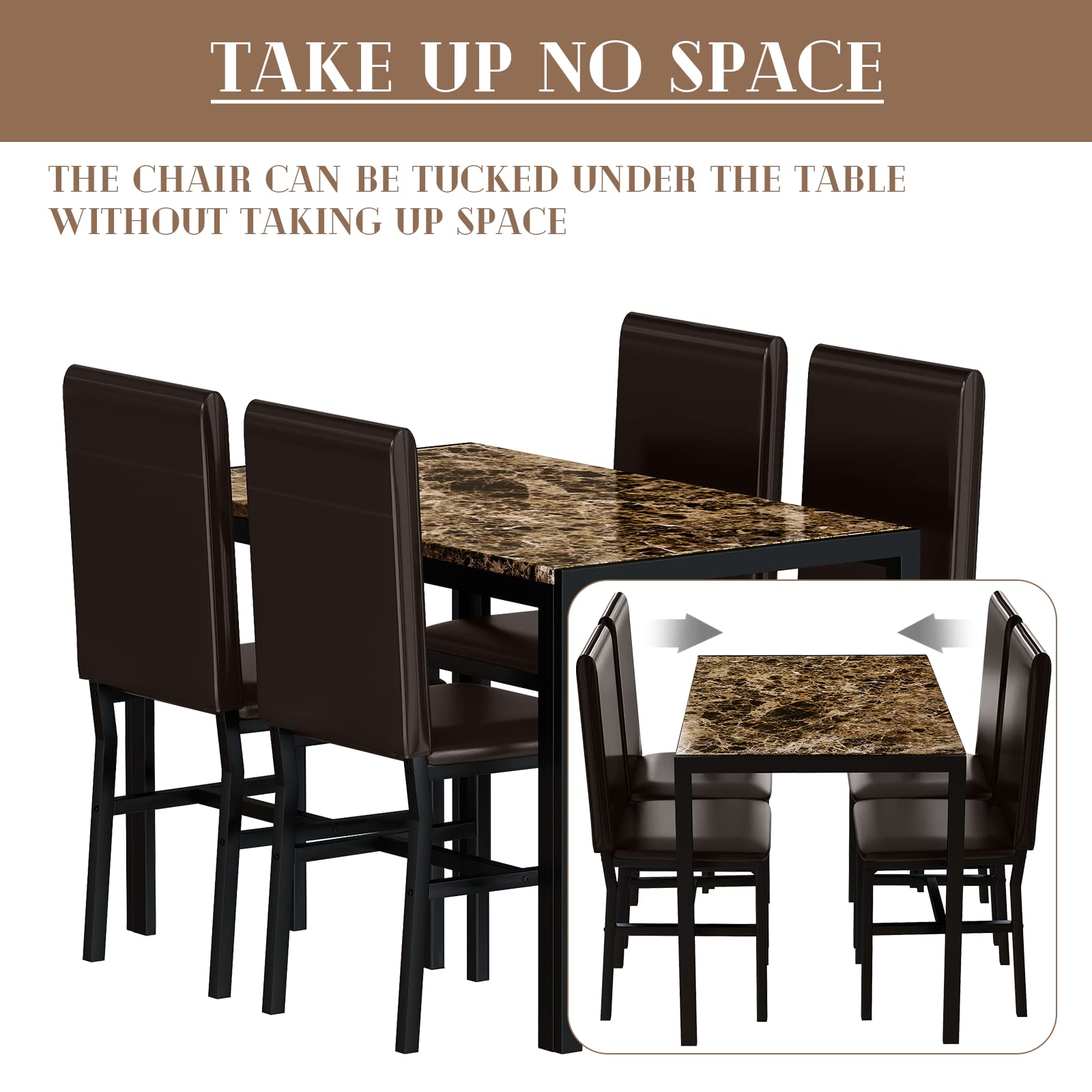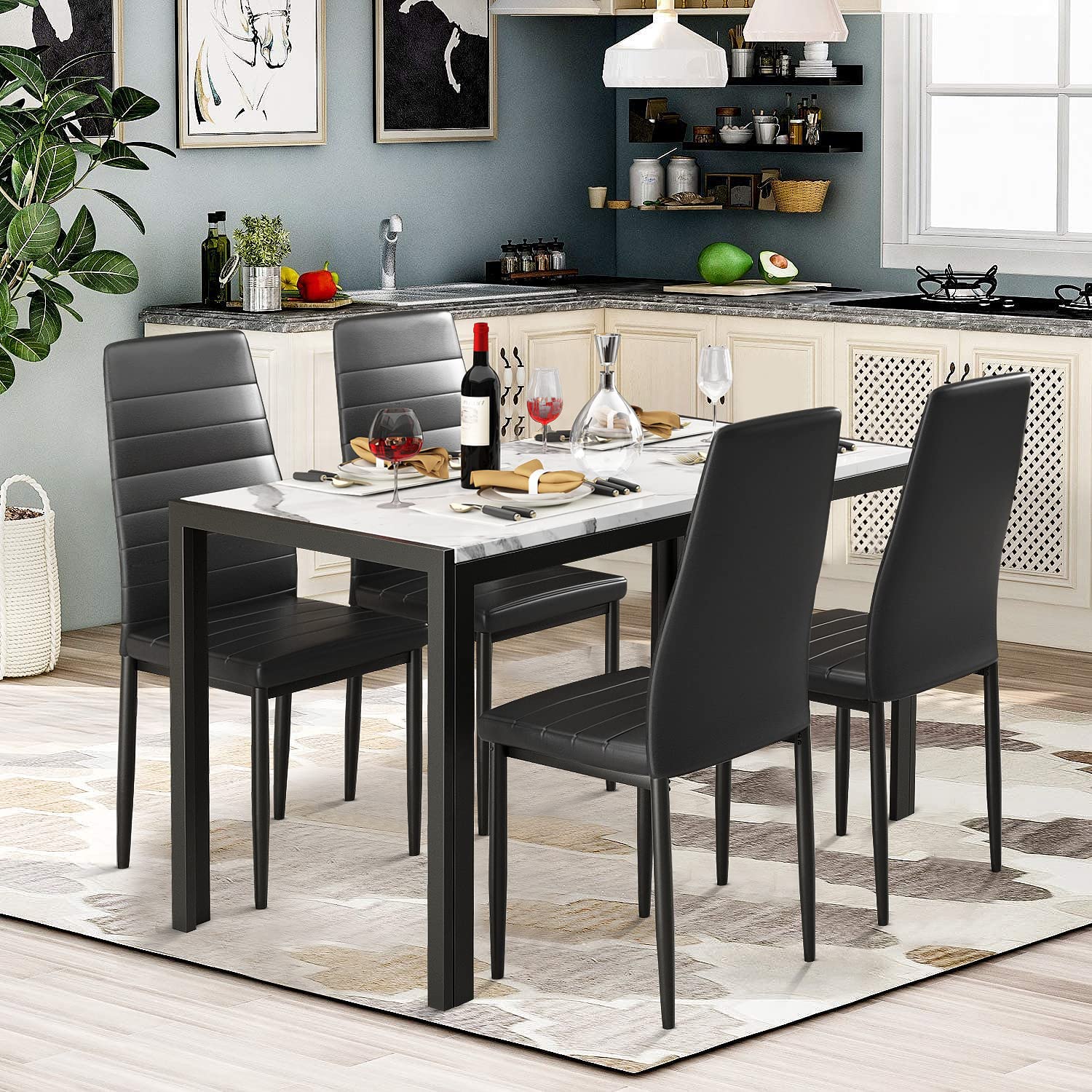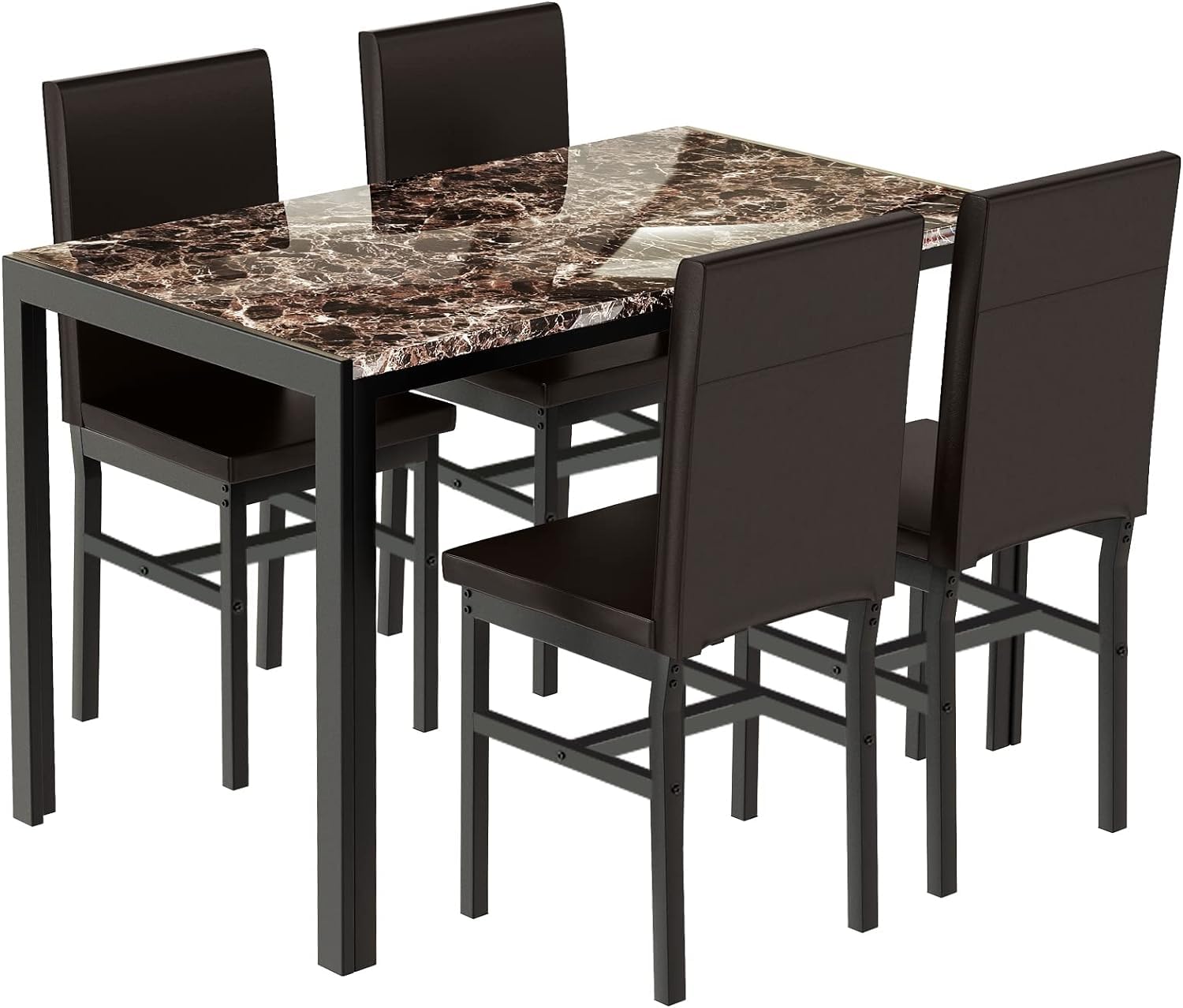 AWQM Marble Dining Table and Chairs for 4, 5-Piece Dining Set