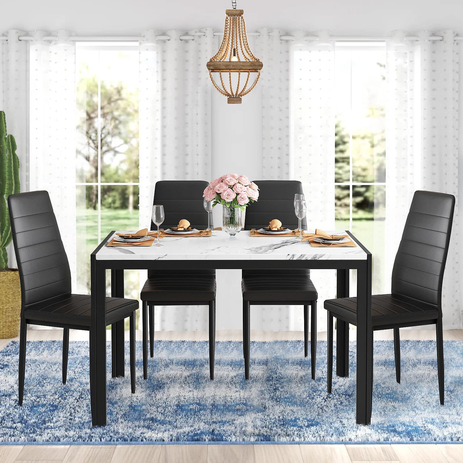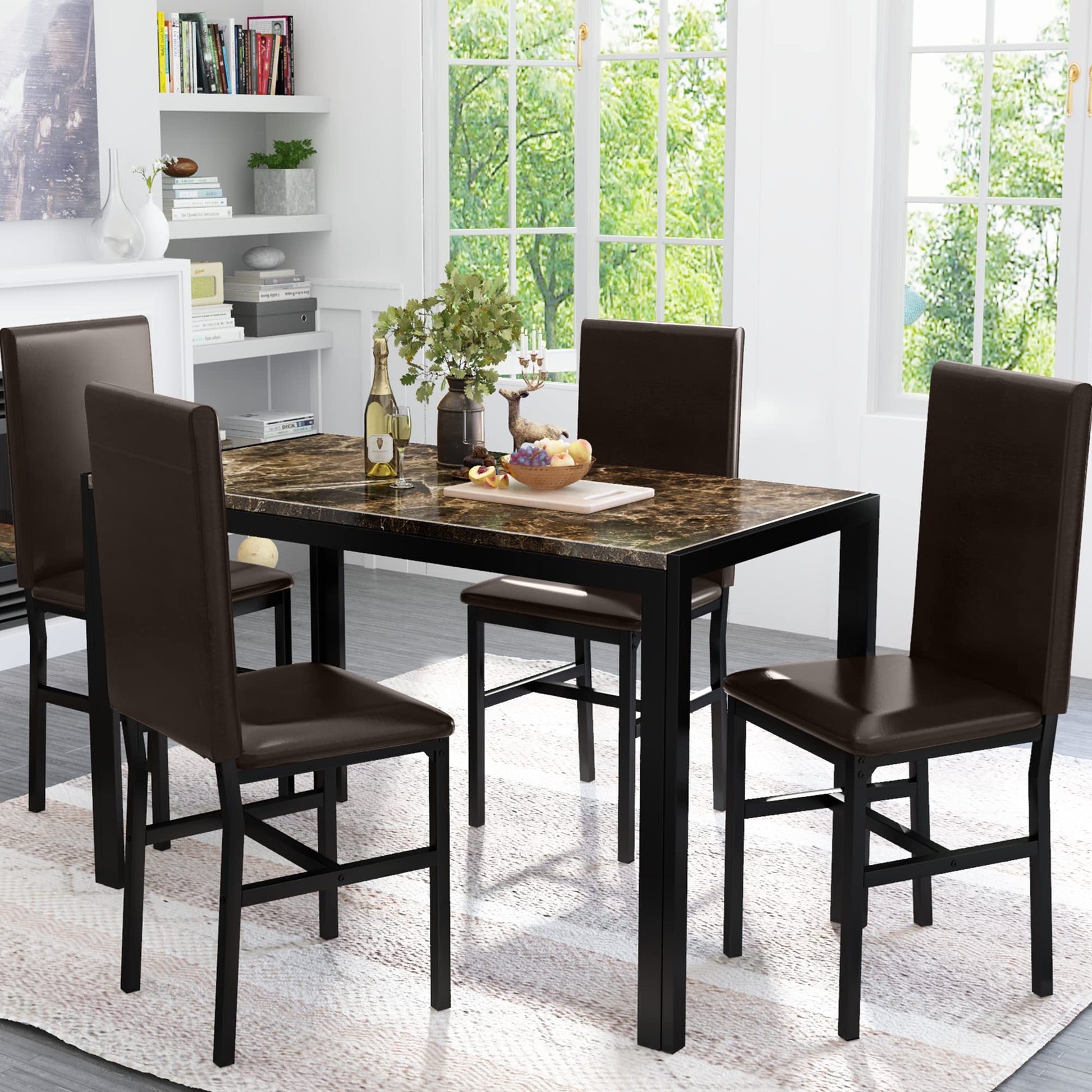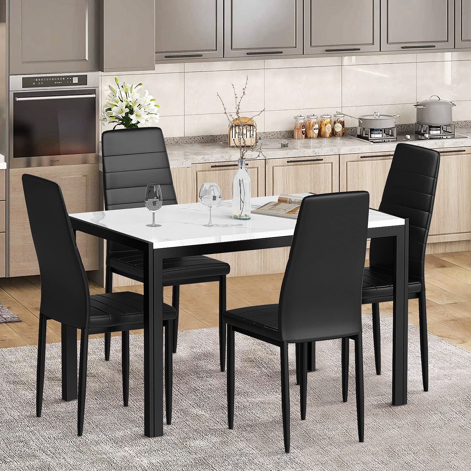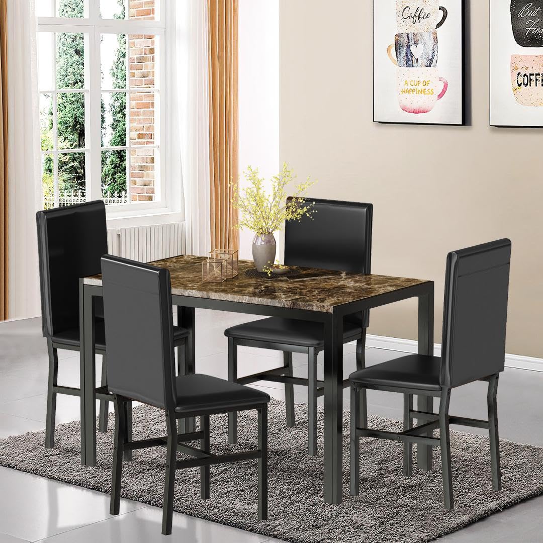 AWQM Marble Dining Table and Chairs for 4, 5-Piece Dining Set