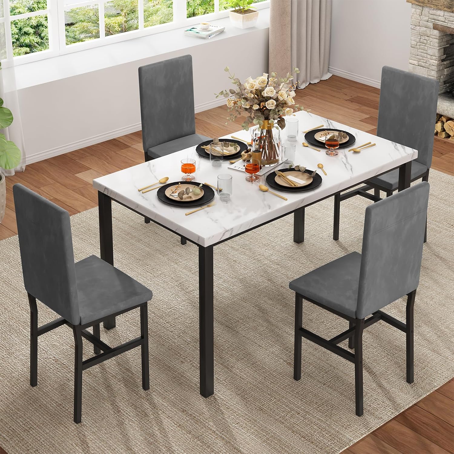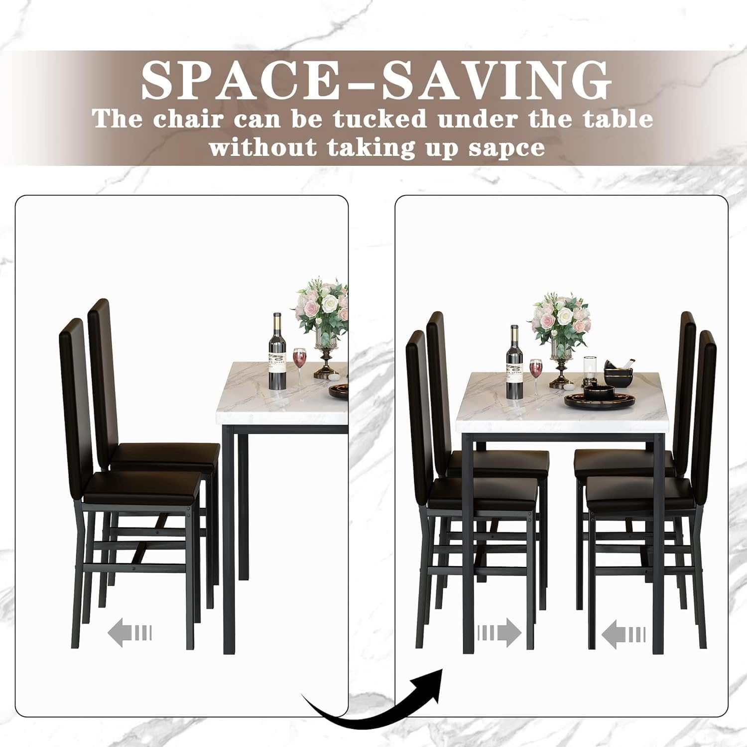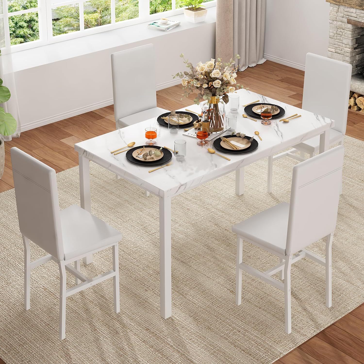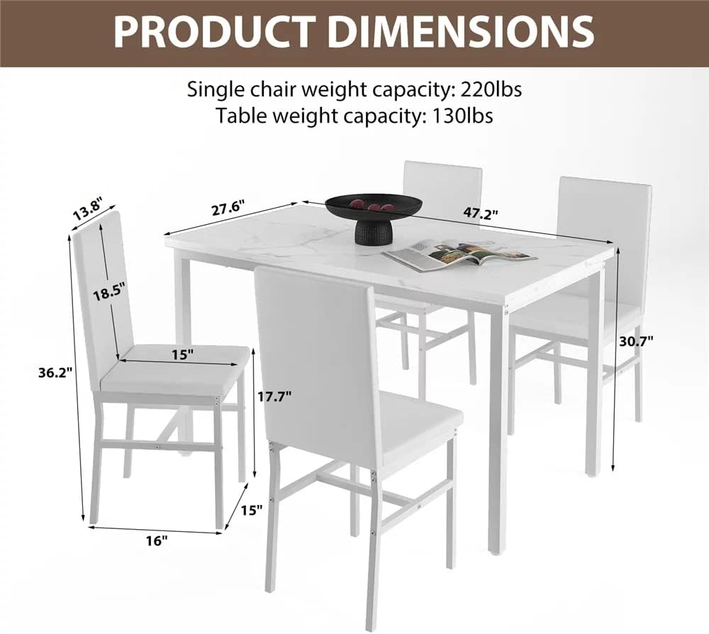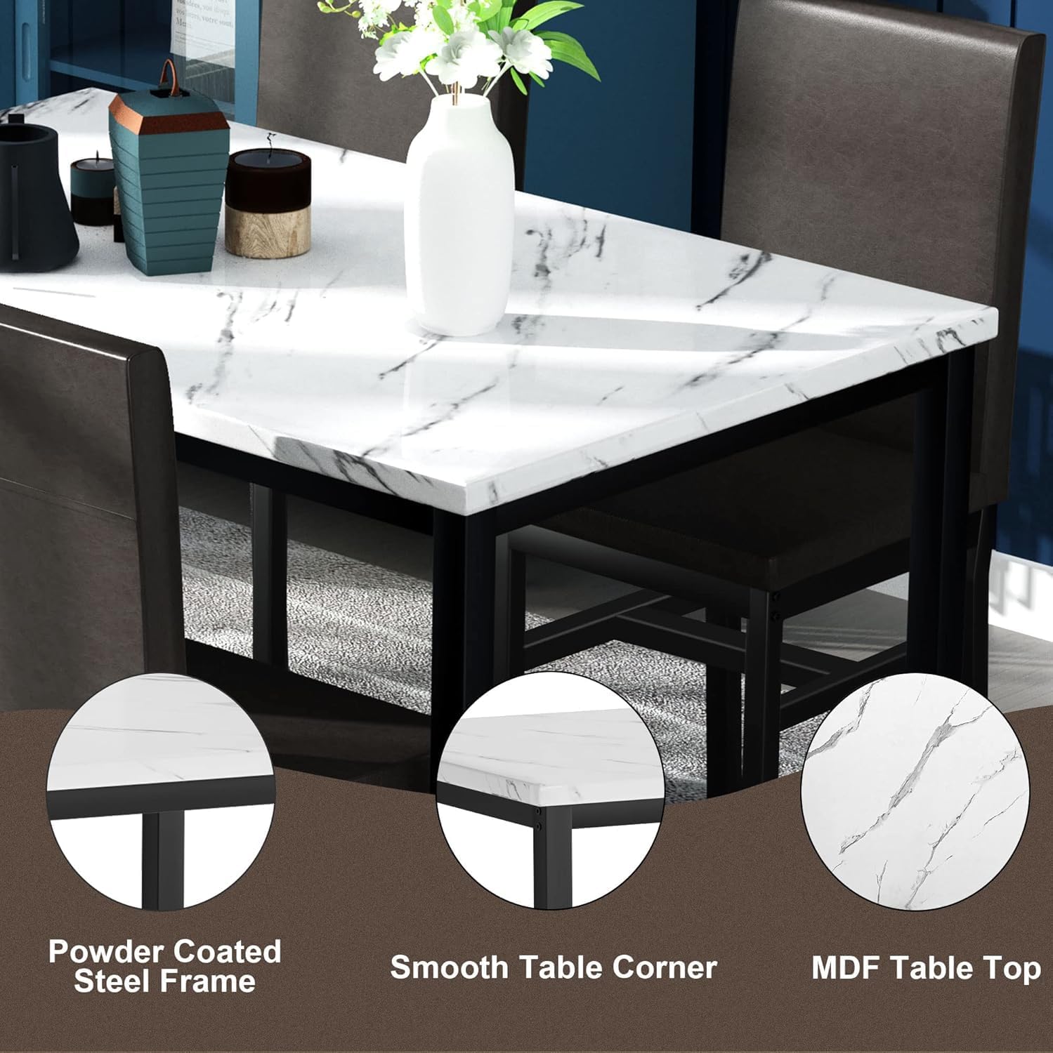 AWQM Modern Kitchen Marble Dining Table Set for 4