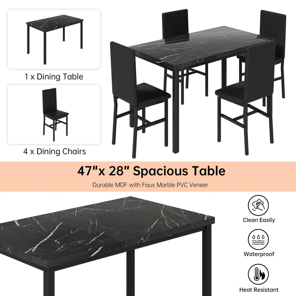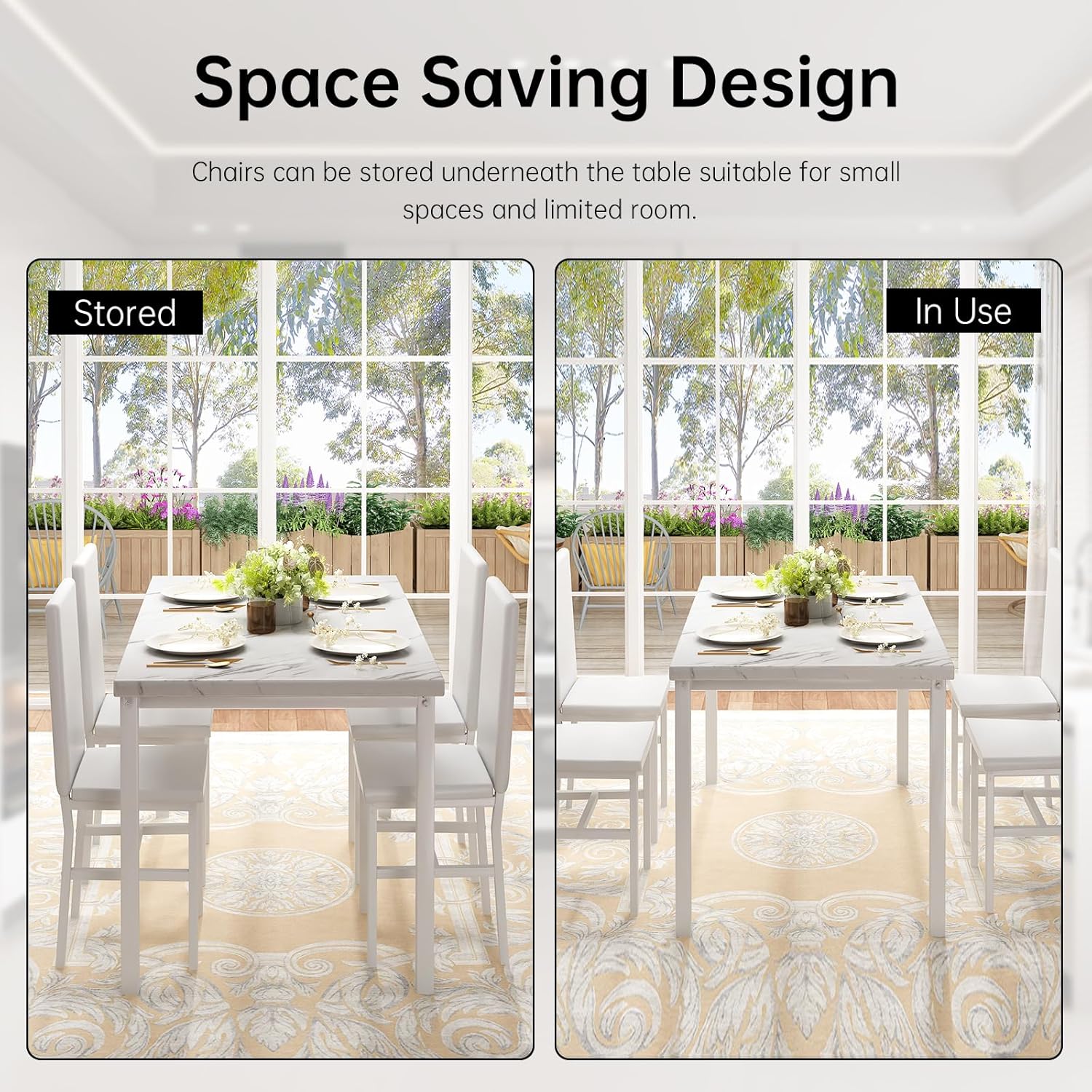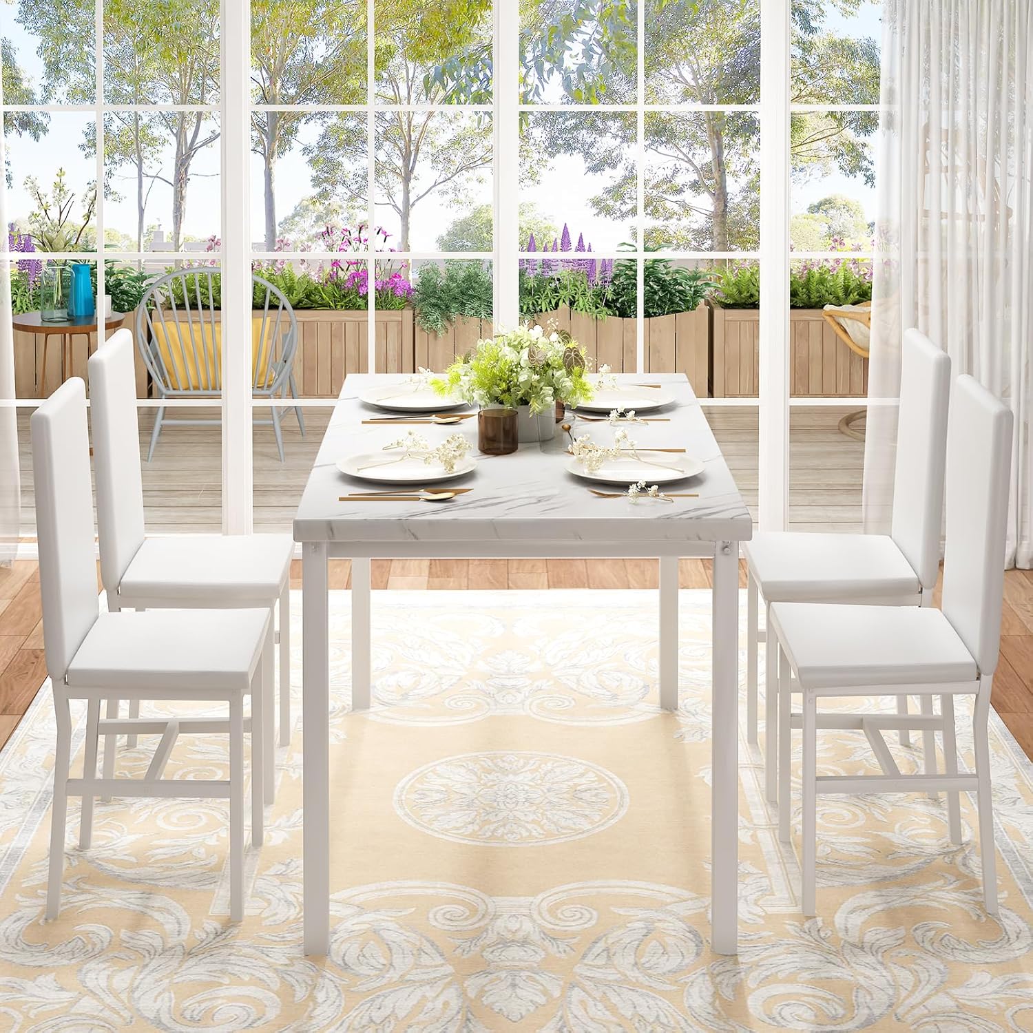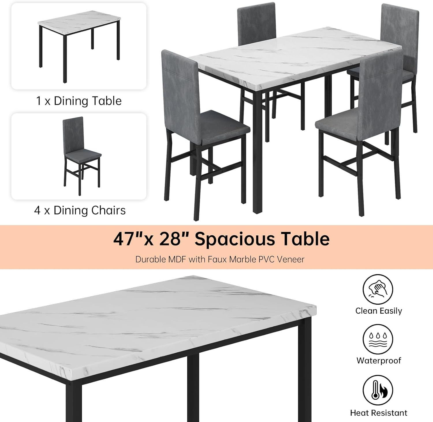 AWQM Modern Kitchen Marble Dining Table Set for 4