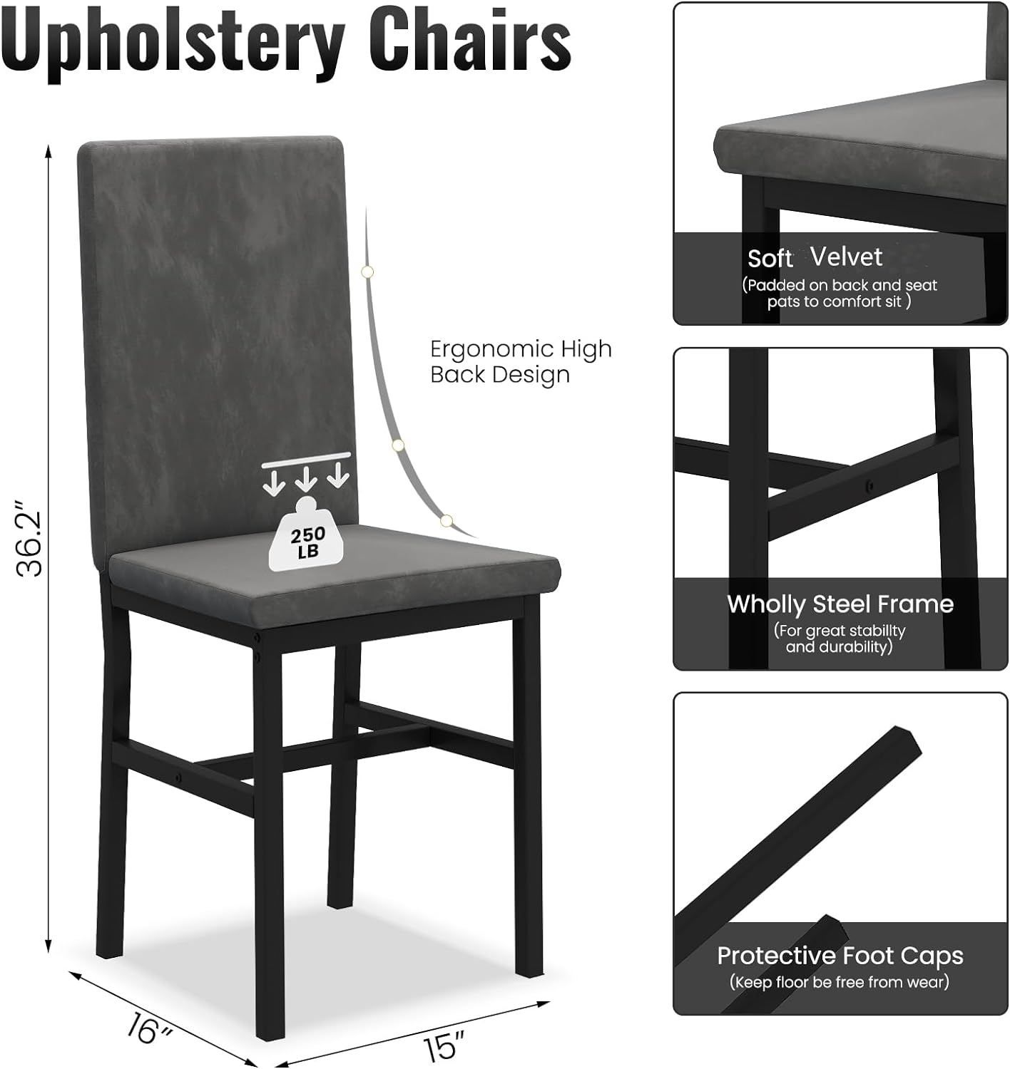 This 5-piece faux marble dining table and chair set features a durable steel frame with an easy-to-clean surface. The chair cushions are made of soft velvet, which is comfortable and resilient. The high backrest design enhances stability, and the unique H-shaped structure saves space, making it suitable for families with children and easy to assemble.