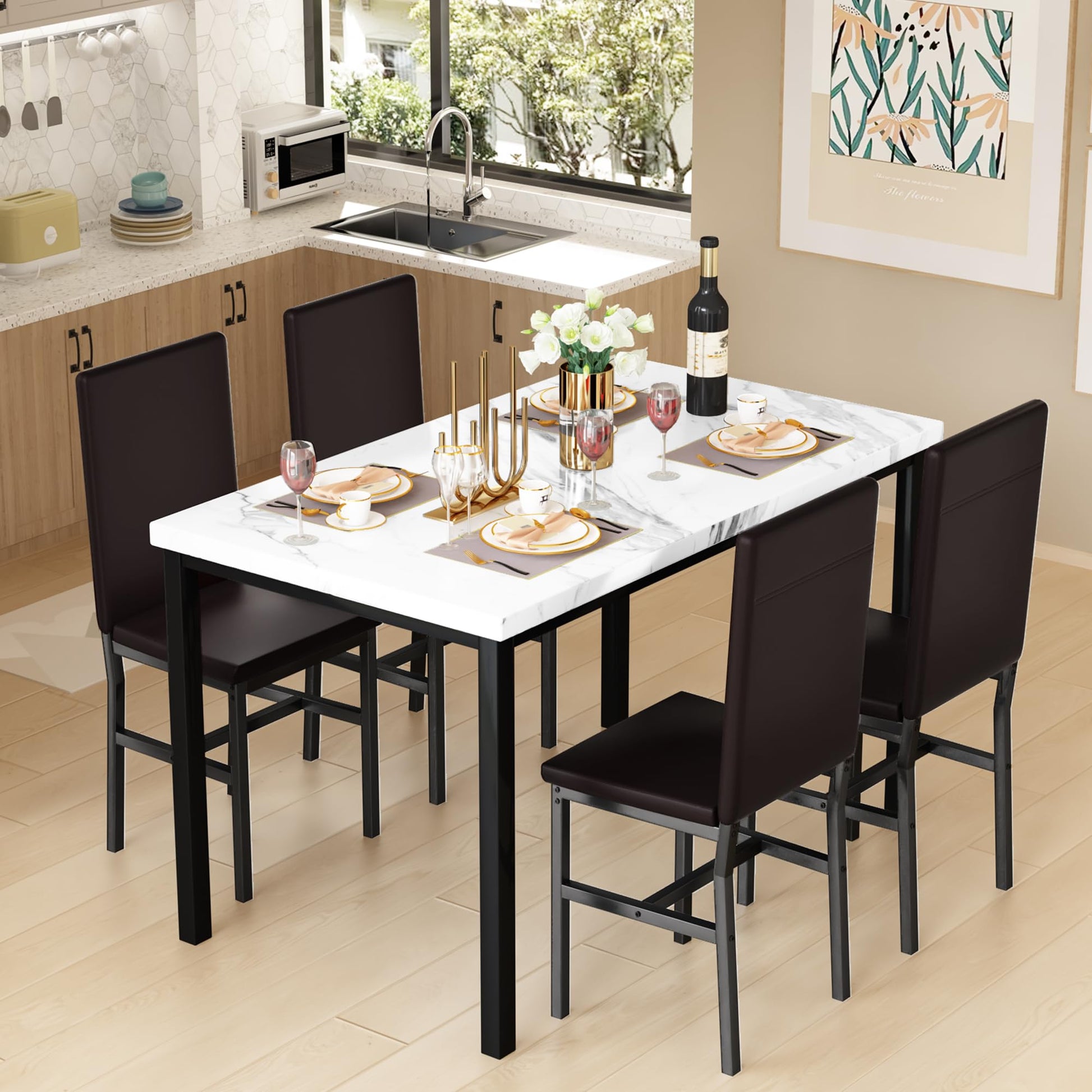 AWQM Modern Faux Marble 4 Person Dining Table Set, Space Saving 5 Piece Dining Table Set.
