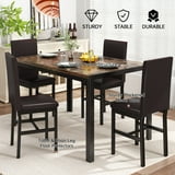 - Comfy Dining Table Set for 4: Includes four black dining chairs with soft cushions and durable leather, ensuring extra comfort. The solid metal frame offers durability for years of enjoyment, while the extra padded backrest enhances comfort