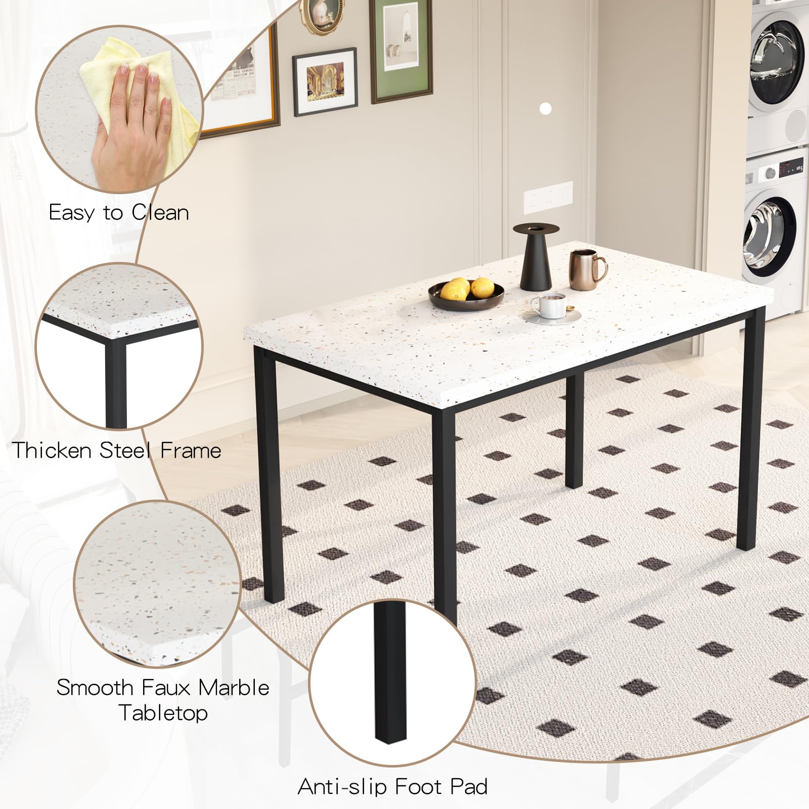 - 【Modern Appeal with Black Metal Accents】Embrace contemporary chic with the set's stylish black metal legs. Seamlessly integrated with the marble-style tabletop, it creates a striking visual contrast that complements modern interiors effortlessly.