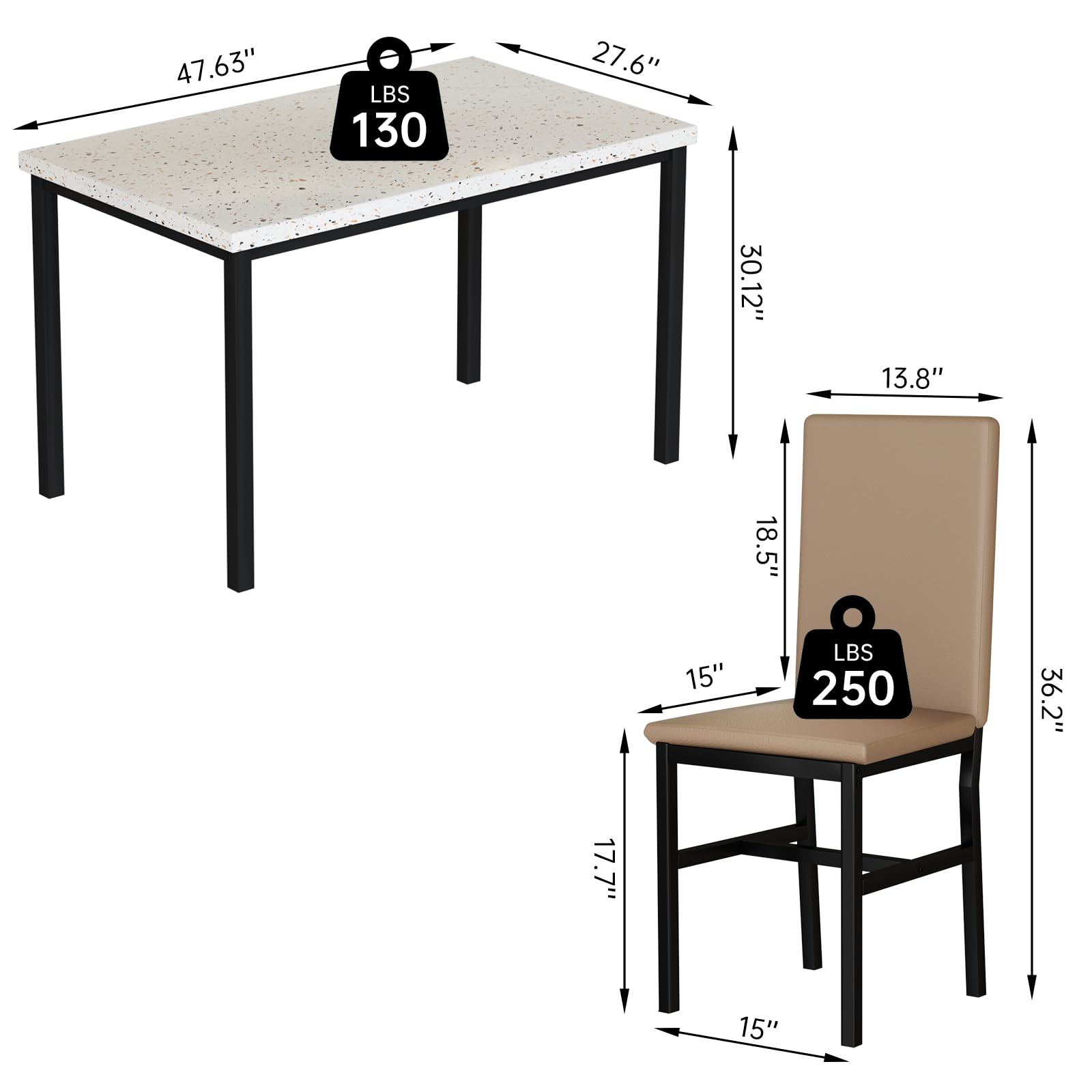 - 【Impressive Dimensions for Gatherings】AWQM s dining set includes a spacious table (47.63" L x 27.6" W x 30.12" H) and four chairs (15" L x 16" W x 36.2" H), ideal for accommodating family and friends comfortably. Perfect for kitchen, dining, or breakfast areas.