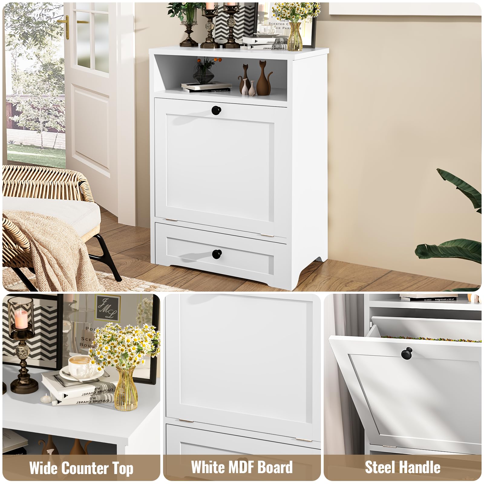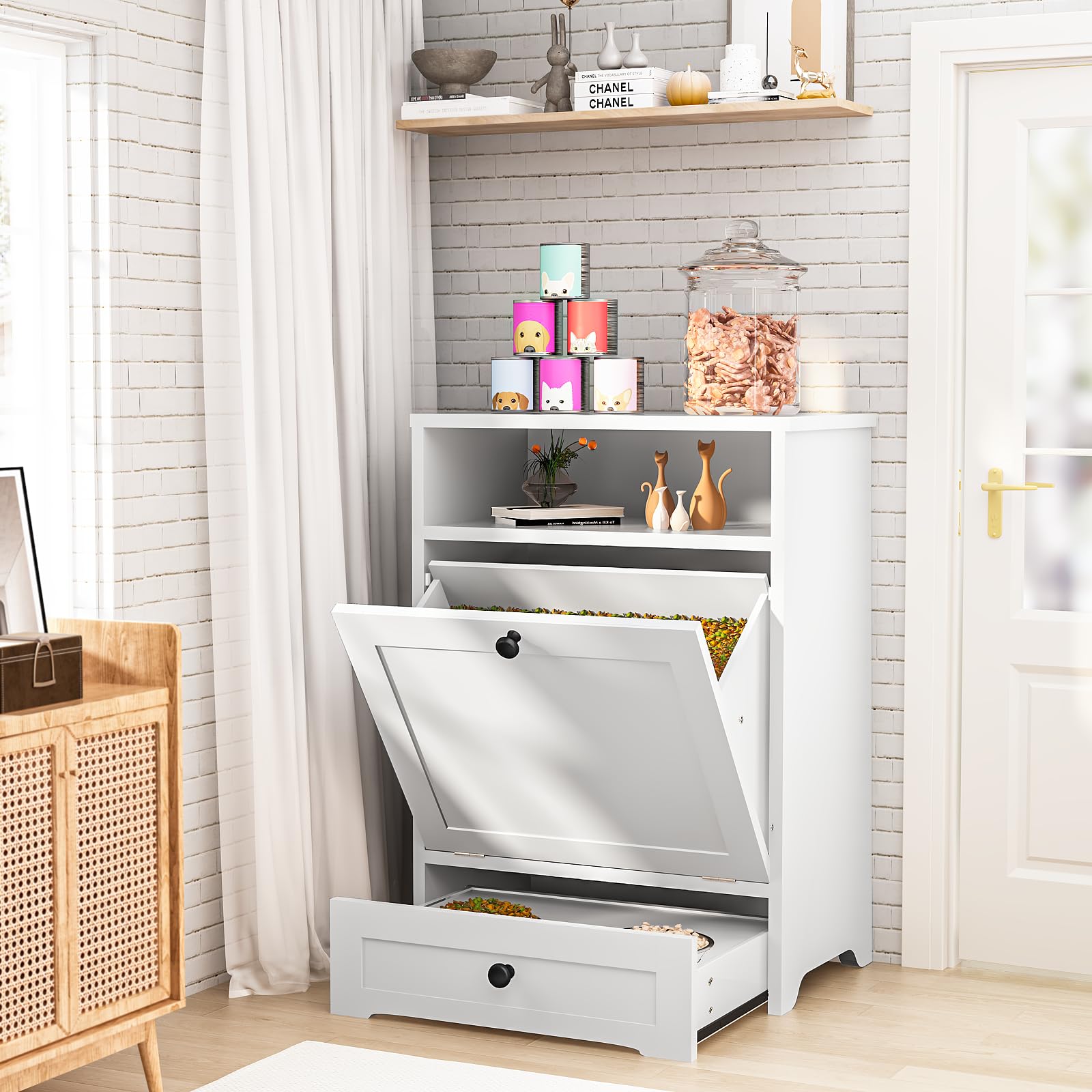 - ANTI-TOPPLING DEVICE: The dog food storage cabinet with anti-toppling device to increase the stability and prevent your pets or kids from being hurt. You can place it in your living room, bedroom or balcony to use as a side or end table