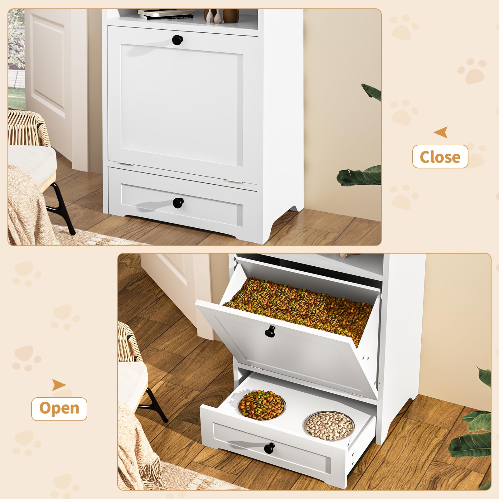 - STURDY CONSTRUCTION& SAFE WEIGHT CAPACITY: Made of high quality MDF board and metal handles, the pet feeder station is durable enough for daily use. Our dog food feeder storage cabinet top load up to 110 lbs, pet food storage container up to 44 lbs