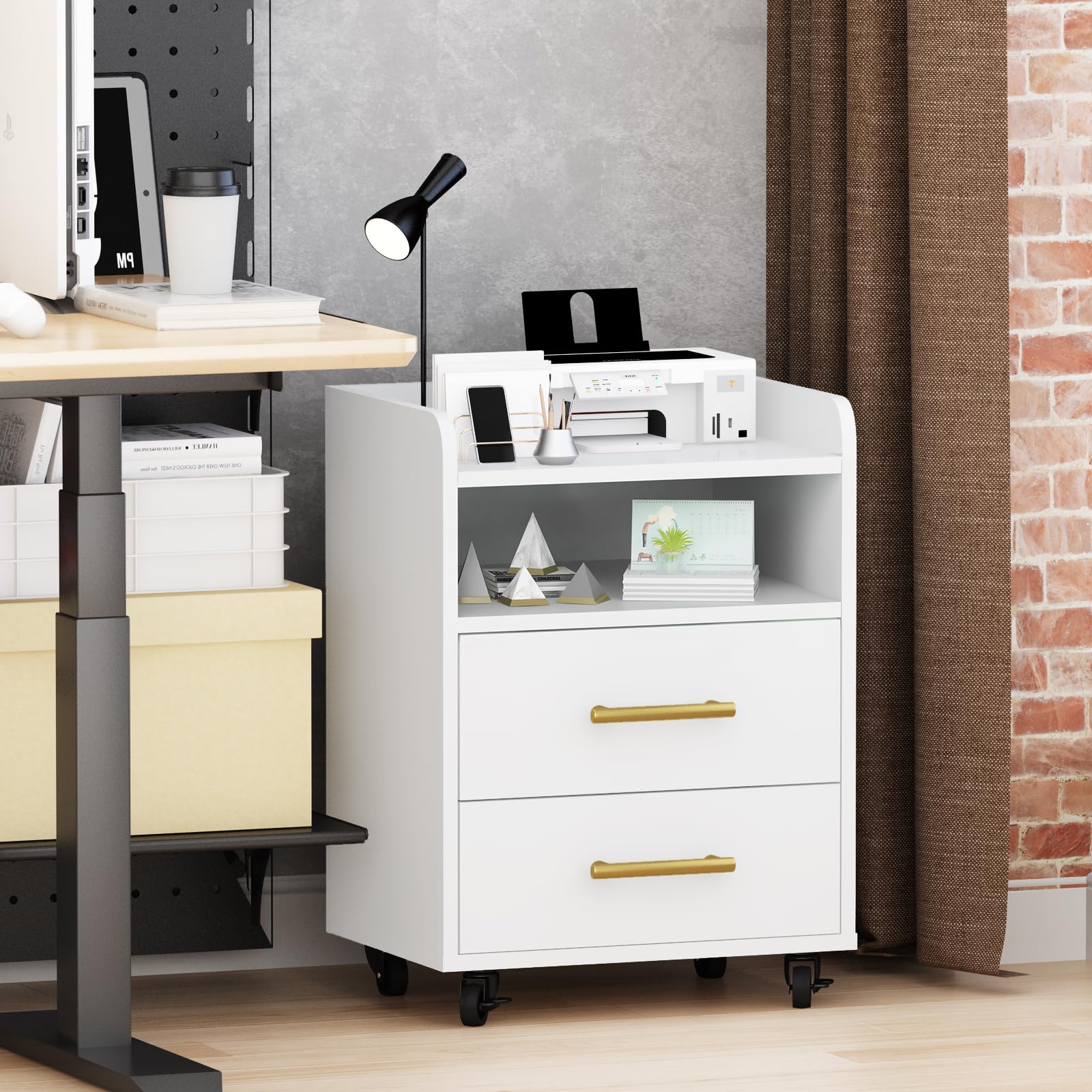 The simple and elegant white cabinets with gold handles make the drawer cabinet adapt to various decoration styles and are very suitable for placement in homes and offices. The reasonable size is very suitable for placing on the side or under the table.