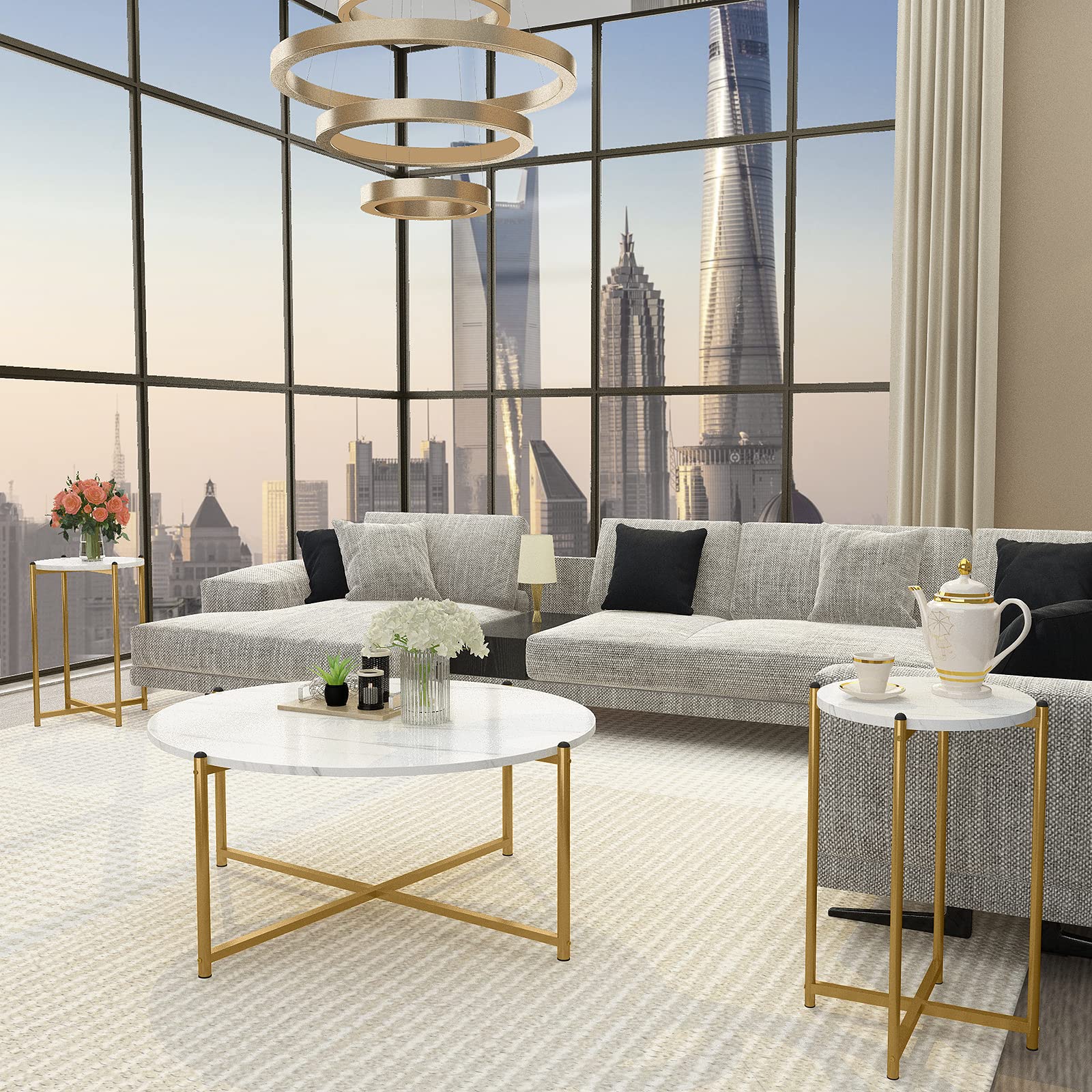 AWQM Faux Marble Coffee Table Set of 3, 1 Coffee Table and 2 Side Tables