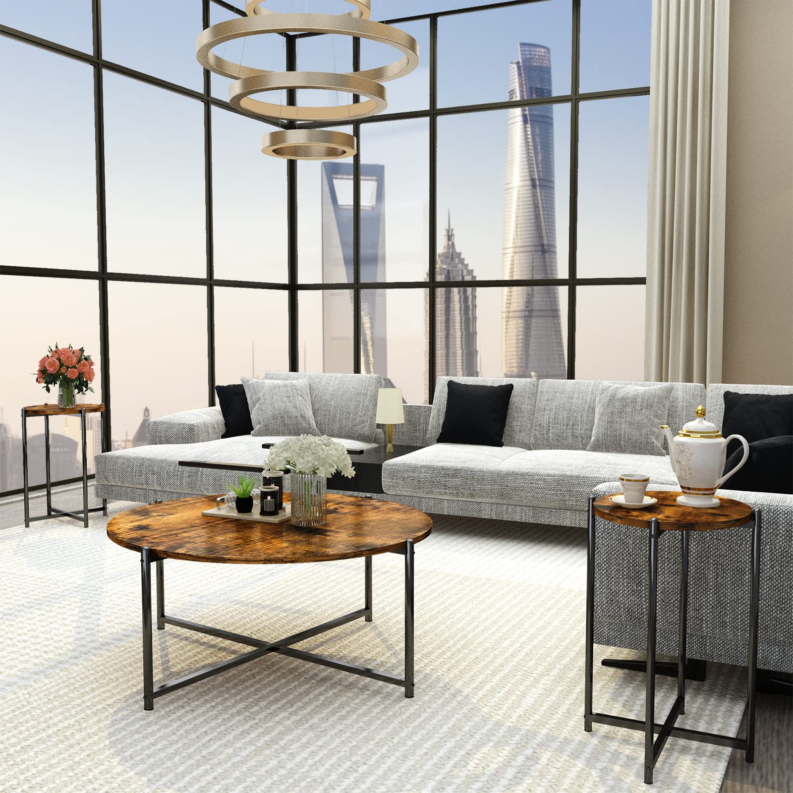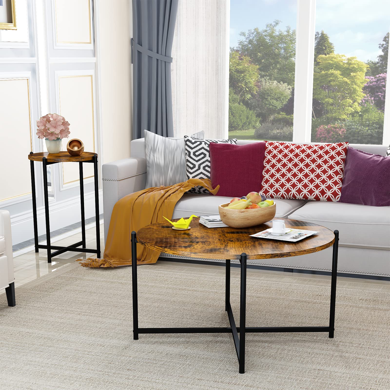 This round coffee table features an X-shaped base structure to ensure stability, and four adjustable metal feet also work well to prevent scratching the floor. With a smooth surface and rounded corners, it won't get hurt when bumped.