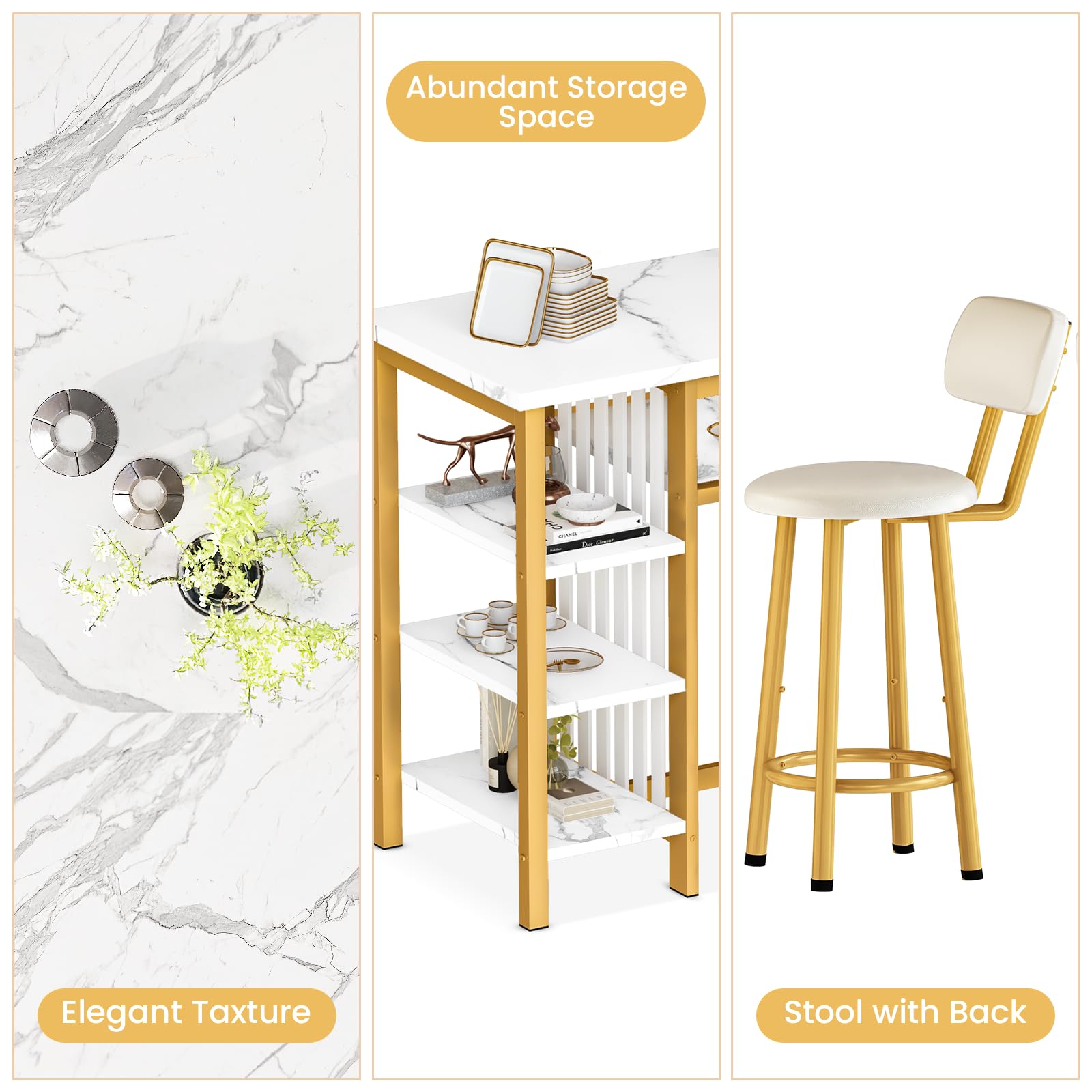 This table set is very stylish and works great for my sister��s new place.  The white finish and the marble combined give it a great style without being over-the-top, so it matches the other pieces in her place very well.