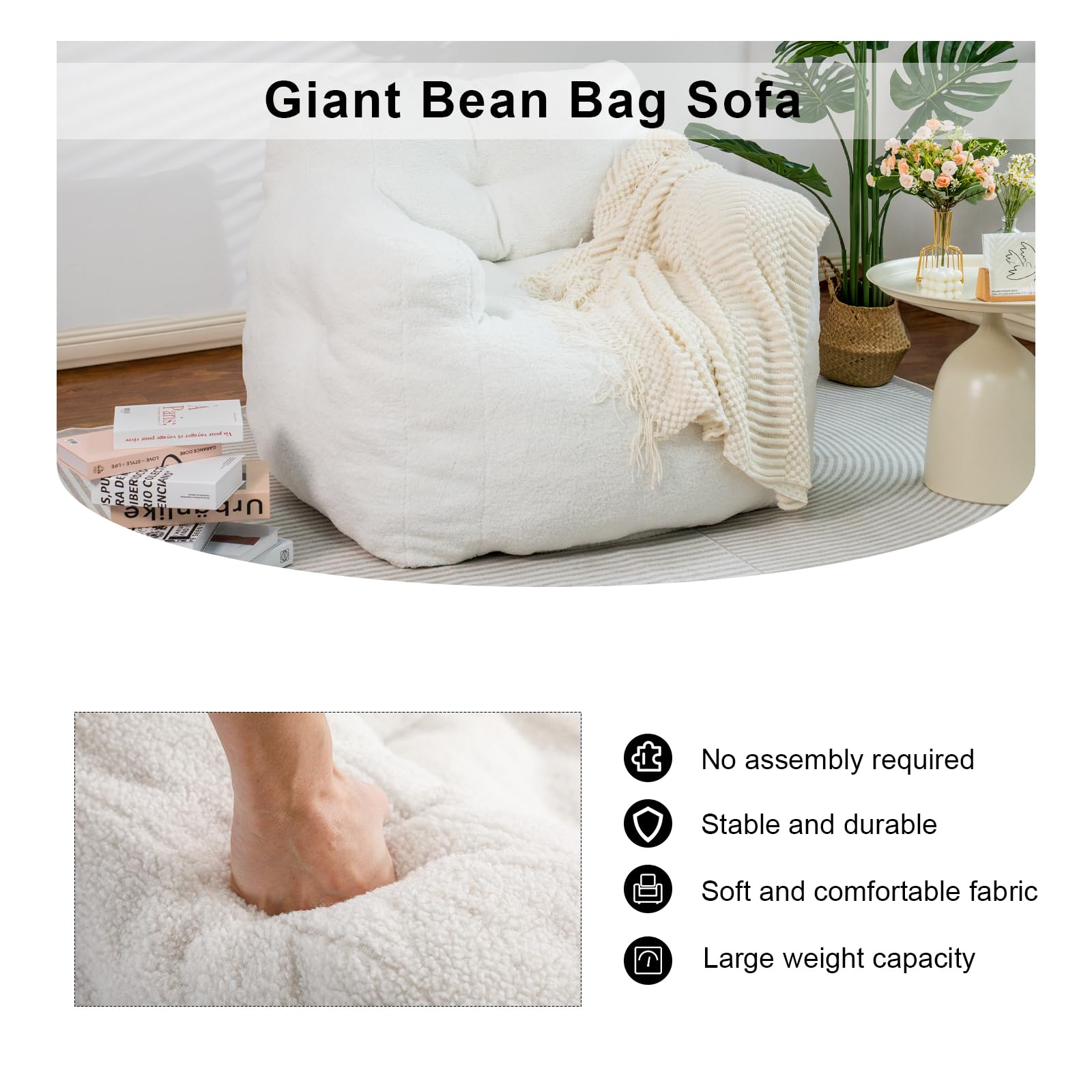 - High-quality Jumbo Bean Bag Chair: Giant bean bag sofa cover made of high-quality, skin-friendly fluffy faux fur. The giant bean bag sofa is filled with a high-resilience sponge block, which is more comfortable to sit on. The foam bean bag chair is very durable and can maintain its shape during a long period of use.