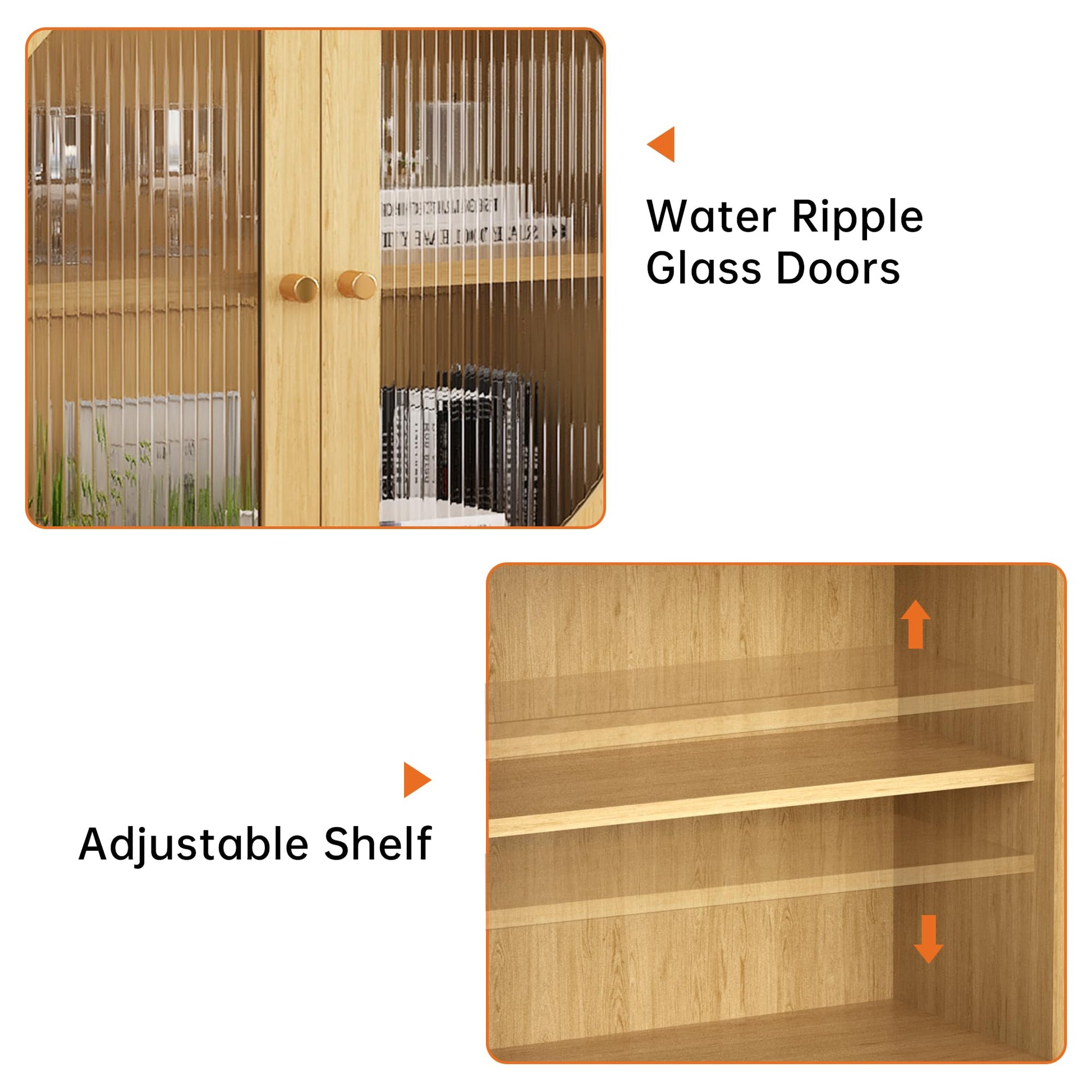 - 【SIDEBOARD BUFFET CABINET】-The sideboard cabinet designed with corrugated glass two door, translucent and artistic. Optimize indoor lighting and increase interior hazy beauty. Visual lift the floor height to alleviate the depression of small space.