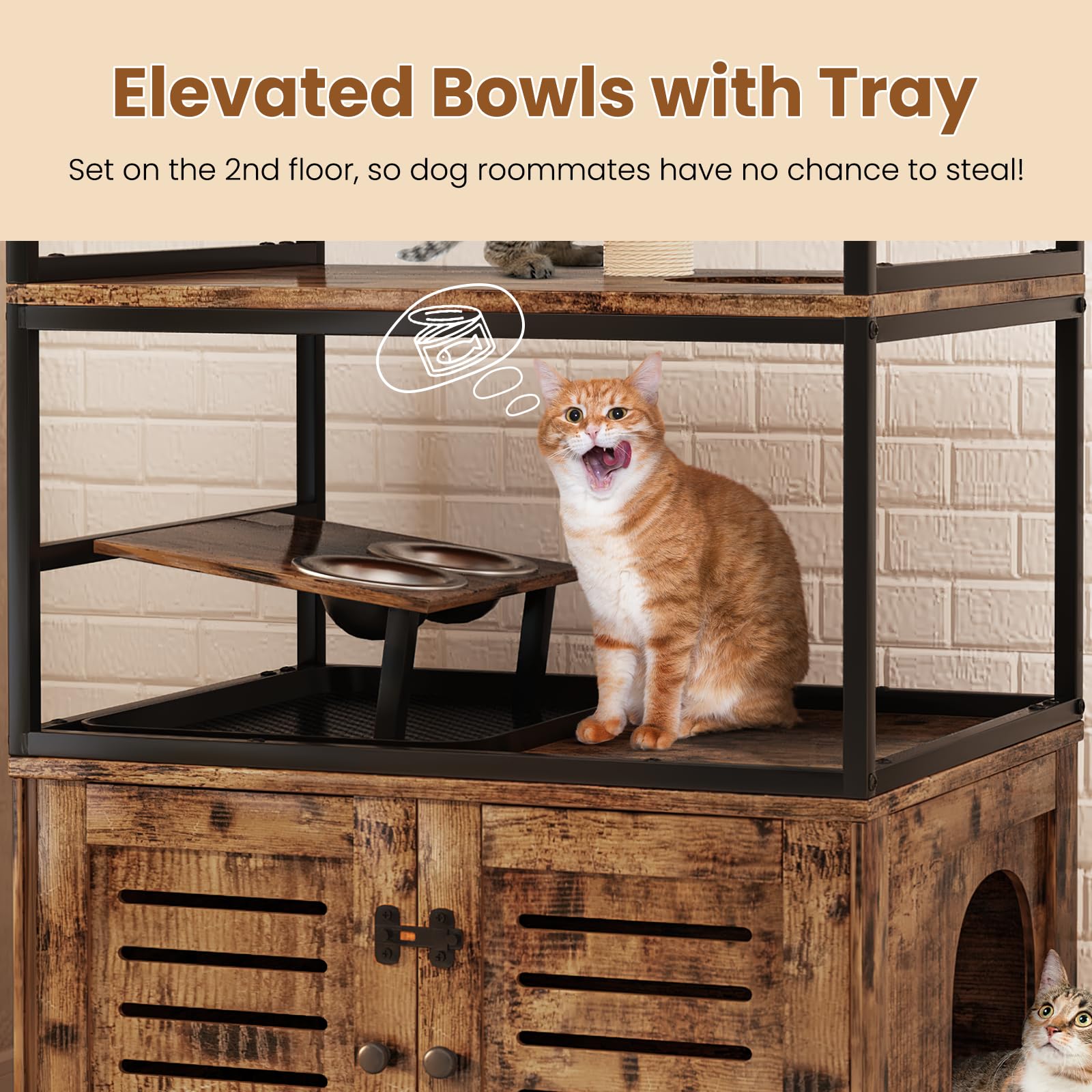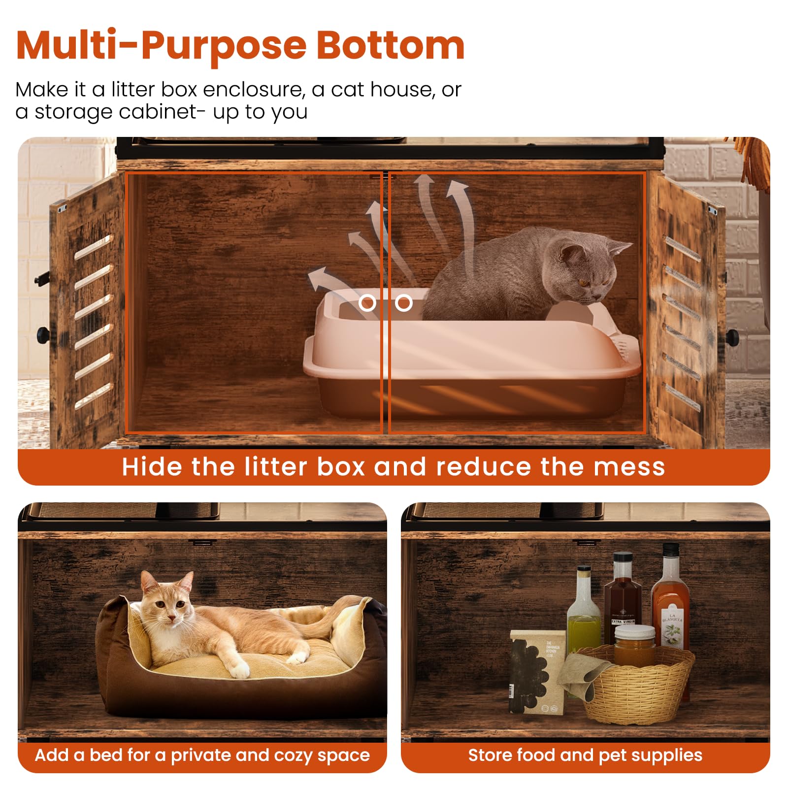 Put a cat litter box in the cabinet below, your kitty will have a private toilet, less odor in the home, and the partition design provides your cat with a space to hide and defecate easily.