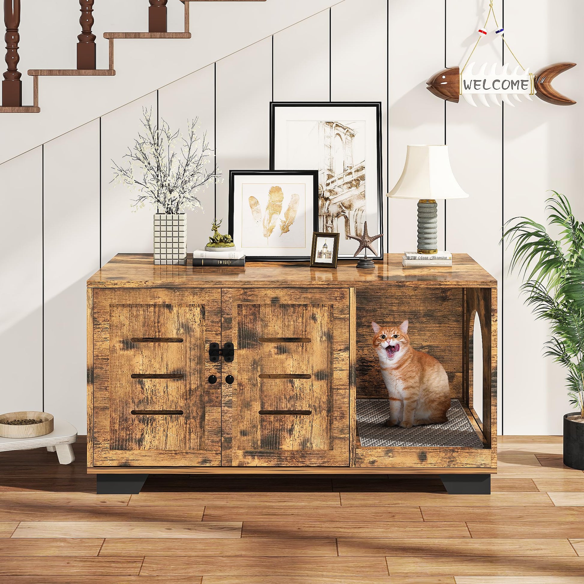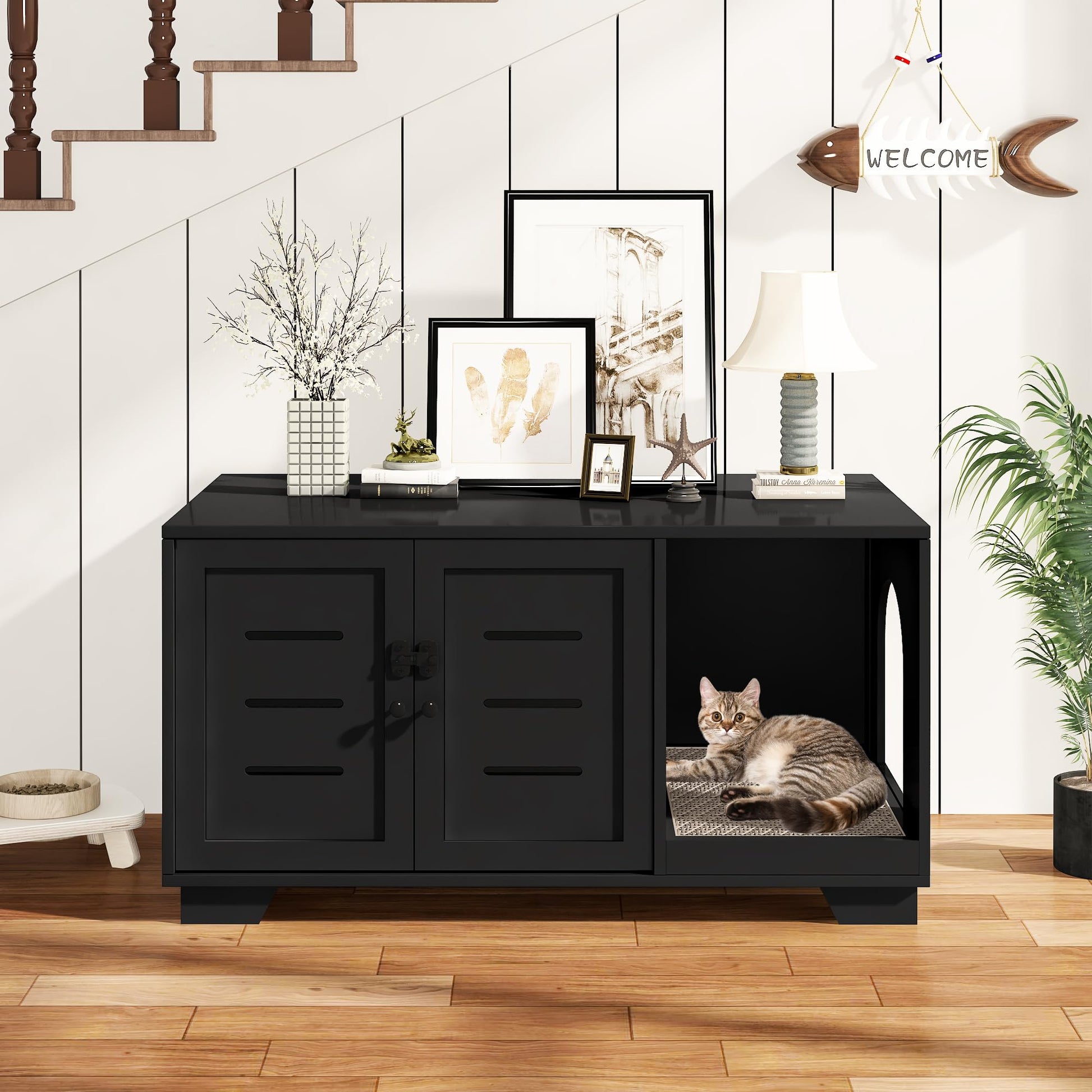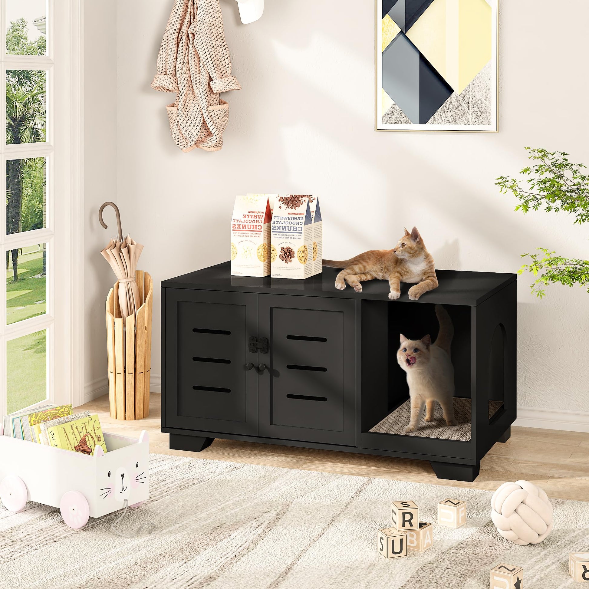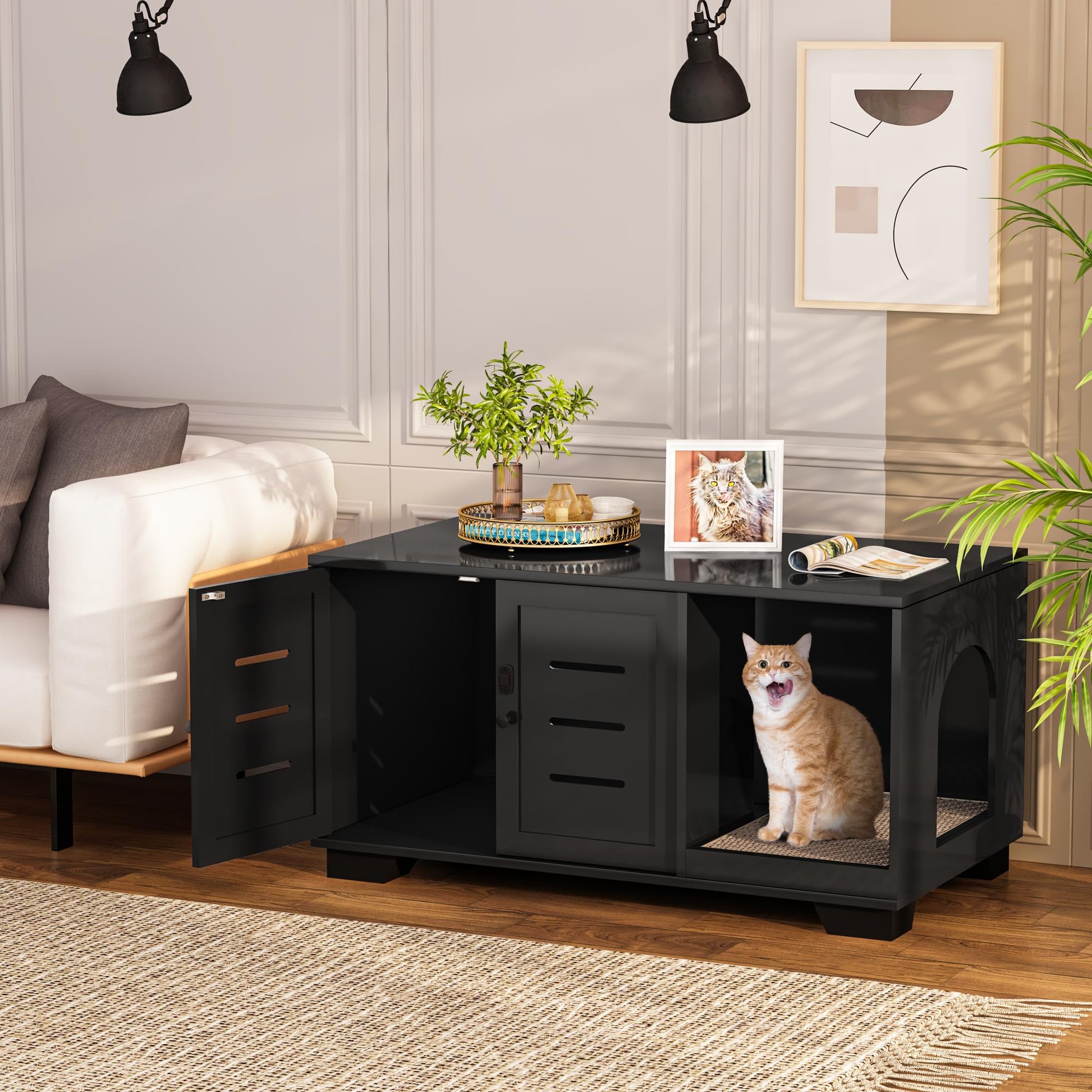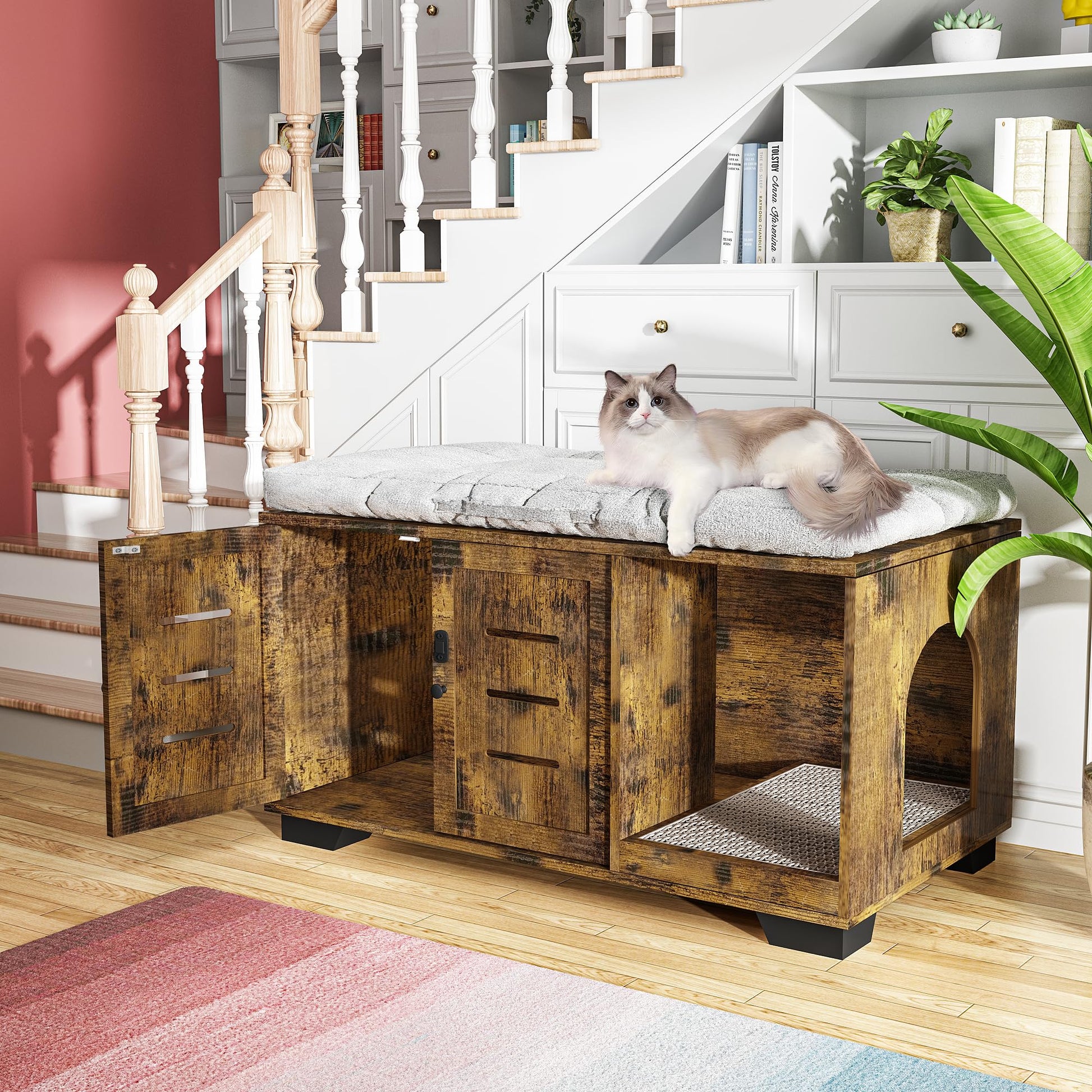 This cat litter box cover can hide your cat litter box out of sight while preventing unpleasant odors from spreading everywhere, which is an ideal choice to keep your home clean and tidy.