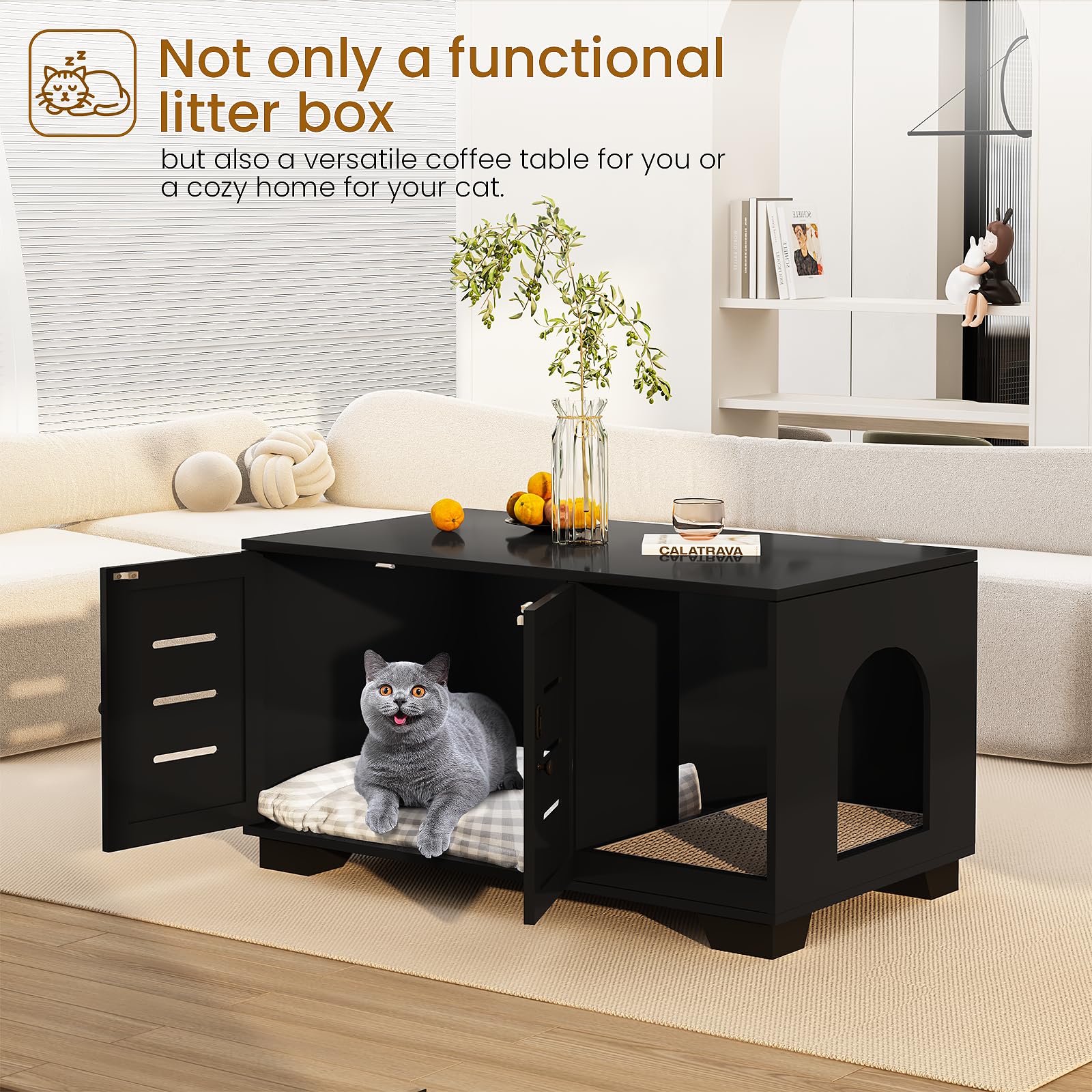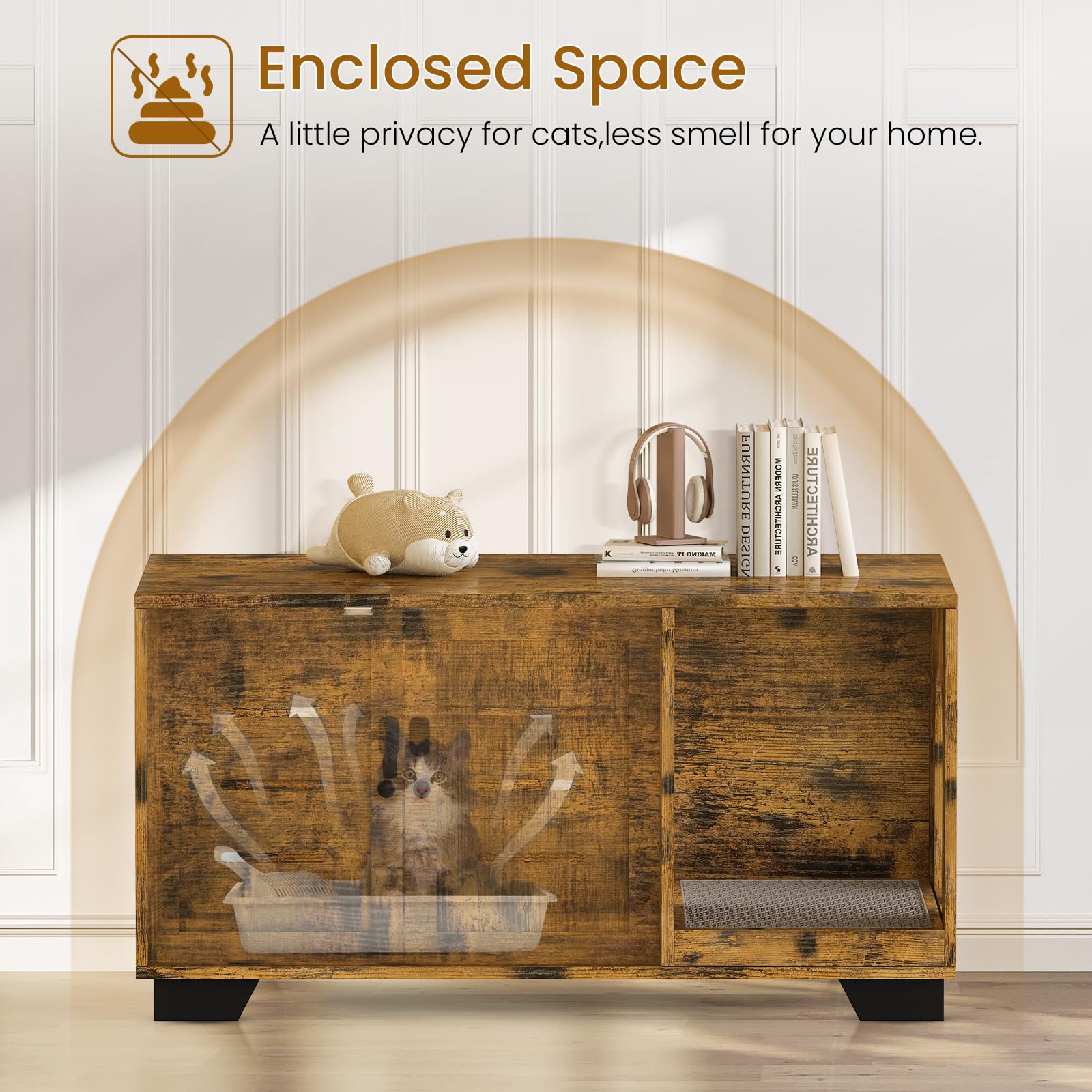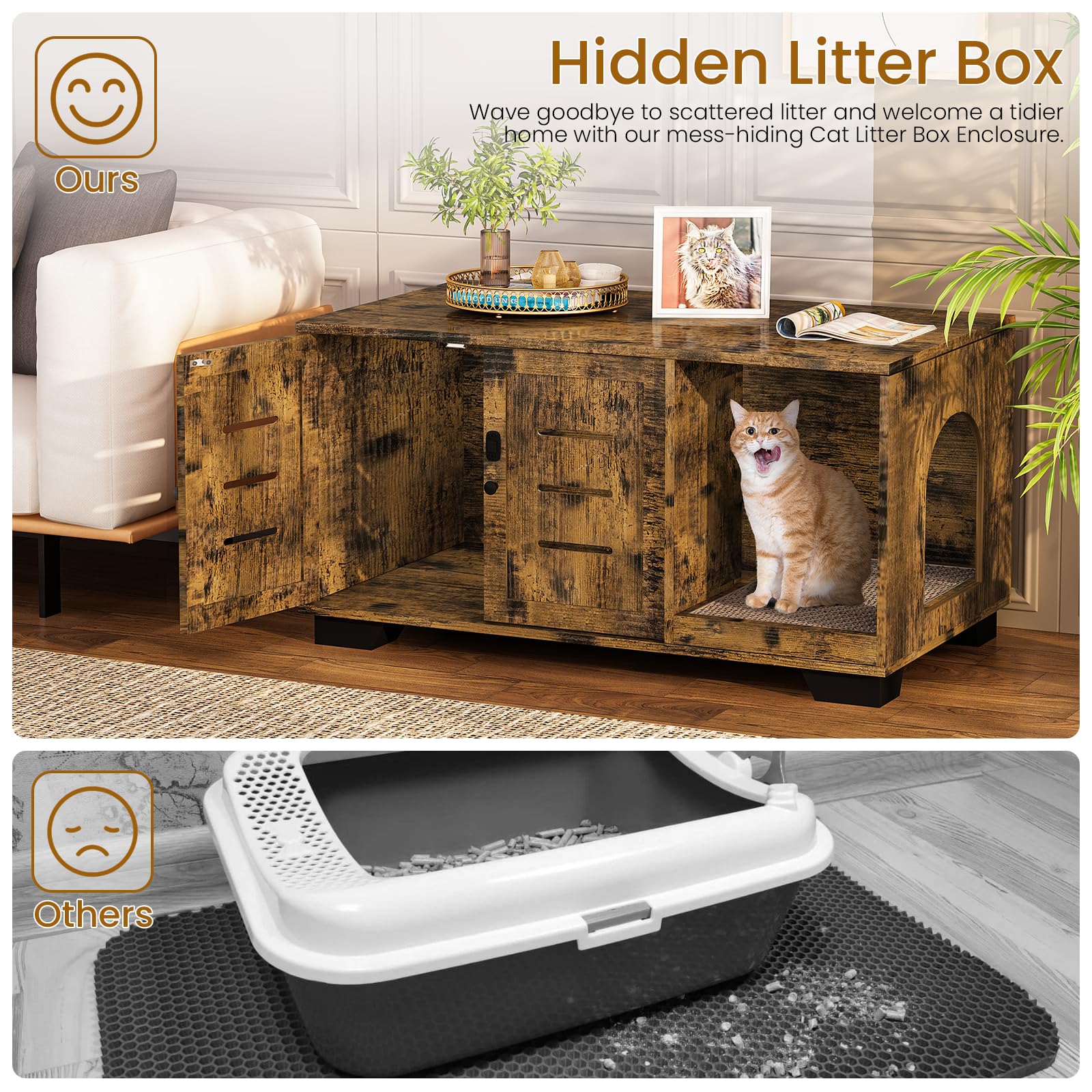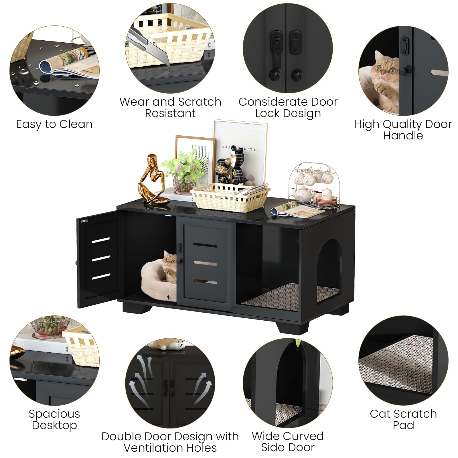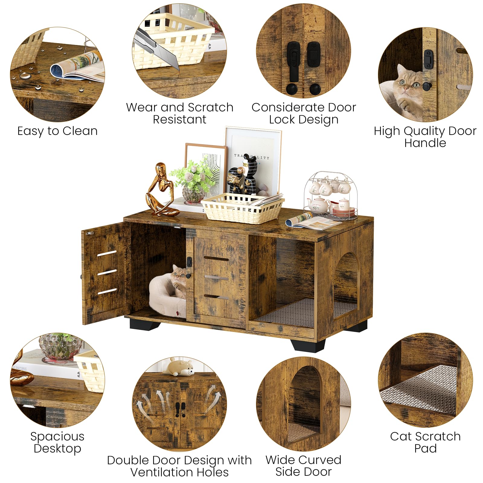 This cat litter box cover can hide your cat litter box out of sight while preventing unpleasant odors from spreading everywhere, which is an ideal choice to keep your home clean and tidy.